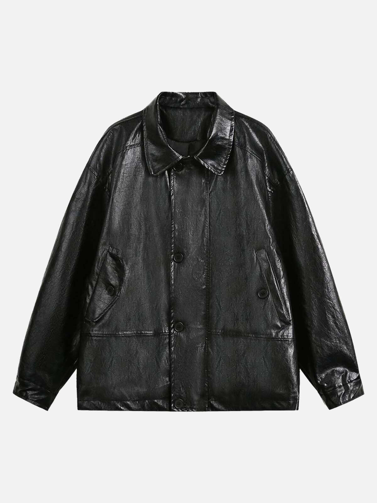 Dominate the streets with this sleek black jacket, where glossy textures meet modern flair for a look that’s unapologetically bold. Its relaxed fit offers effortless comfort across sizes M, L, XL, and 2XL, making it a versatile piece for your streetwear fashion collection. The timeless design features a sharp collar and button-down front, perfect for layering over your favorite y2k outfits. Elevate your wardrobe and embrace the urban vibe with this essential addition.