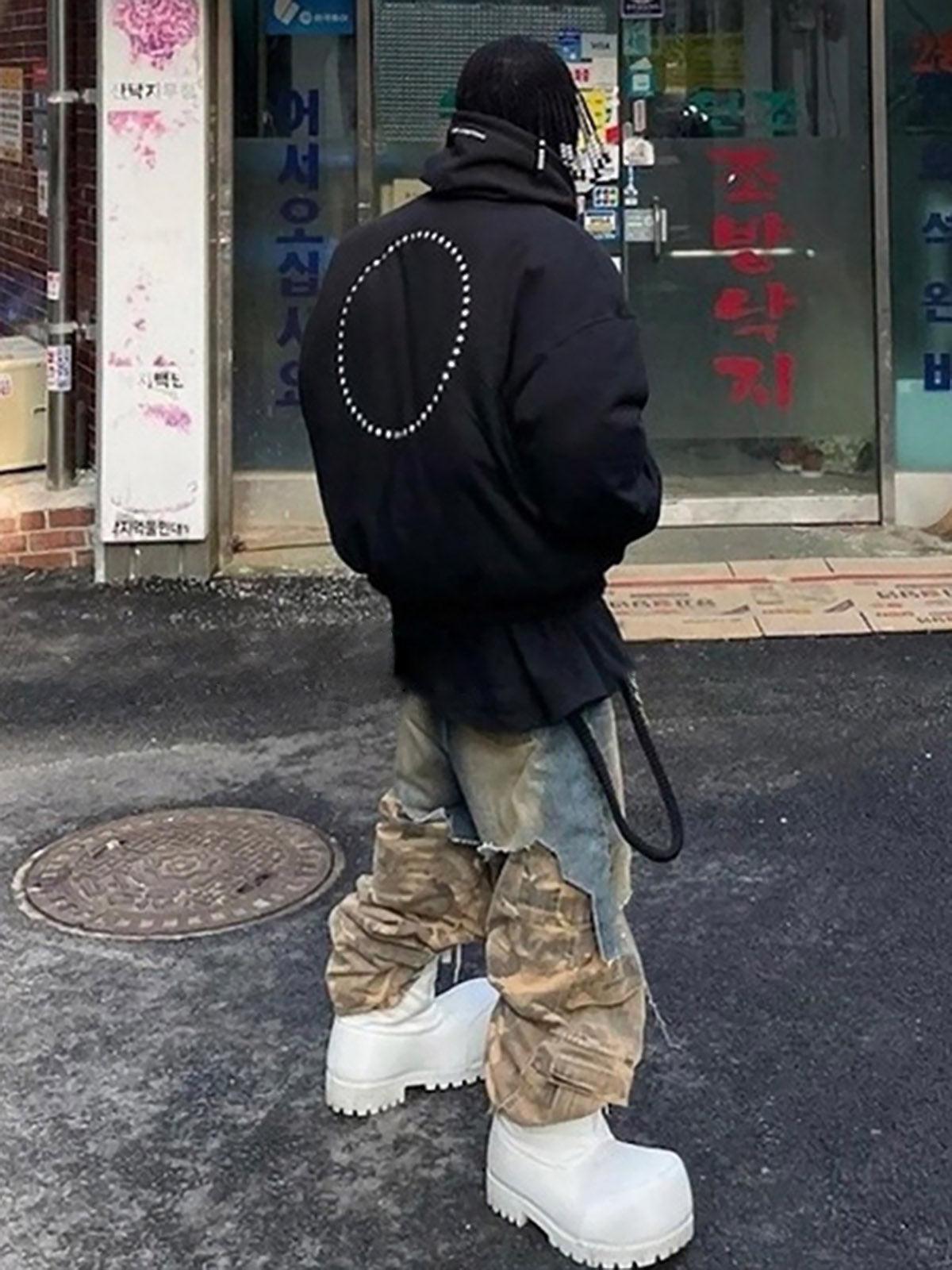 Concert Outfit Retro Stitching Faux Two-piece Camouflage Jeans – Concert Outfit