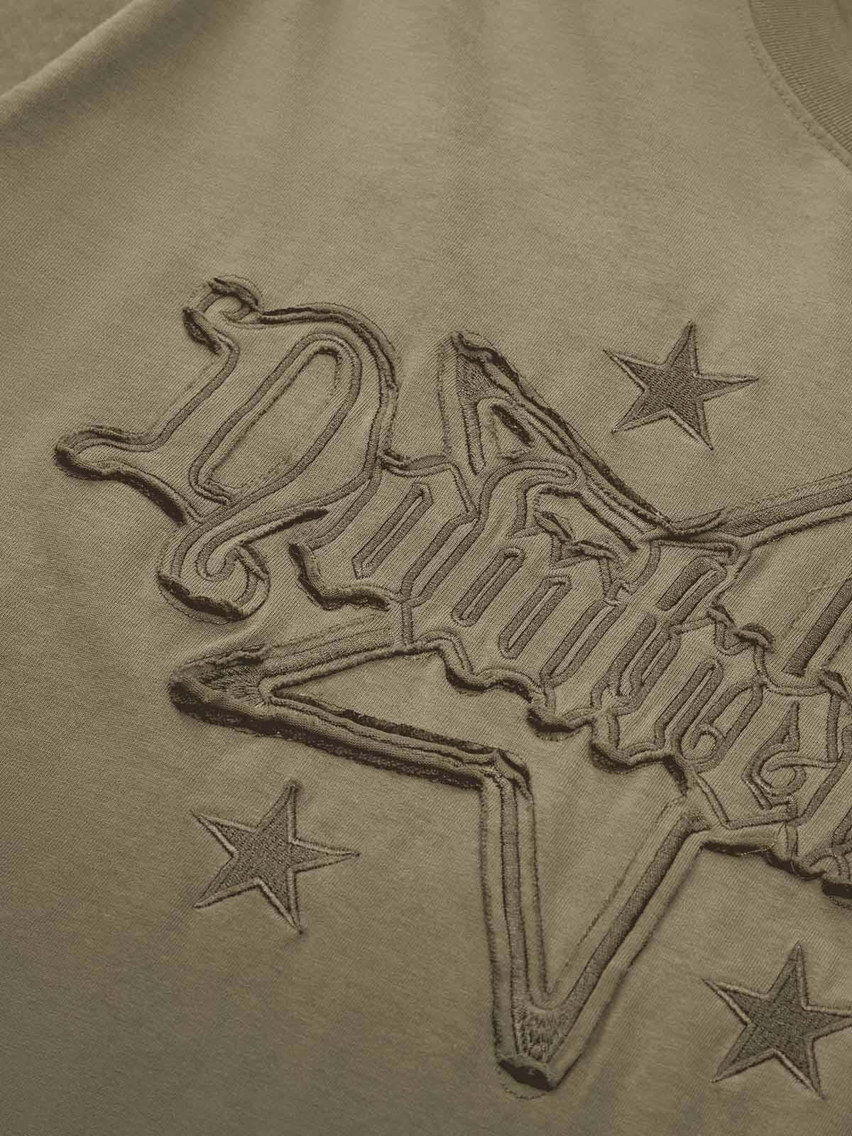 Dare to redefine your summer style with this striking tee, where urban edge meets effortless comfort. The bold, embossed star and script design on the chest commands attention, while the rich texture and earthy dark brown hue make it a versatile staple for any wardrobe. Available in sizes M through 2XL, this relaxed fit tee pairs seamlessly with your favorite denim or joggers, making it an essential piece for those who live life on the move. Whether you’re hitting the streets or chilling at a rooftop party, let this piece be your go-to vibe enhancer.