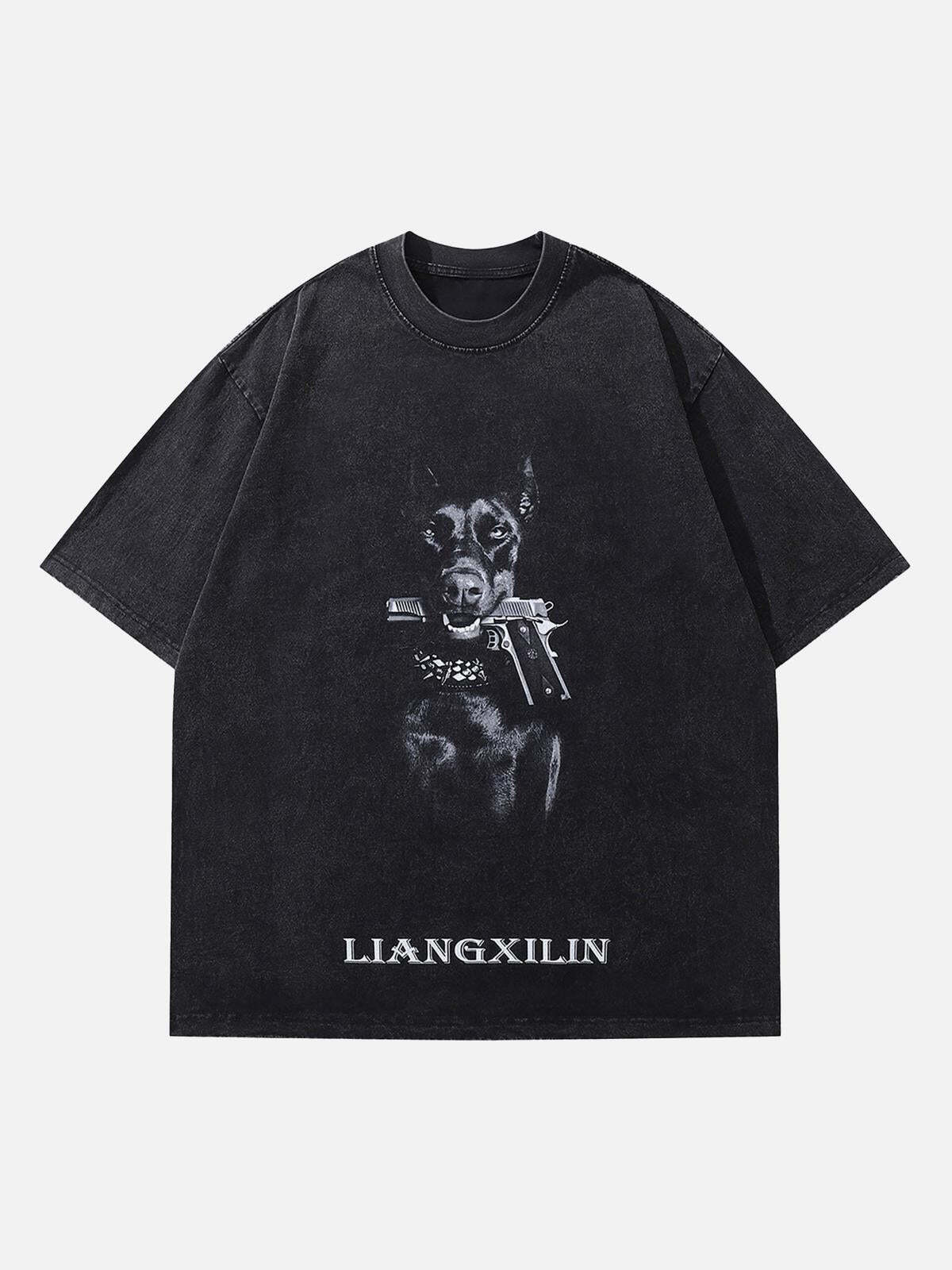 Dare to defy the ordinary with this audacious graphic tee, featuring a striking monochrome illustration of a fierce canine clutching a weapon, setting the tone for an unapologetically bold summer outfit. The deep black hue provides a perfect canvas, enhancing the raw and rebellious spirit of the design while maintaining a versatile edge. Constructed with a relaxed fit, this tee offers comfort and style, effortlessly pairing with anything from distressed jeans to slick joggers. Available in sizes S to 2XL, it ensures a flawless fit for every urban explorer. Ready to redefine your summer fashion and turn heads wherever you go?