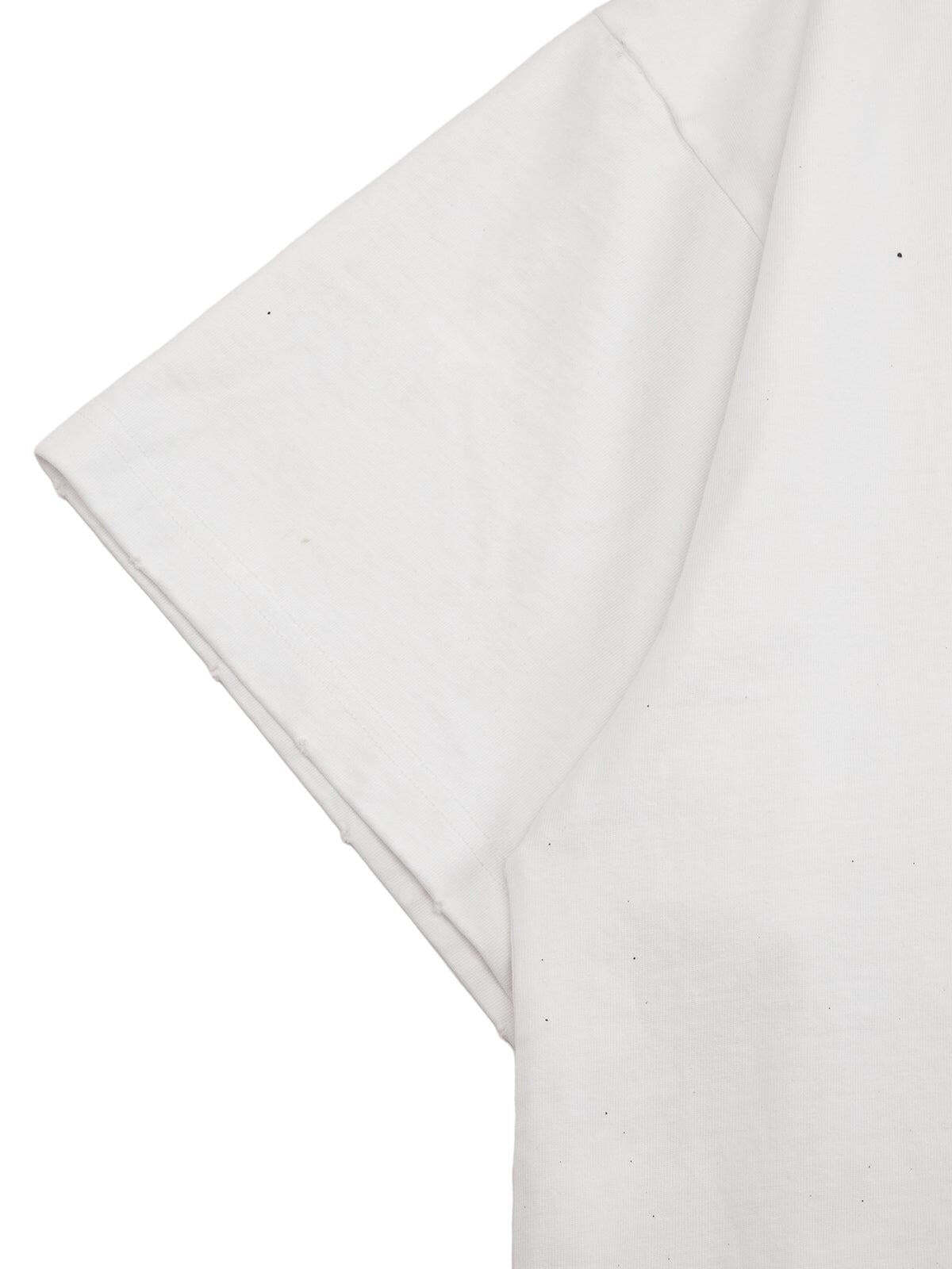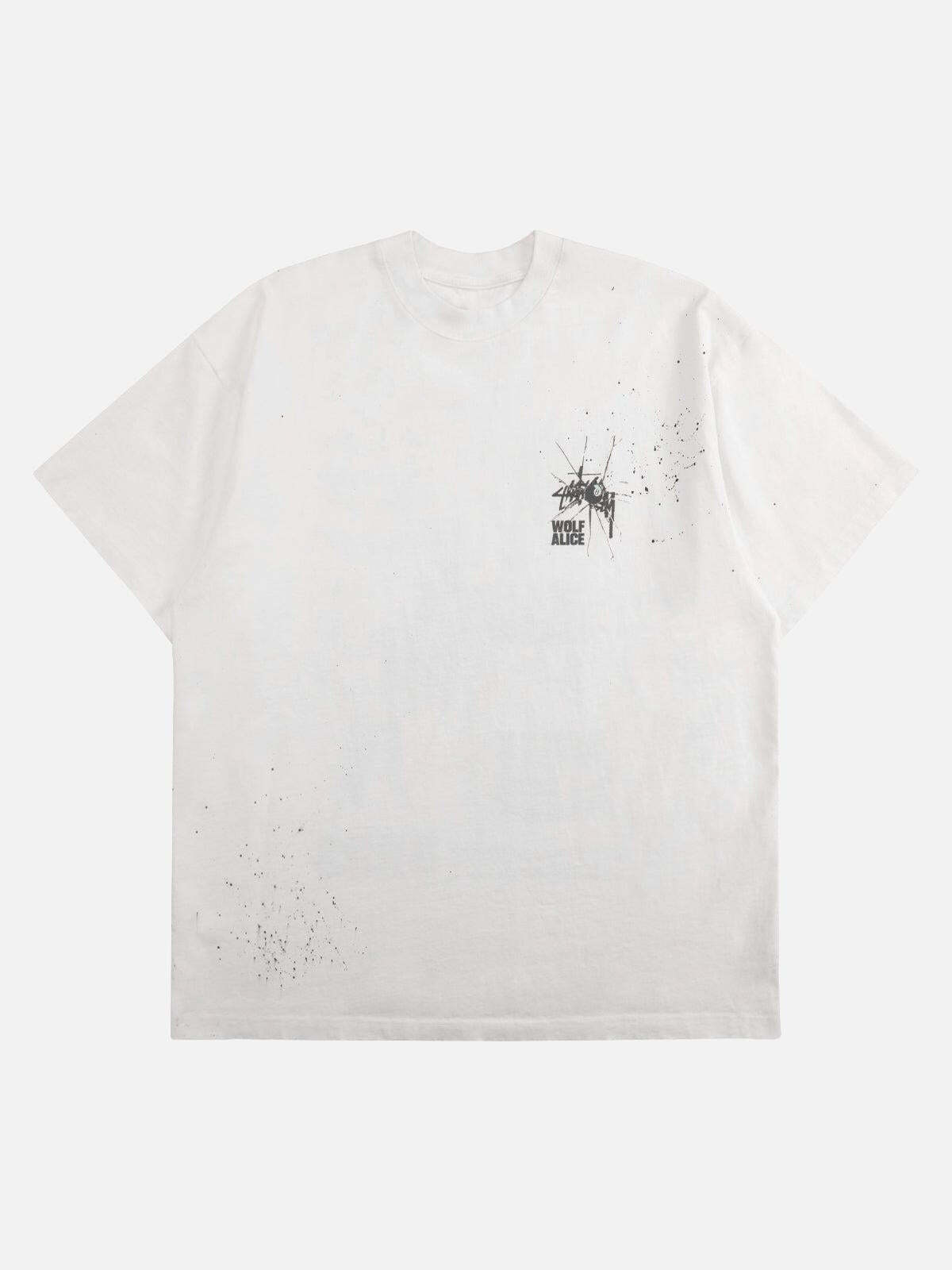 Dare to wear the unexpected with this tee that transforms simplicity into an urban masterpiece, featuring an edgy splatter design and bold logo details. The crisp white color acts as the perfect canvas, making it a versatile staple for any summer fashion inspo. Available in sizes S through XL, this relaxed fit ensures you stay comfortable while turning heads. Pair it with distressed denim for a laid-back vibe or layer it under your favorite jacket for a more polished look. Embrace the art of casual streetwear and make it your own.