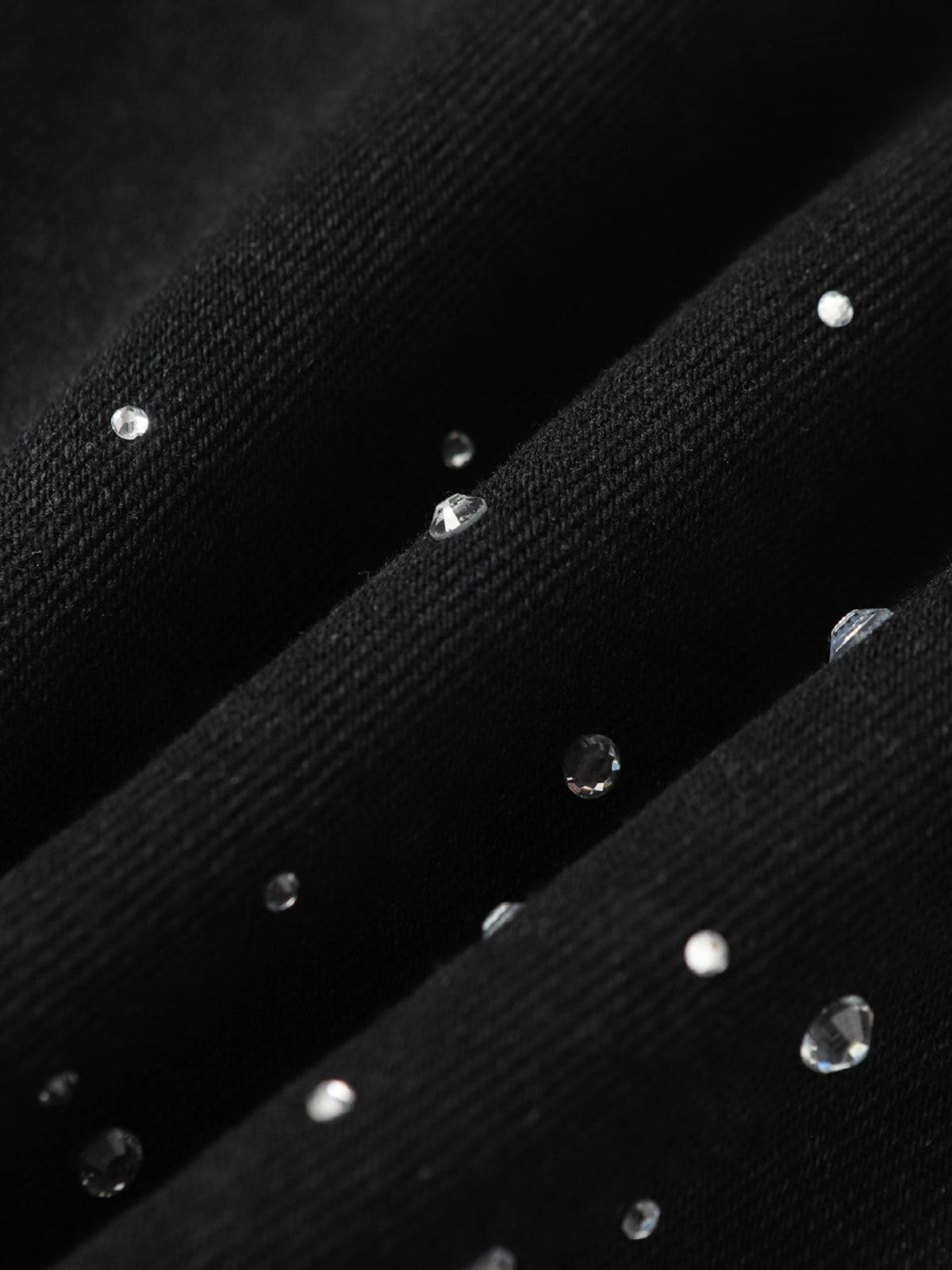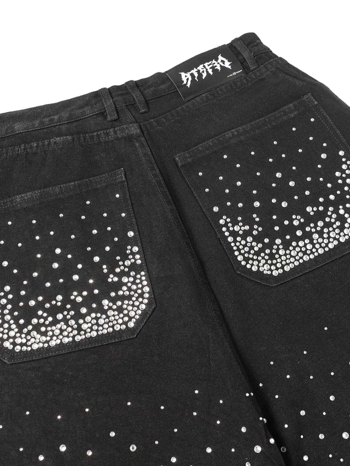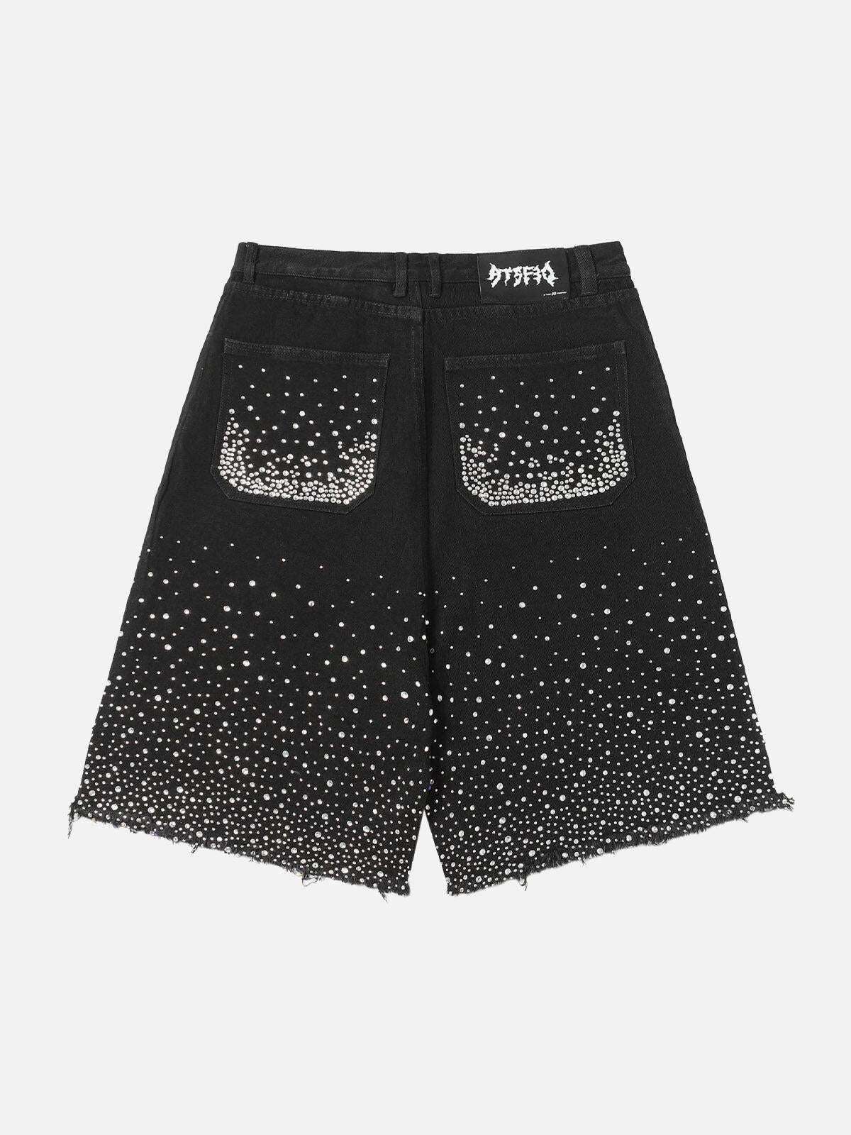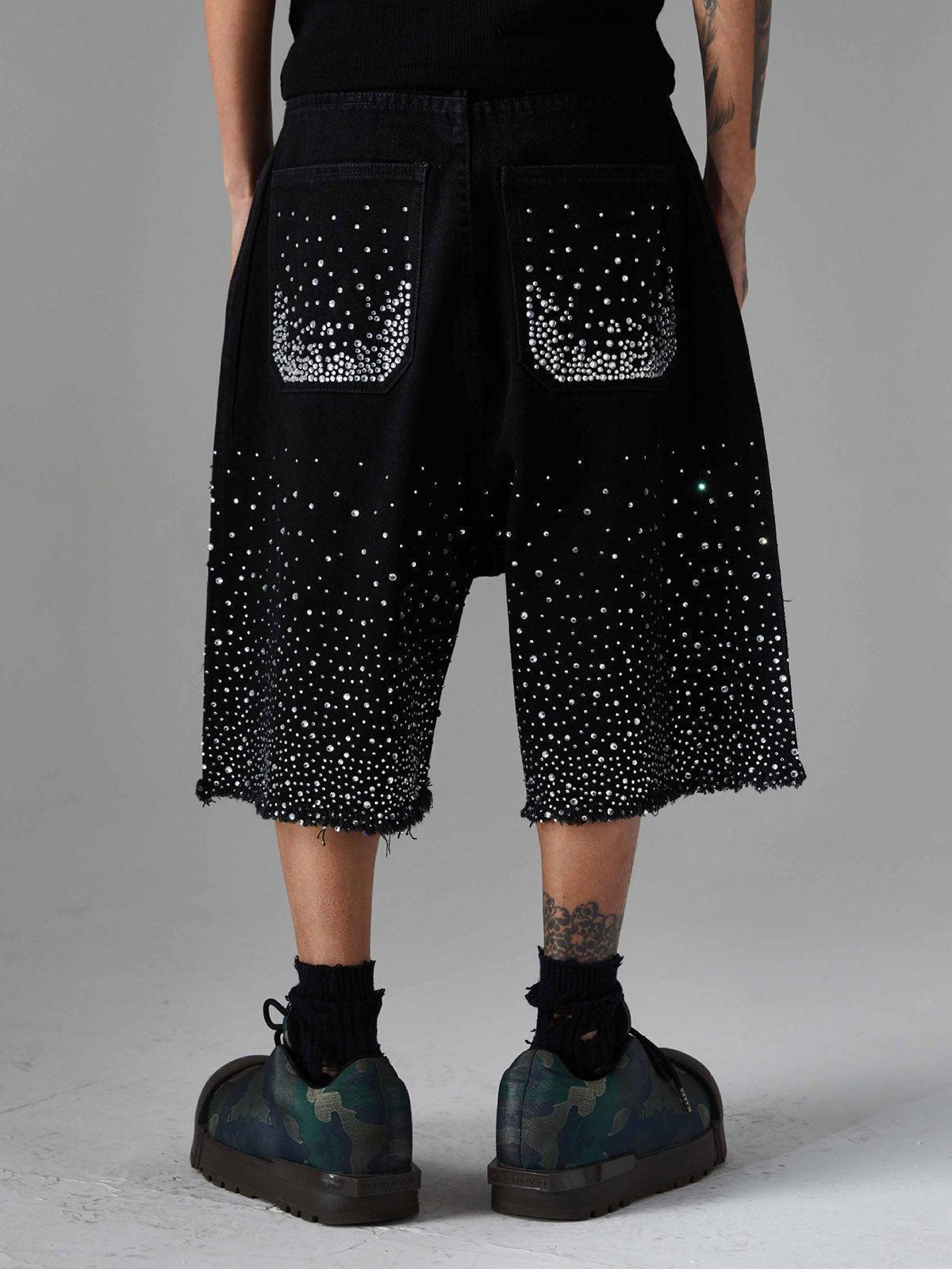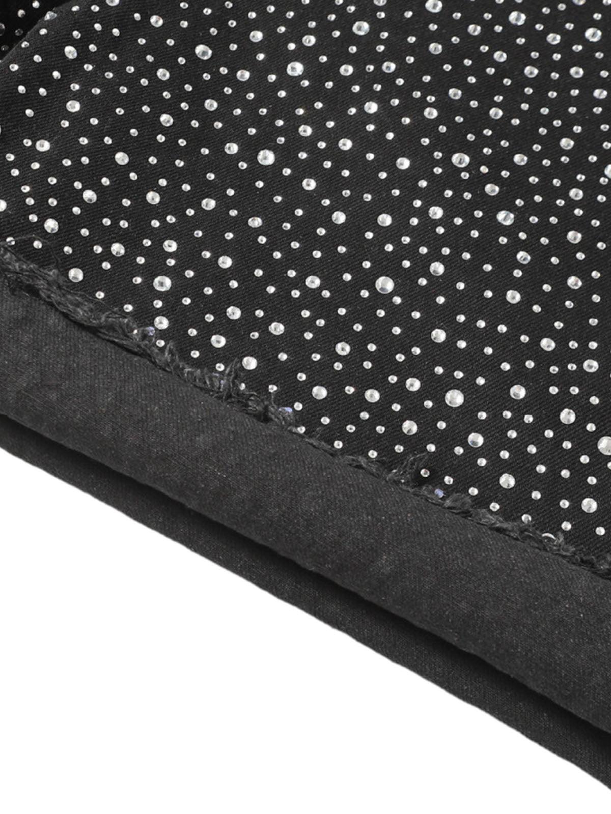 Shine like the city lights with these bold black shorts, where a cascade of shimmering studs creates a mesmerizing pattern that’s impossible to ignore. The edgy, frayed hem adds a touch of rebellion, perfect for those who thrive on standing out. With sizes ranging from S to L, these shorts offer a relaxed fit that complements your summer style effortlessly. Pair them with your favorite sneakers or chunky boots for a look that screams confidence. Get ready to own your summer outfit with unparalleled flair.