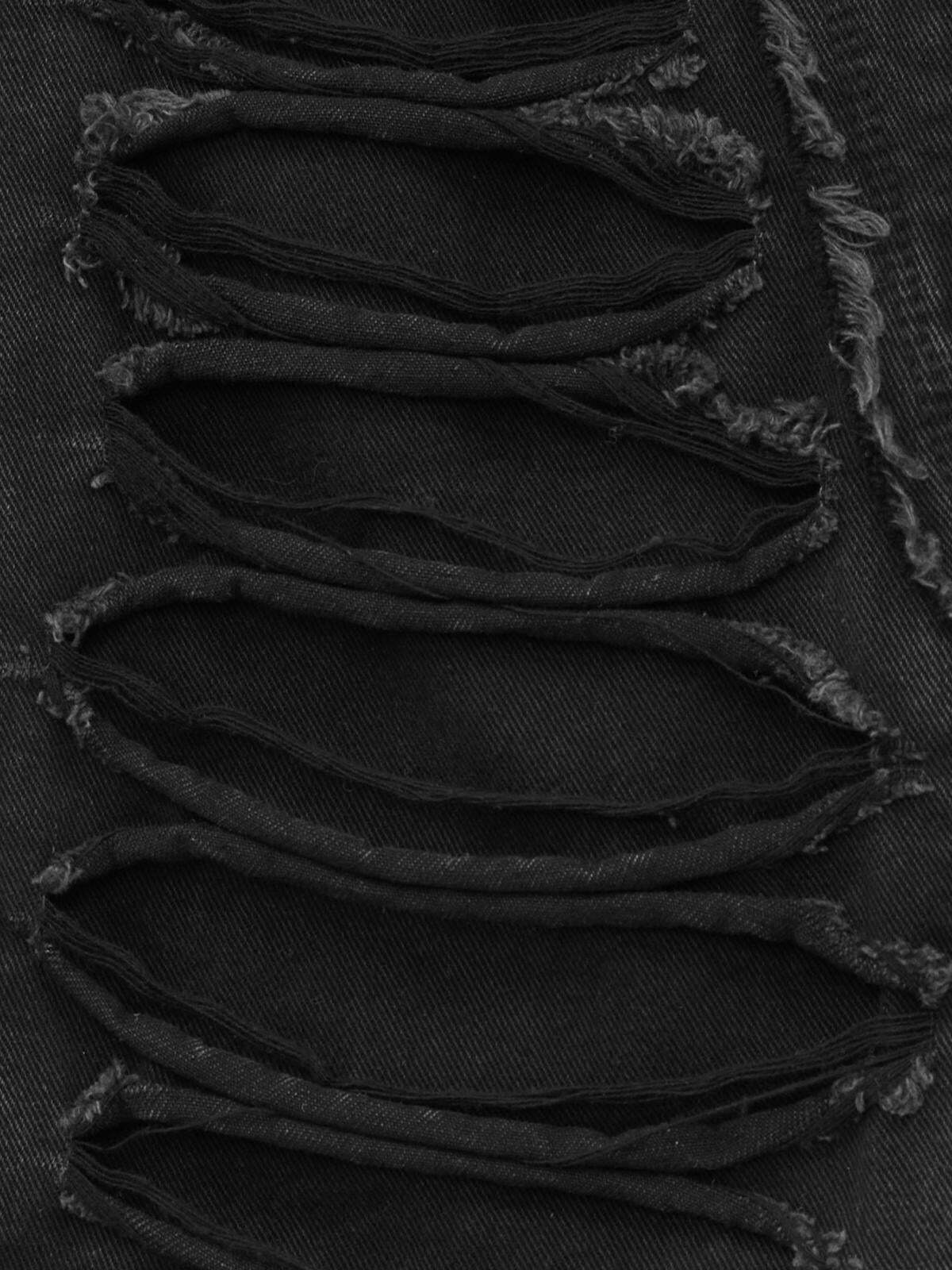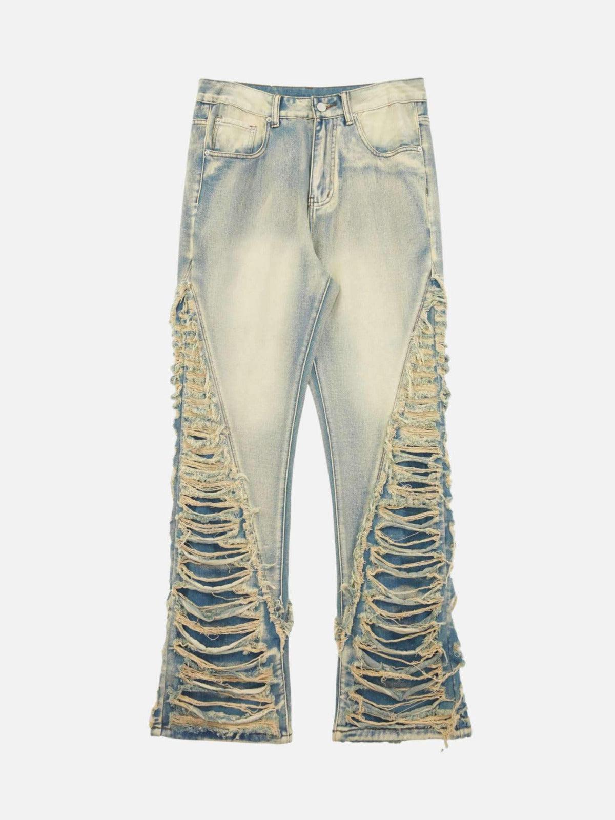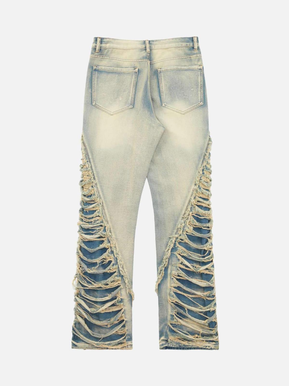 Rock the streets with these audaciously distressed jeans that redefine edgy style with their bold design. The intricate rips and rugged textures create a striking visual impact, seamlessly blending urban swagger with a touch of rebellion. Available in both a washed-out light blue and classic black, these jeans offer versatile styling options for those who dare to stand out. With sizes ranging from M to XL, the relaxed fit ensures comfort without compromising on attitude. Pair them with a fitted tee or oversized hoodie for ultimate y2k vibes. Ready to elevate your streetwear fashion game? Dive into the scene and own your look.