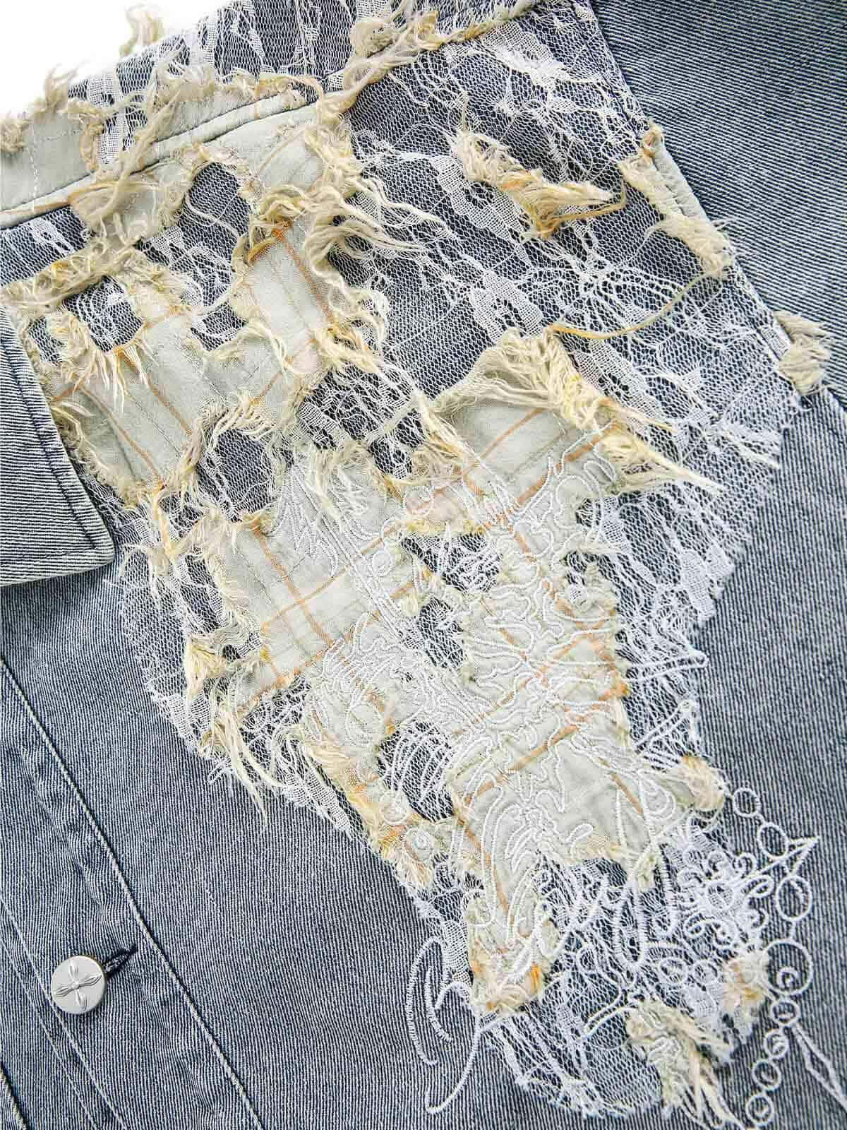 Concert Outfit Ripped Lace Panel Denim Jacket High-quality product featuring concert outfit ideas, country concert outfit, outfit inspo and more. Modern design that fits the latest trends. Premium materials ensure durability and comfort. Order now for special offers! Product designed with attention to every detail. Suitable for all occasions and personal styles.