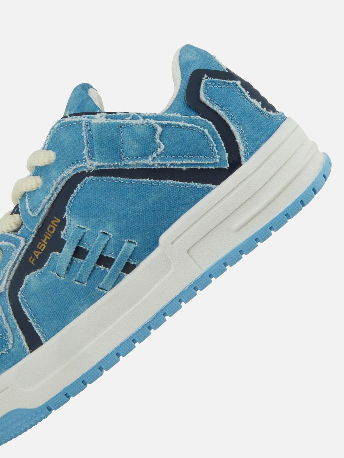 Shredded Denim Patchwork Sneakers redefine urban edge with their distressed design and lace-up closure. Crafted from denim and lined with faux fur, they offer ultra-soft, breathable comfort perfect for fall and winter street style. A padded collar enhances comfort, making these sneakers ideal for casual wear.