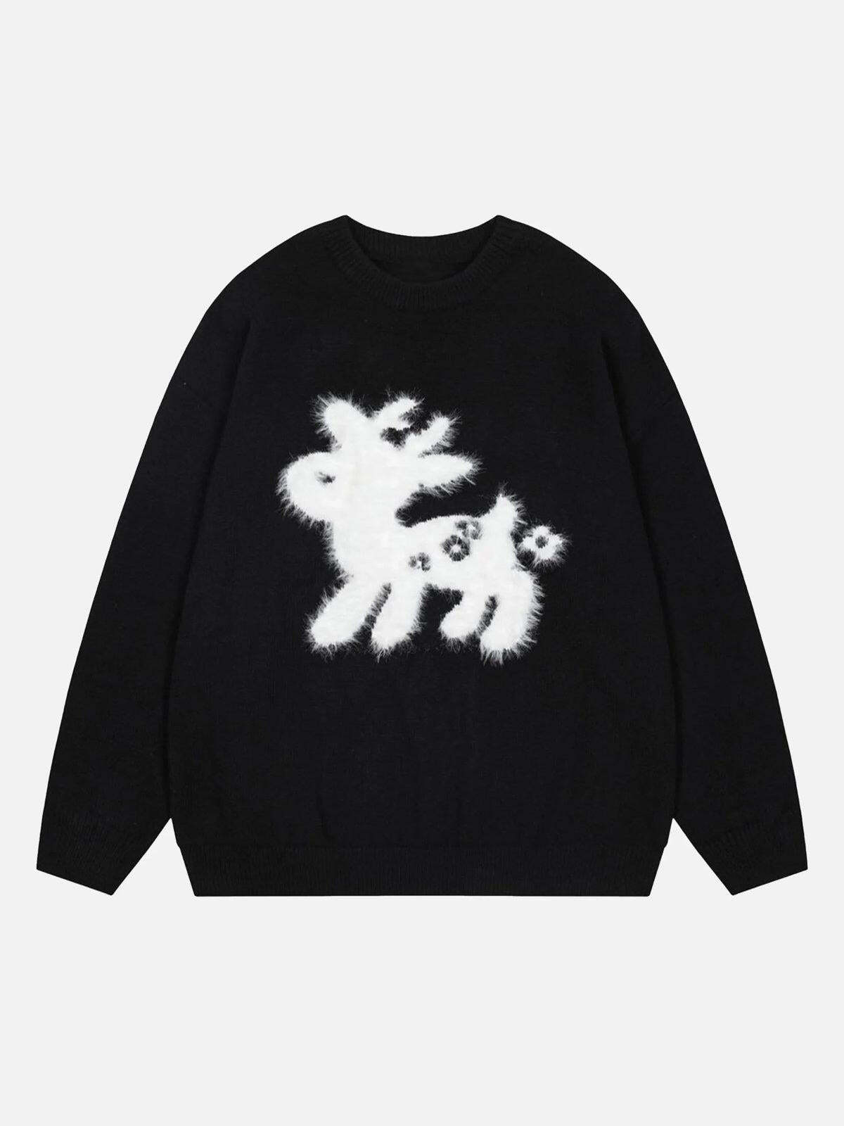 Turn heads with a bold sweater that merges playful design with urban edge, featuring a striking, fluffy white graphic that jumps off a rich red canvas. The soft, textured fabric wraps you in comfort while the relaxed fit keeps your look effortlessly cool. Available in sizes from S to XL, this piece adapts to your style, whether you pair it with sleek black jeans or experiment with layers. Opt for red to make a vibrant statement or choose black for a more understated vibe. Embrace the essence of streetwear fashion and let your outfit speak volumes as you step into the scene.