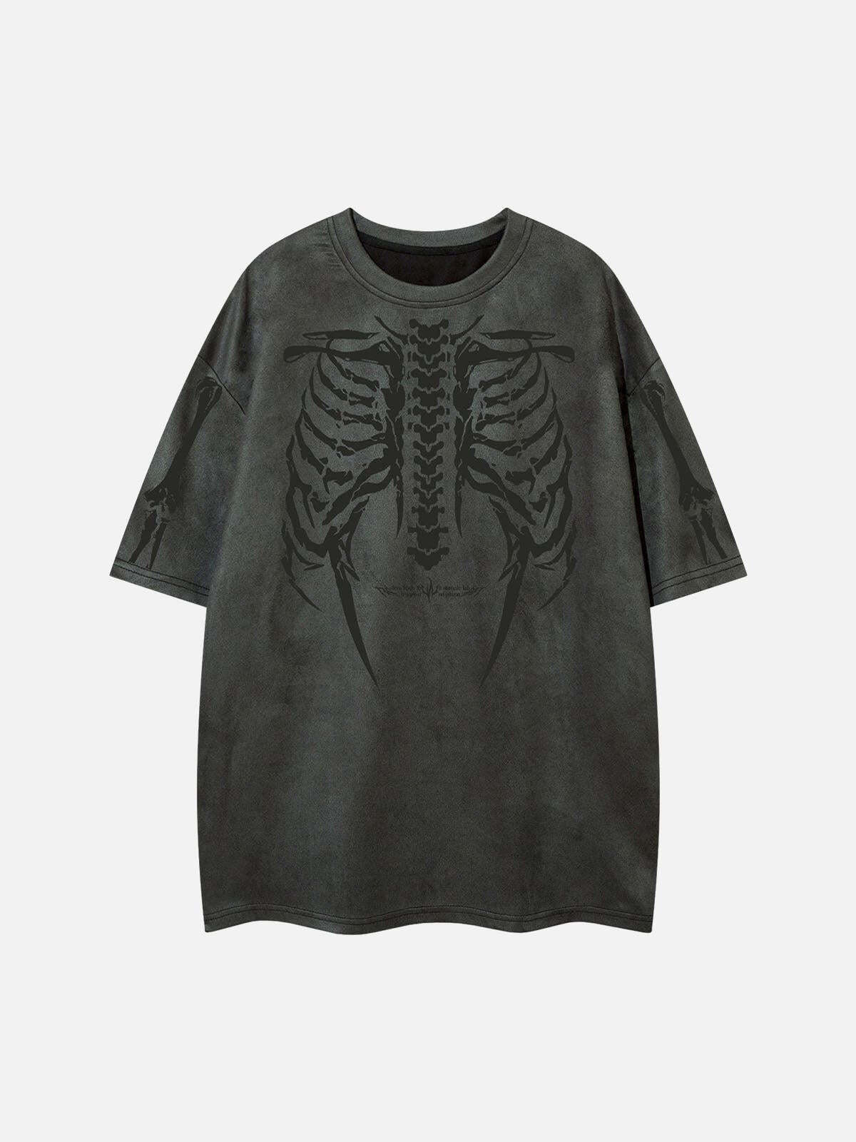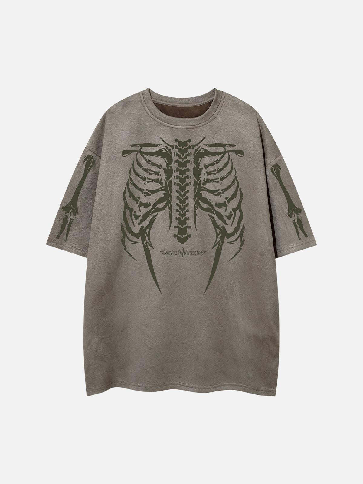 Unleash your inner rebel with this striking tee, where urban grit meets avant-garde style through its bold skeletal design. The earthy khaki tones create a versatile canvas perfect for pairing with your favorite streetwear essentials, while the oversized fit ensures comfort and edge in every size from S to 2XL. The soft texture feels like a second skin, making it an essential piece for any summer fashion inspo. Whether you’re hitting the scene in dark brown, black, or gray, this tee is your go-to for turning heads and starting conversations. Embrace the unconventional and redefine your summer style with this standout piece.