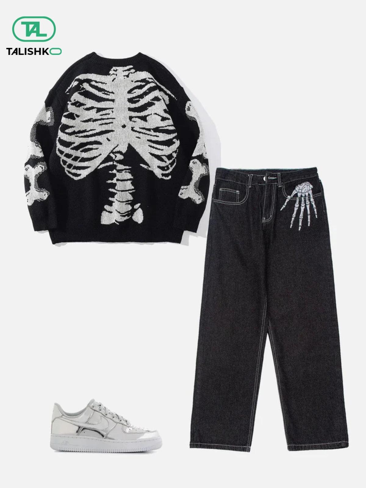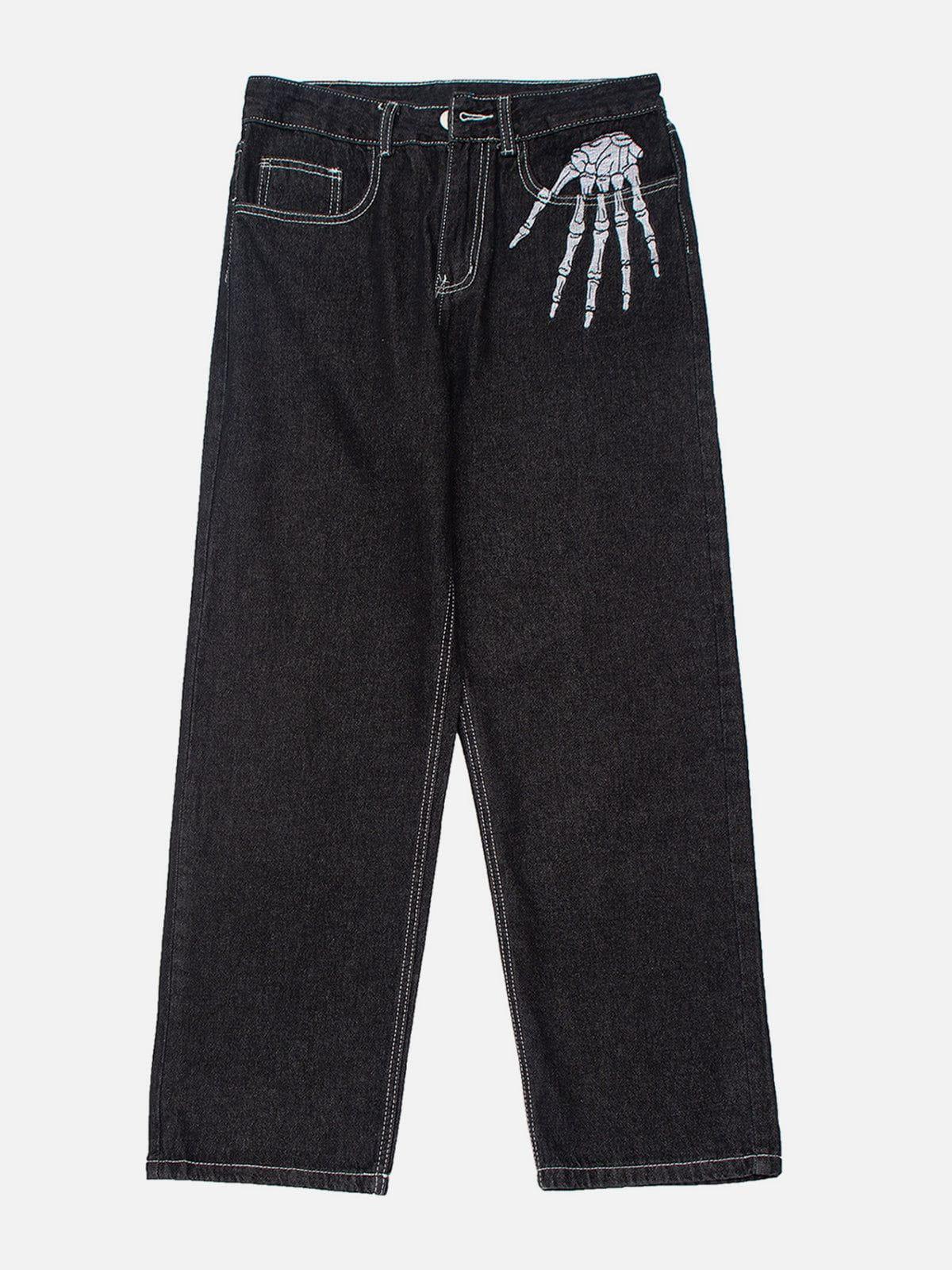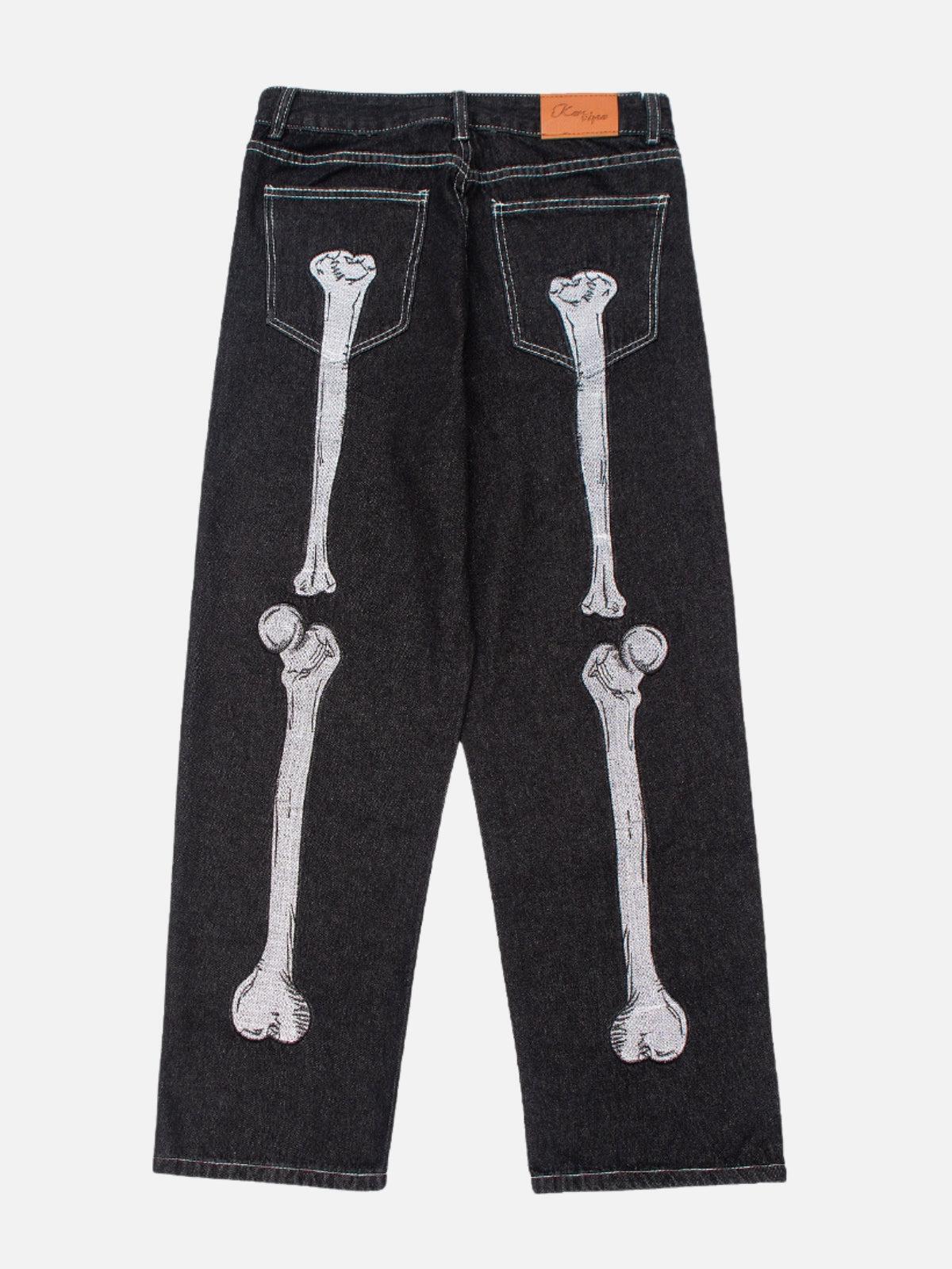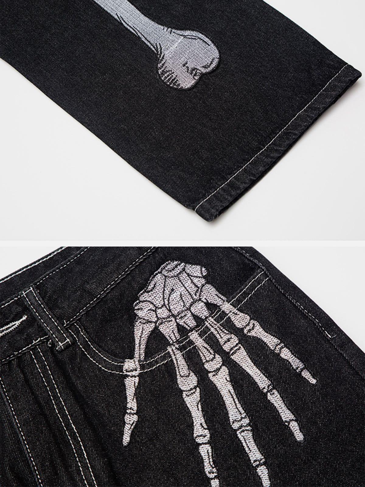 Concert Outfit Skull Bone Embroidery Loose Jeans – Concert Outfit