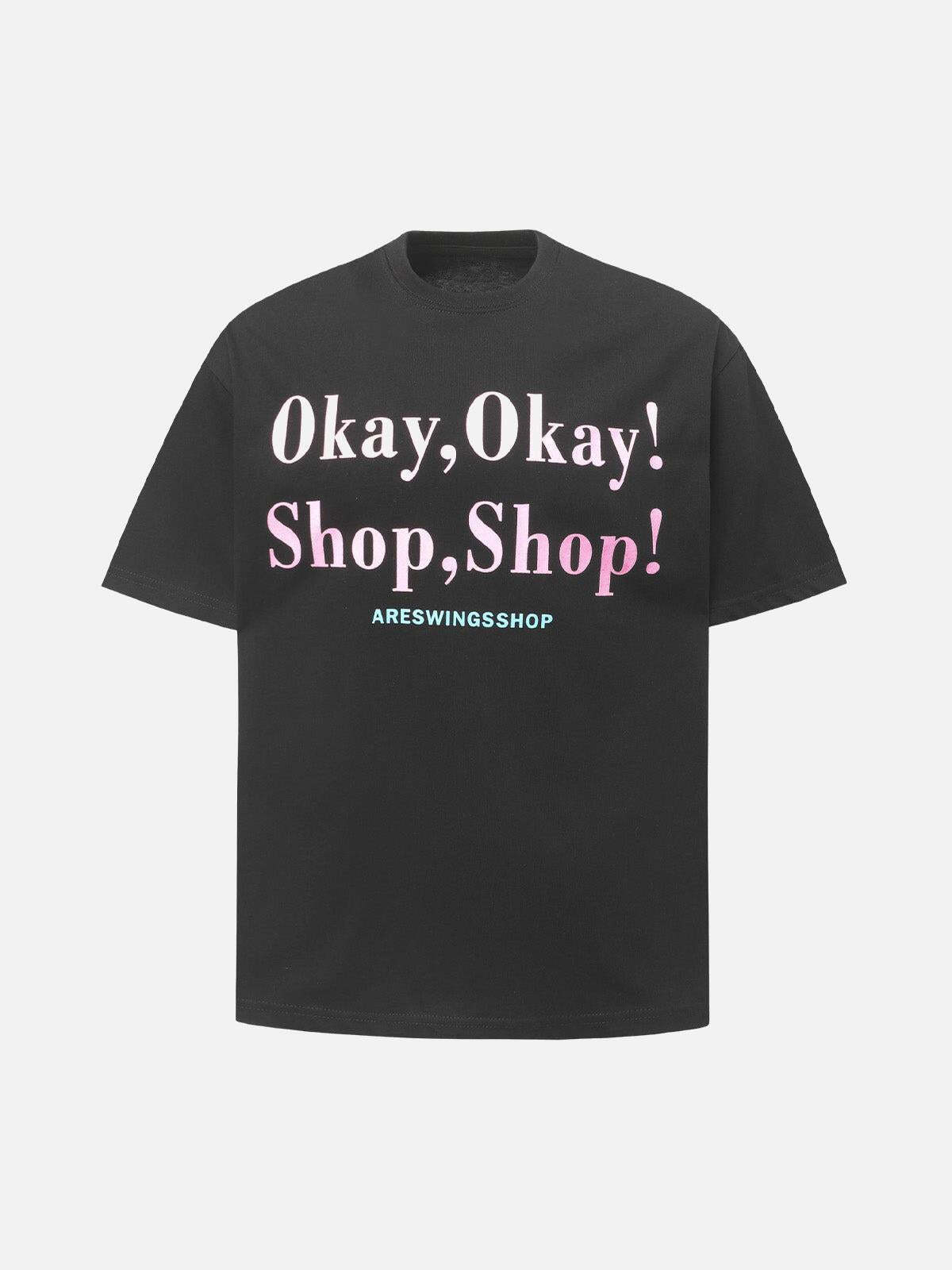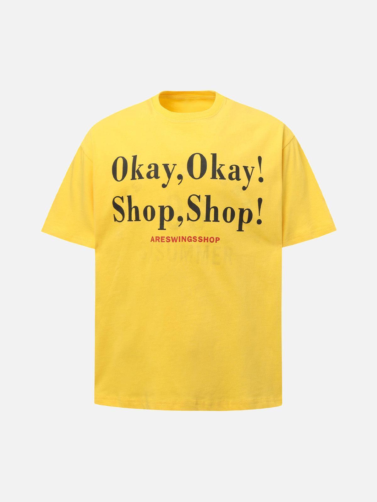 Turn heads with a shout-out to urban vibes, flaunting bold typography that says it all: ‘Okay, Okay! Shop, Shop!’ in striking yellow against a rich red canvas. This tee blends casual comfort with street-smart style, available in versatile M, L, and XL sizes, perfect for mixing and matching with your favorite summer outfit. Feel the soft texture that drapes effortlessly, making it a staple for daytime adventures or night escapades. Whether you’re hitting the city streets or chilling with friends, this piece invites you to embrace the season’s energy. Grab yours and redefine your summer style.