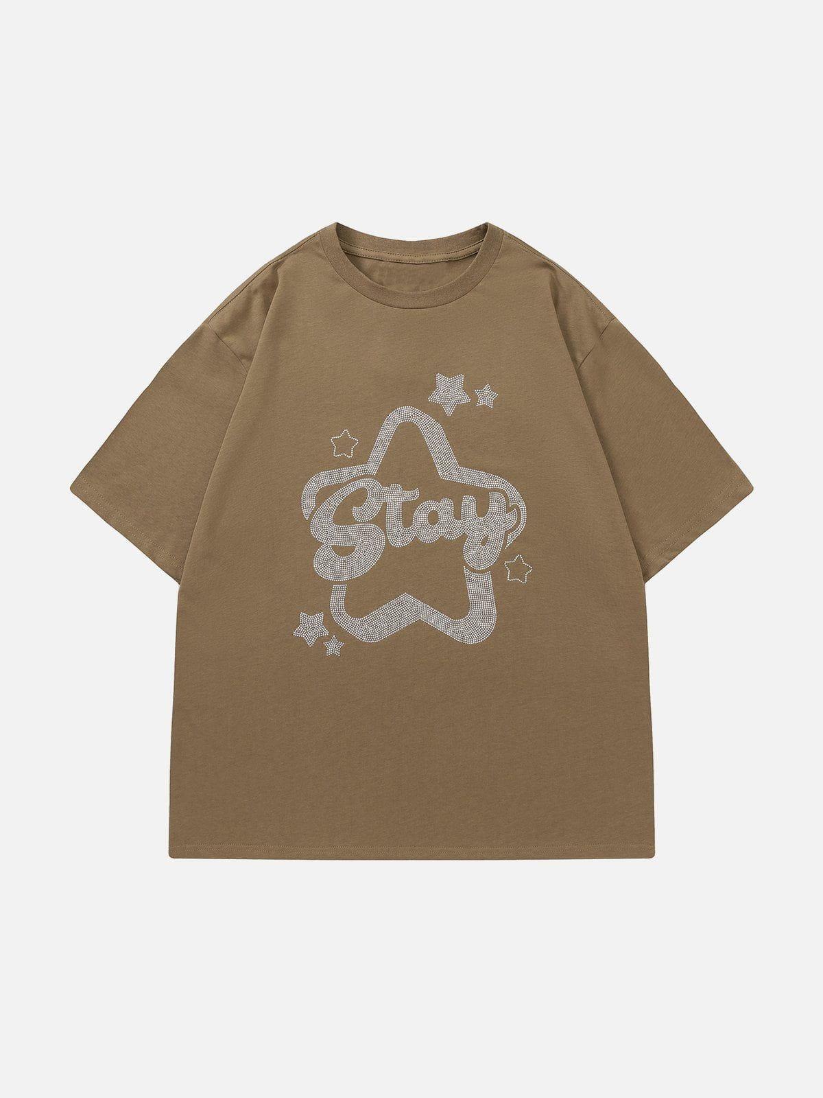 Ignite your urban vibe with this sleek tee, featuring a bold star graphic that commands the spotlight. The smooth black fabric is perfect for those who love a versatile, yet edgy look, while the relaxed fit ensures comfort whether you’re hitting the streets or lounging with friends. Available in black or brown and sizes S, M, and L, this tee offers a seamless blend of style and flexibility. Pair it with your favorite sneakers for a standout summer outfit that speaks volumes without saying a word. Ready to redefine your summer style?