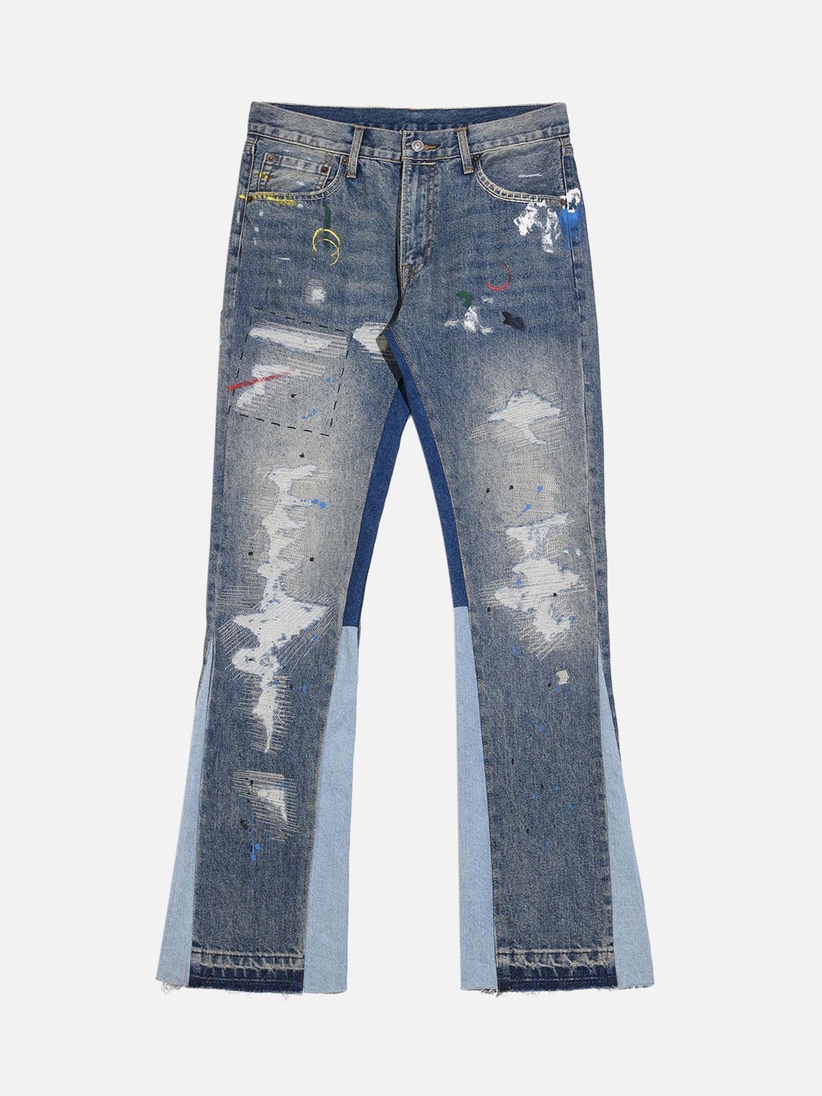 Concert Outfit Splashing Ink Micro Horn Deconstruction Stitching Jeans High-quality product featuring concert outfit ideas, country concert outfit, outfit inspo and more. Modern design that fits the latest trends. Premium materials ensure durability and comfort. Order now for special offers! Product designed with attention to every detail. Suitable for all occasions and personal styles.