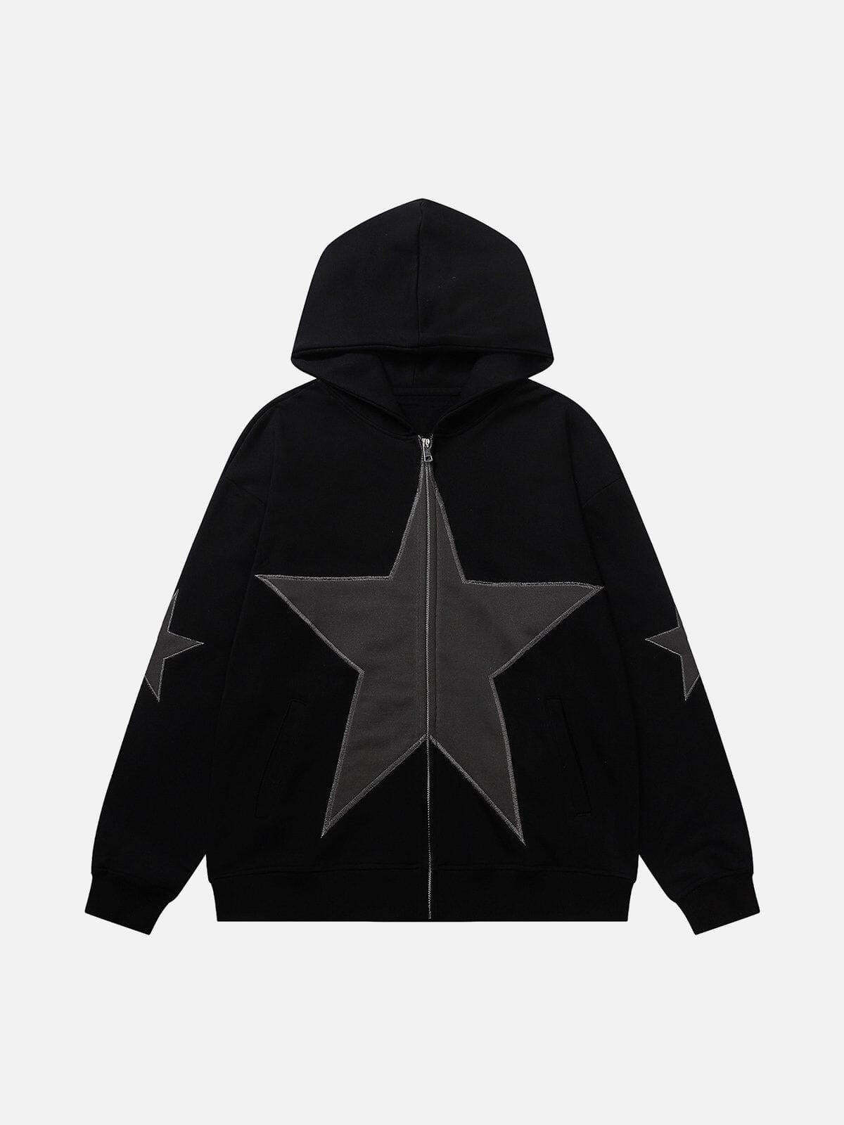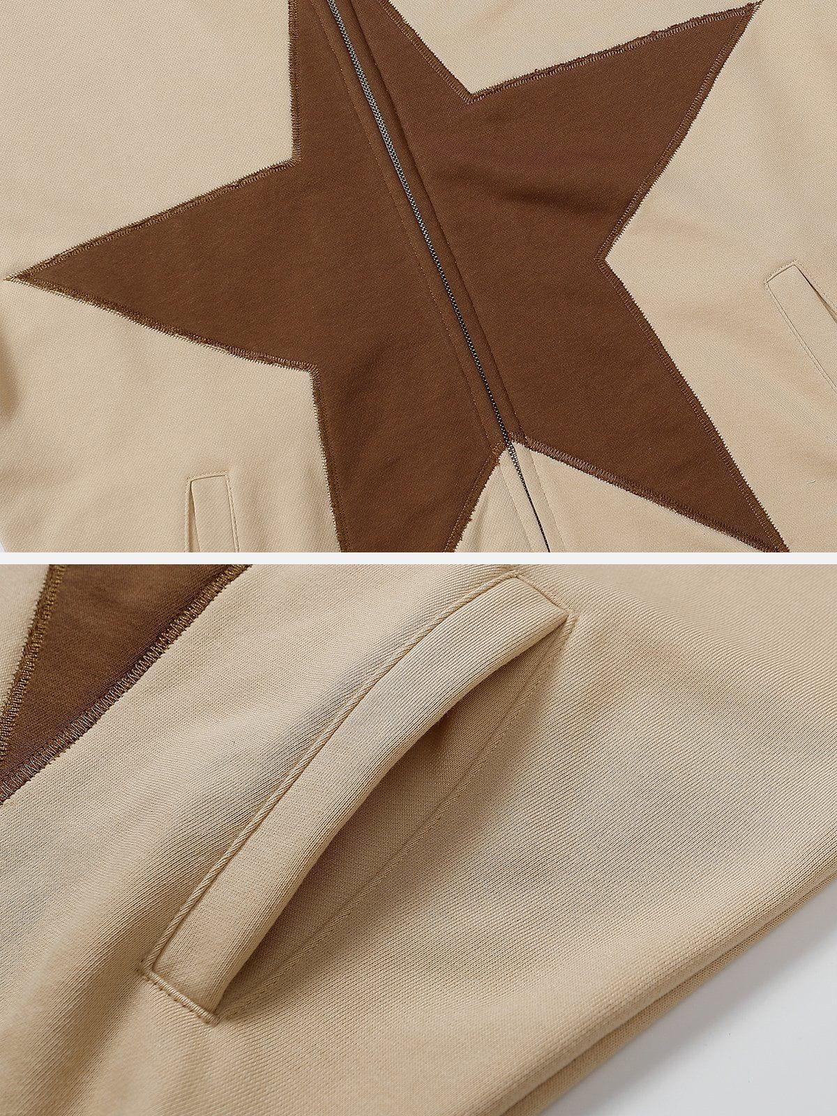 Turn heads with a bold star motif that electrifies this oversized hoodie, blending urban edge with relaxed comfort. The soft apricot hue, accentuated by striking brown stars, offers a seamless fit into any streetwear fashion lineup. Available in sizes S to XL, this piece ensures everyone can embrace its laid-back vibe. Whether layered over your favorite tee or paired with camo pants for that ultimate y2k outfit inspo, it’s a dynamic addition to your wardrobe. Zip up and step out with confidence.