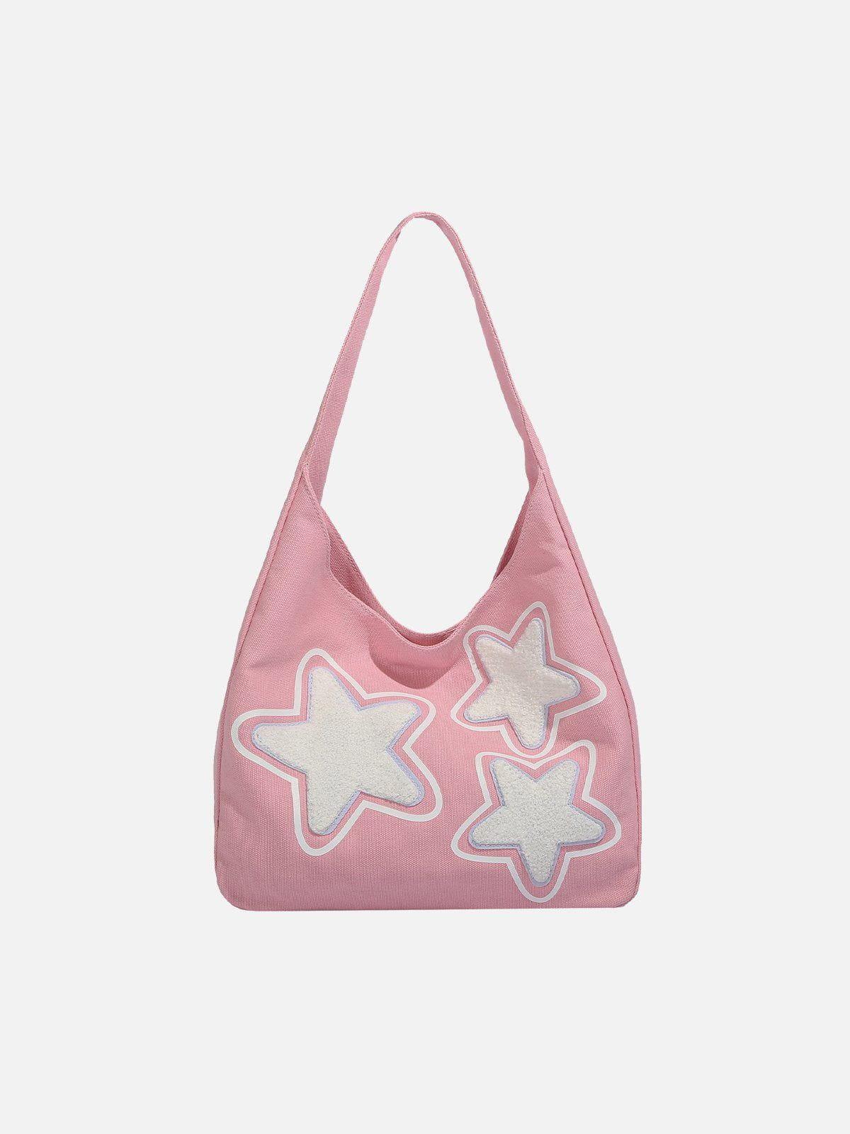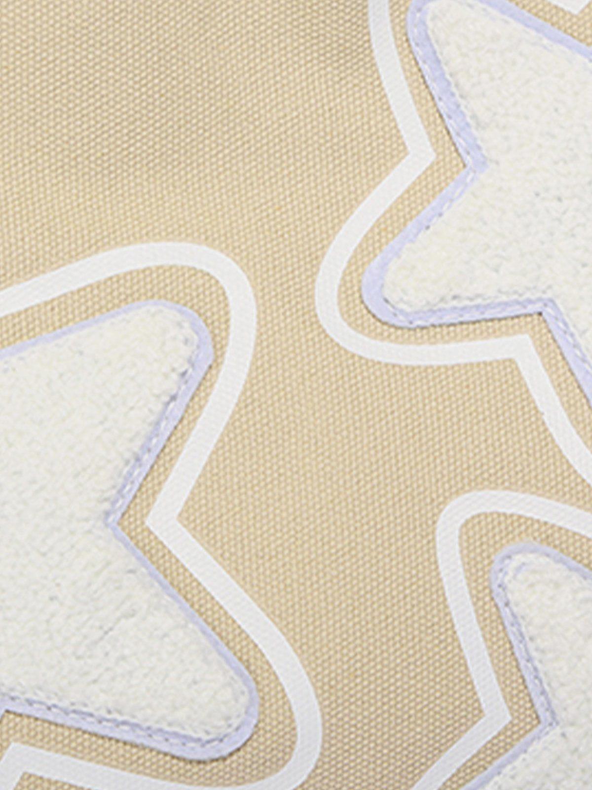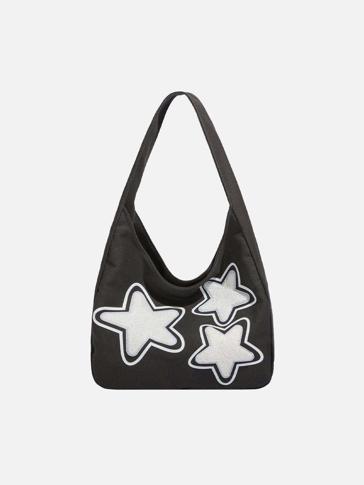 Rock the streets with the Star Graphic Tote Bag, blending style and functionality. Crafted from 100% polyester, it showcases an embroidered star design that adds an urban edge. Measuring 12.6 inches in length, 4.3 inches in width, and 20.4 inches in height, this tote comfortably holds all your essentials. Make your mark with this standout piece.