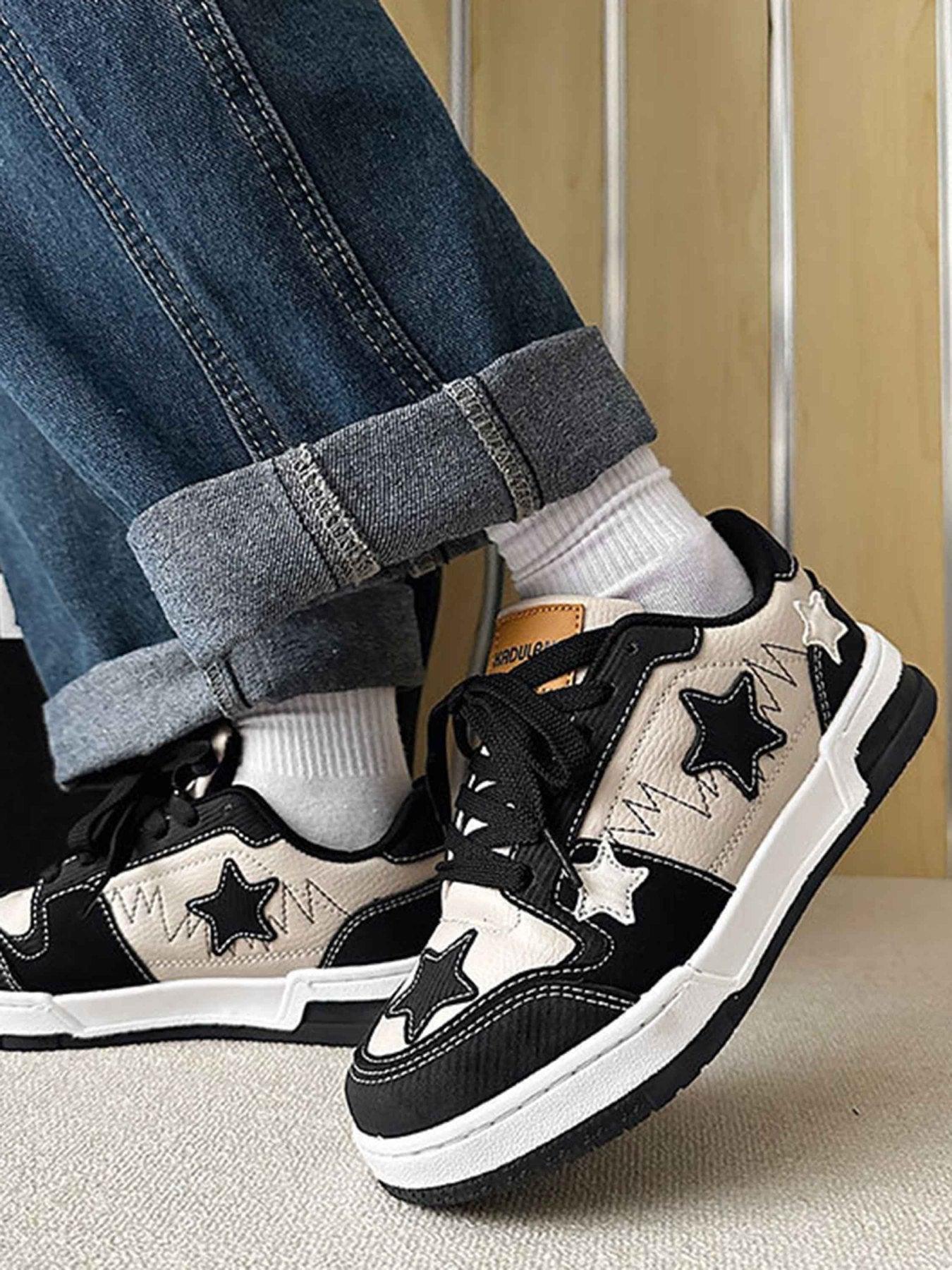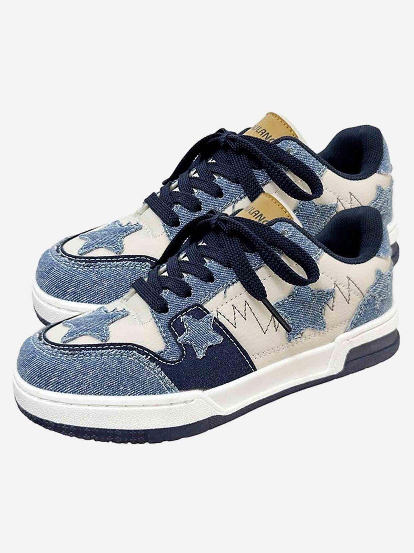 Step into your next adventure with these striking sneakers that blend denim patchwork with bold star embellishments, embodying the spirit of streetwear fashion. The unique interplay of blue and black hues creates a dynamic visual texture, while the leather accents add a touch of sophistication. Designed for both comfort and style, these sneakers provide a snug fit across sizes 36 to 44, making them a versatile choice for any urban explorer. Pair them with your favorite y2k outfits for effortless outfit inspo that turns heads. Ready to redefine your sneaker game? Lace up and let your feet do the talking.