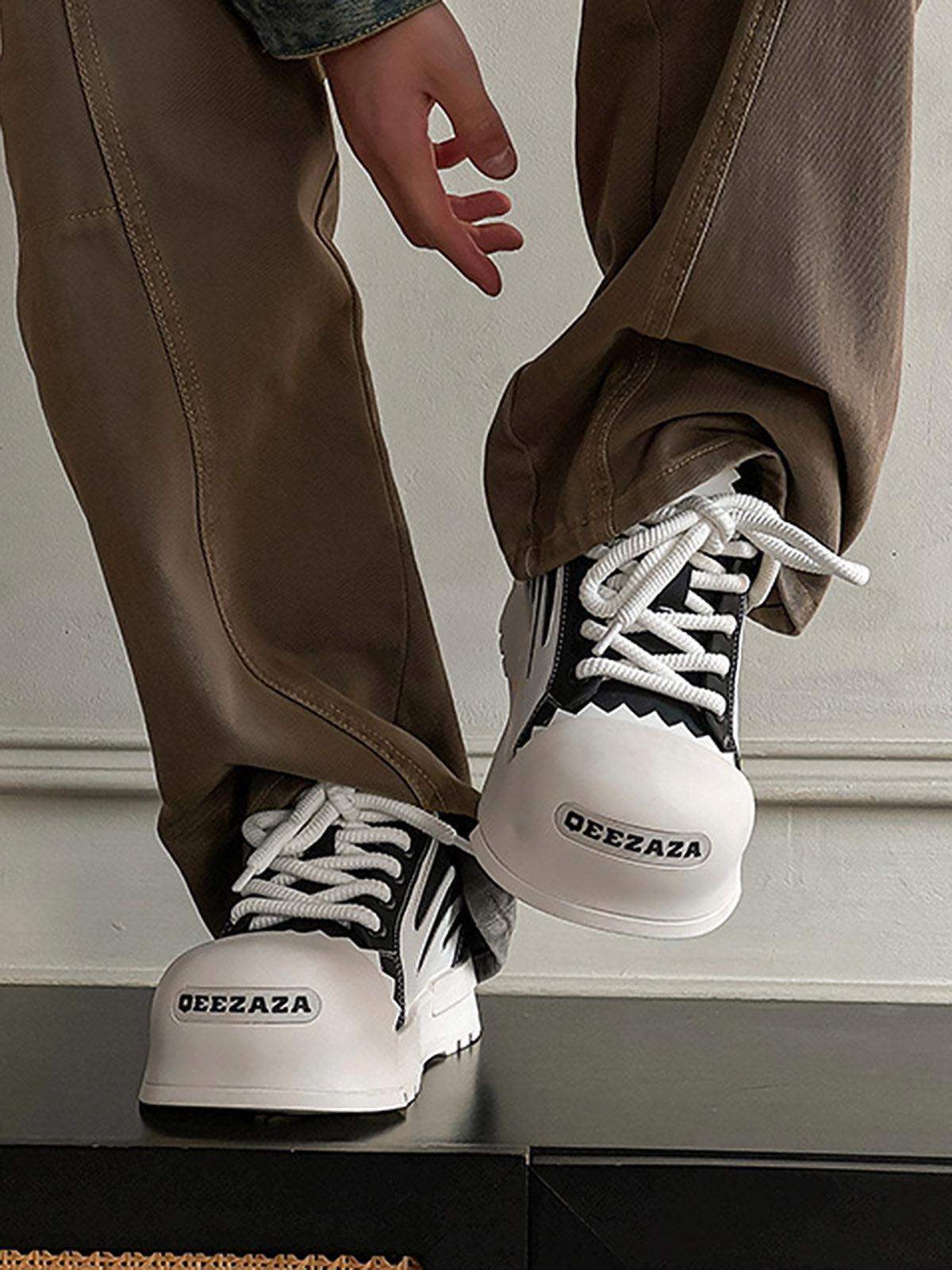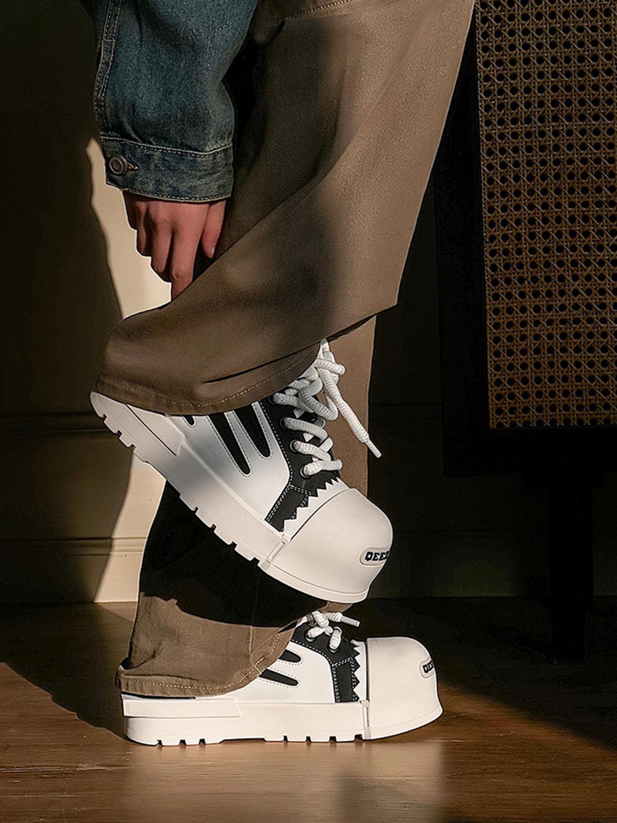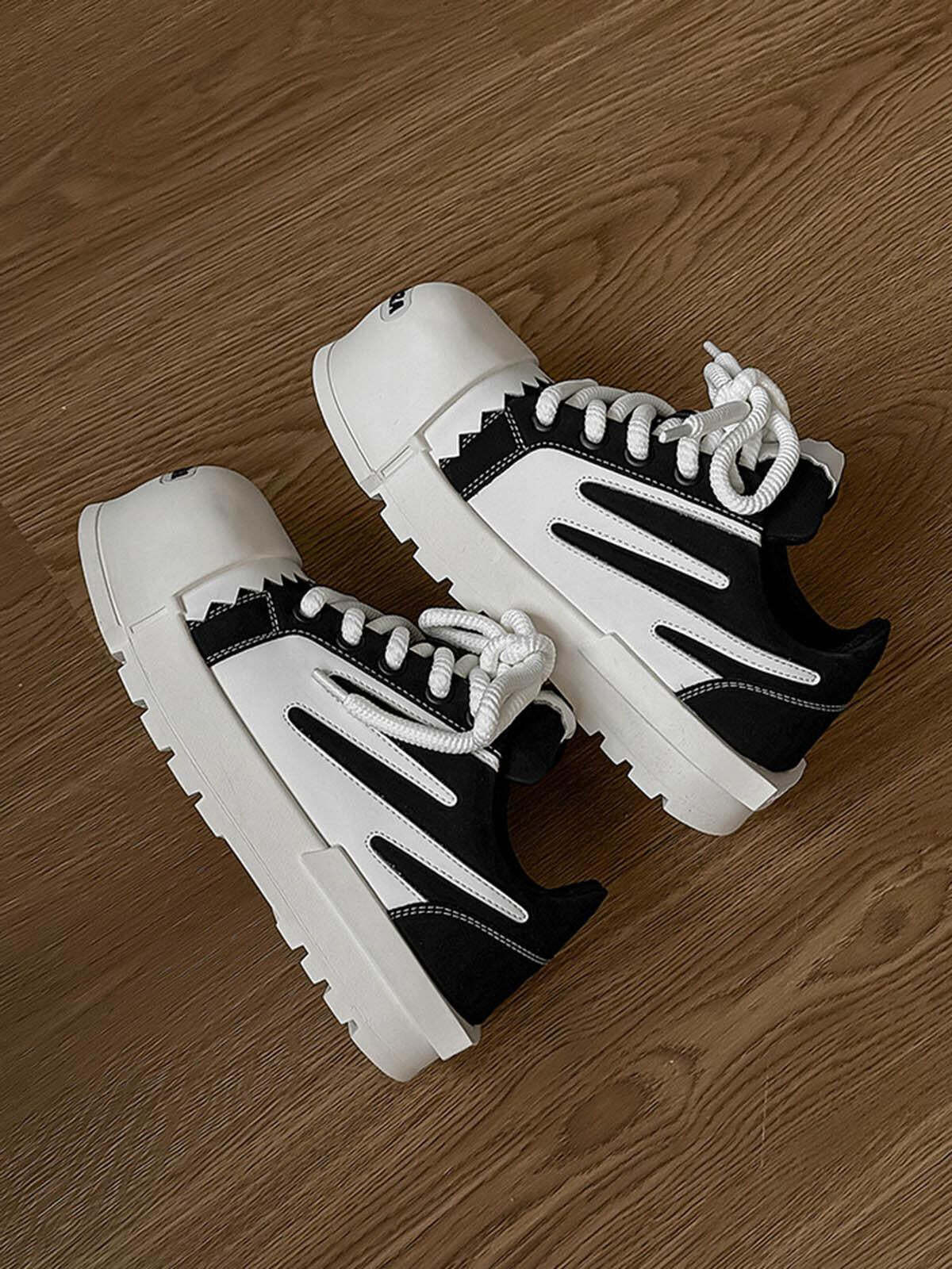 Turn heads with these Street Contrast Color Casual Sneakers, perfect for spring, summer, and fall. Engineered for casual outings and street style, these sneakers feature a striking black and white contrast with unique zigzag patterns. The chunky sole design ensures comfort and stability, making them an ideal match for any casual ensemble.