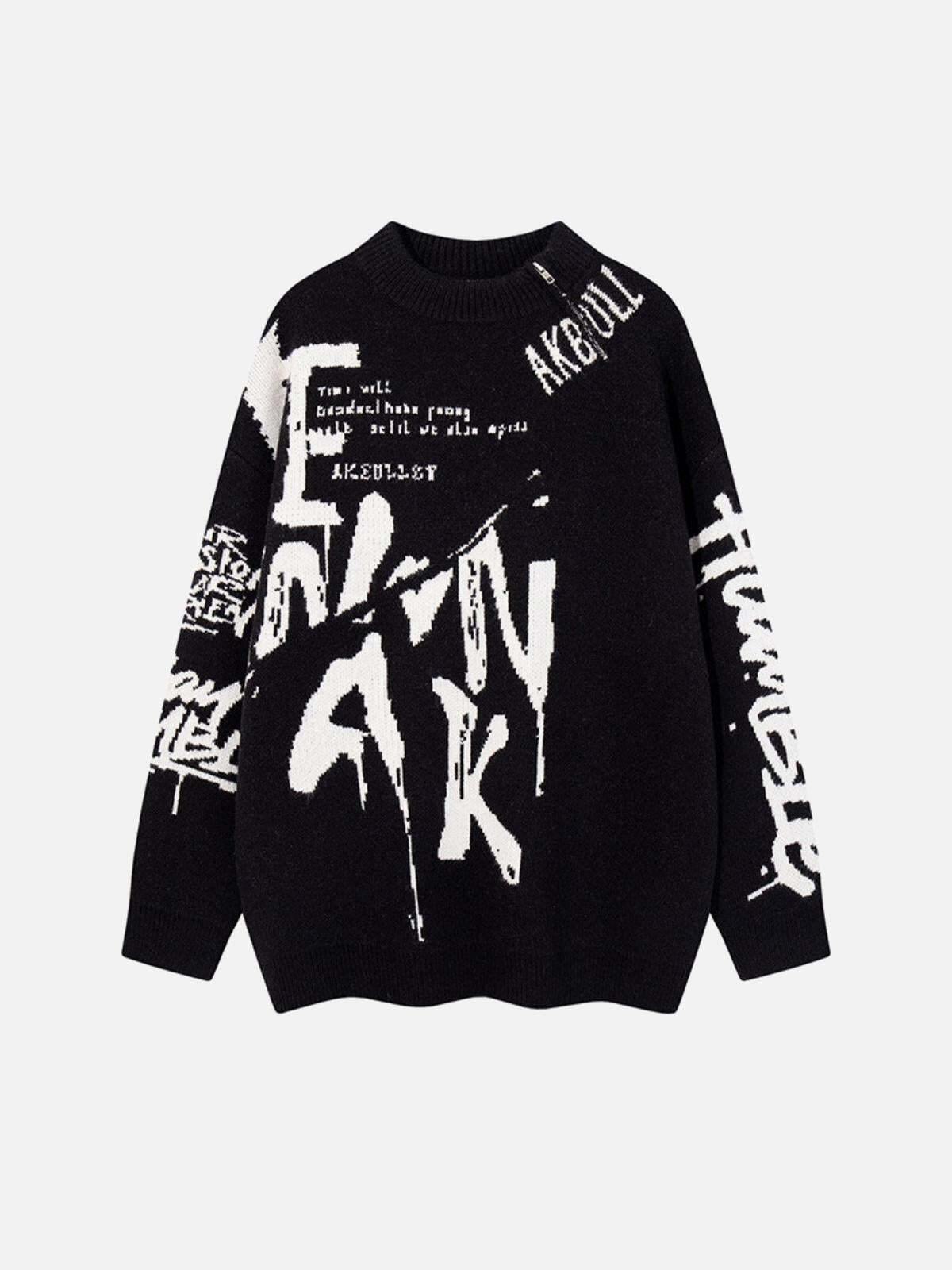 Concert Outfit Street Letter Graffiti Jacquard Sweater High-quality product featuring concert outfit ideas, outfit inspo, country concert outfit and more. Modern design that fits the latest trends. Premium materials ensure durability and comfort. Order now for special offers! Product designed with attention to every detail. Suitable for all occasions and personal styles.