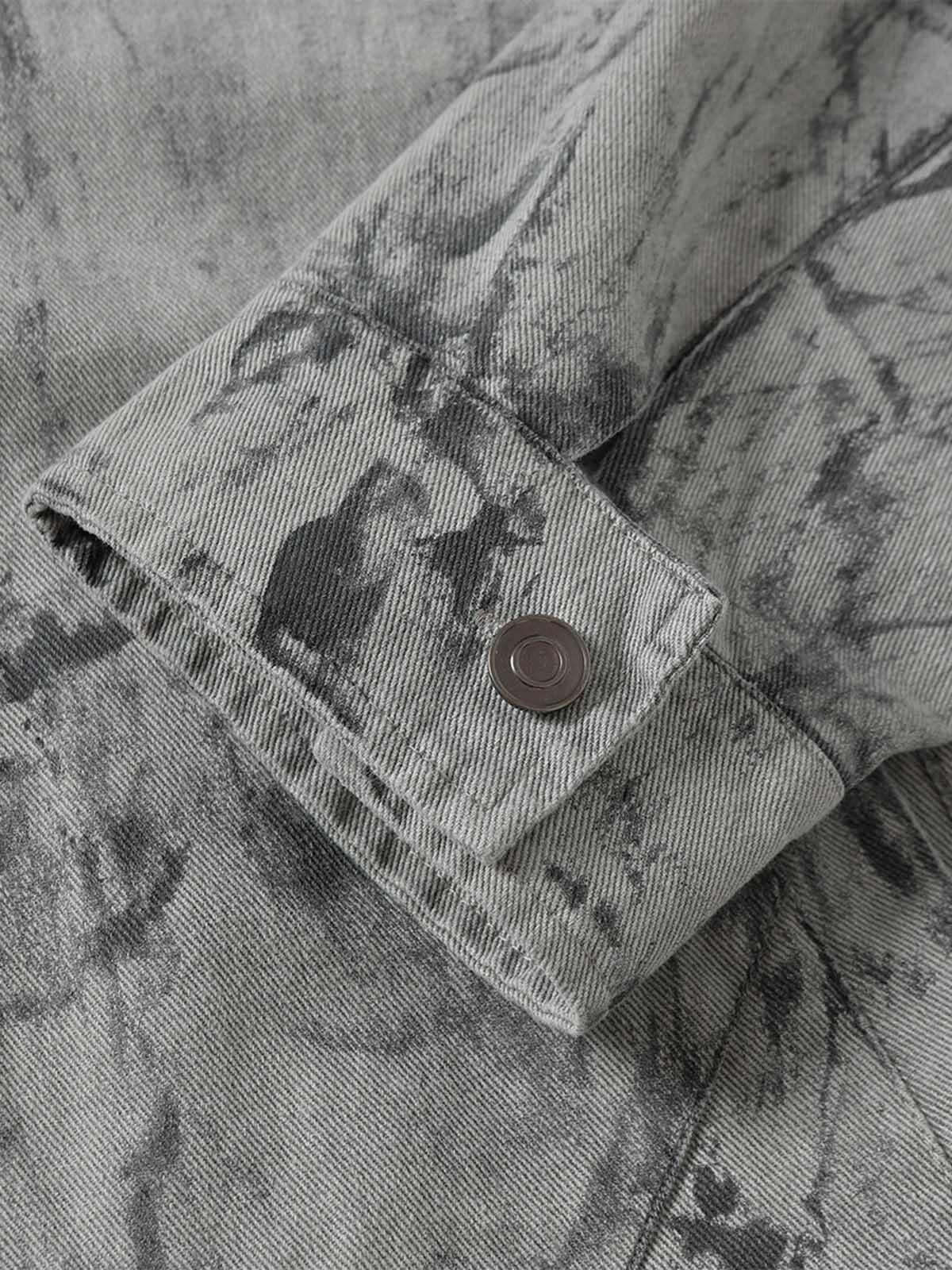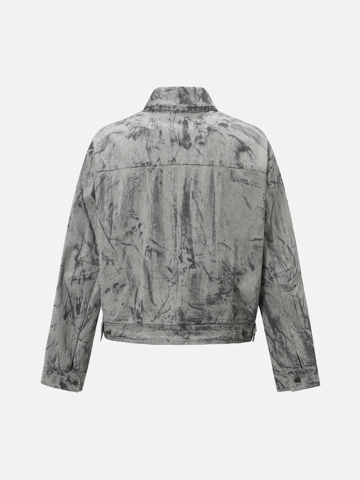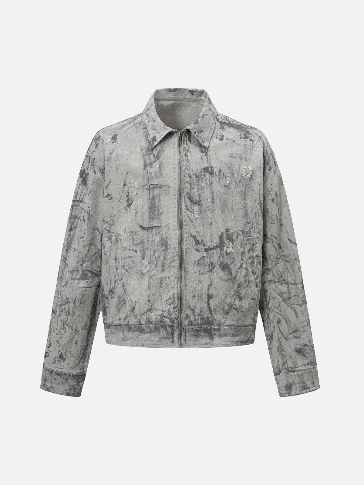 Stylish Concert Outfit: Trendy Tie-dye Denim Bomber Jacket for Your Next Event