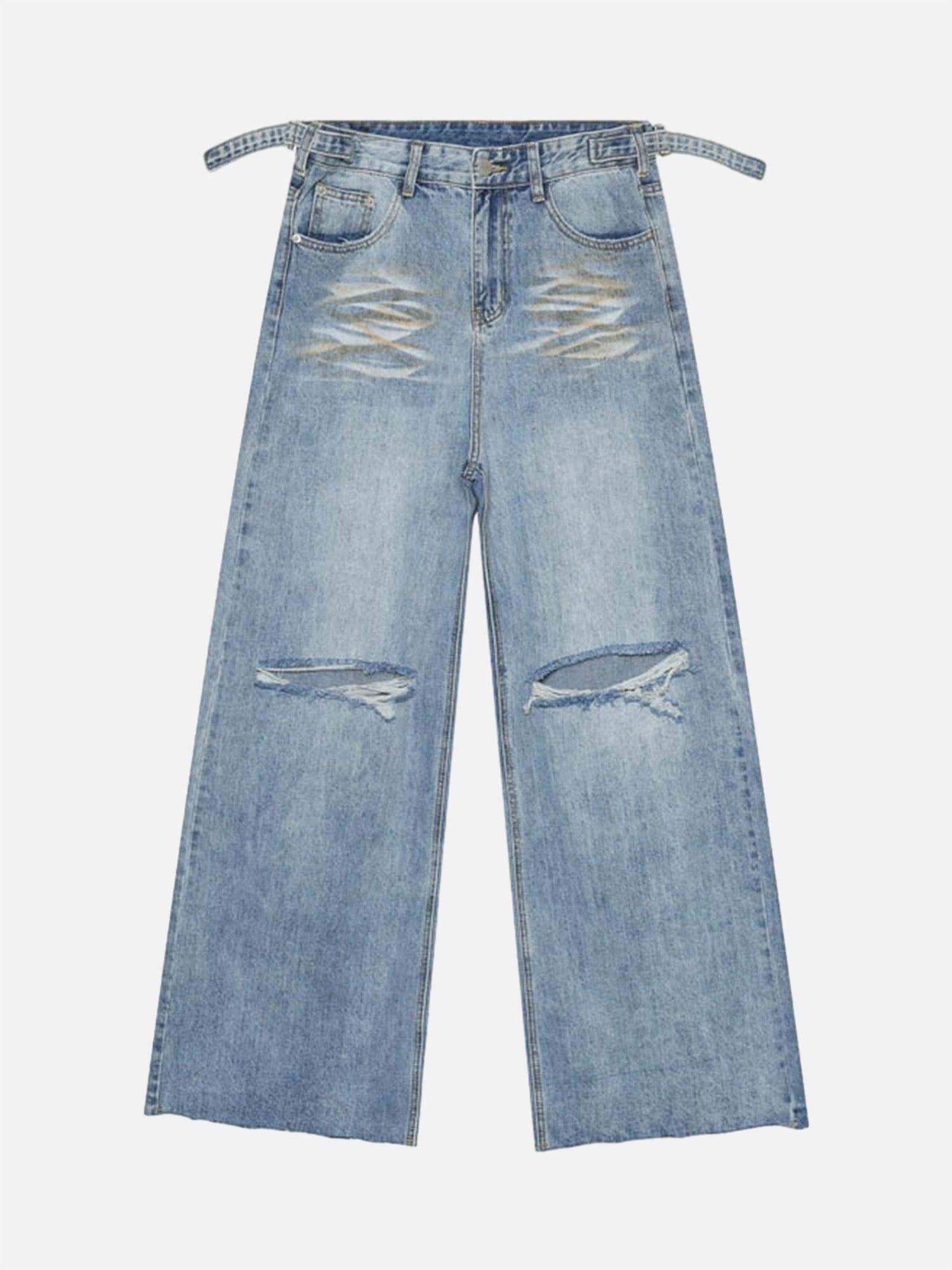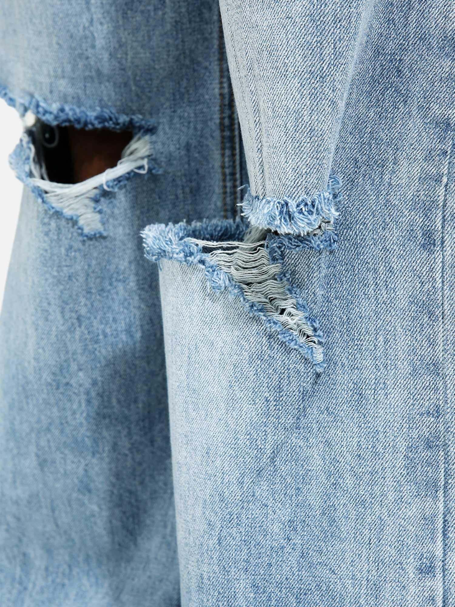 Dare to redefine your look with these blue wide-leg jeans, showcasing a perfect balance of distressed detailing and effortless style. The relaxed fit offers all-day comfort, while the artful rips and faded wash infuse an authentic streetwear vibe. Available in sizes S, M, L, and XL, these jeans are your go-to for creating endless outfit ideas, whether you’re channeling y2k outfits or modern streetwear fashion. Pair them with your favorite sneakers or a bold top to keep your style fresh and fearless.