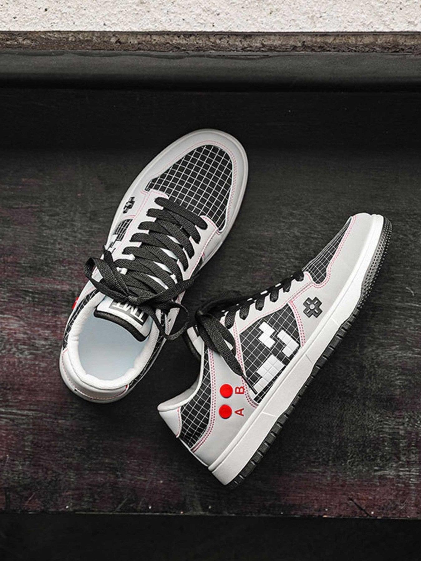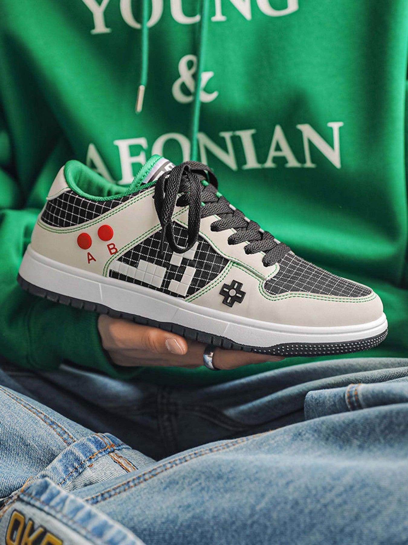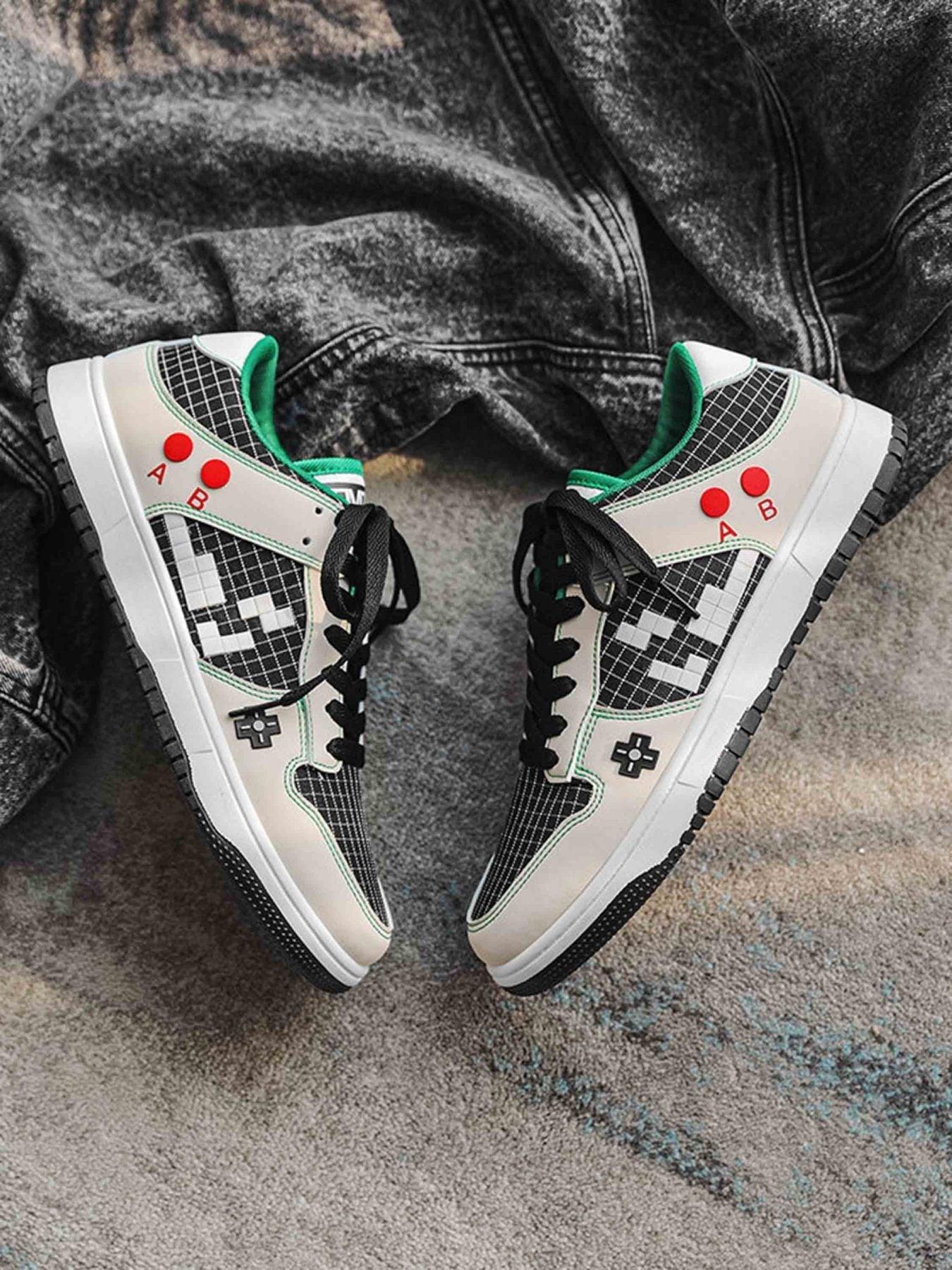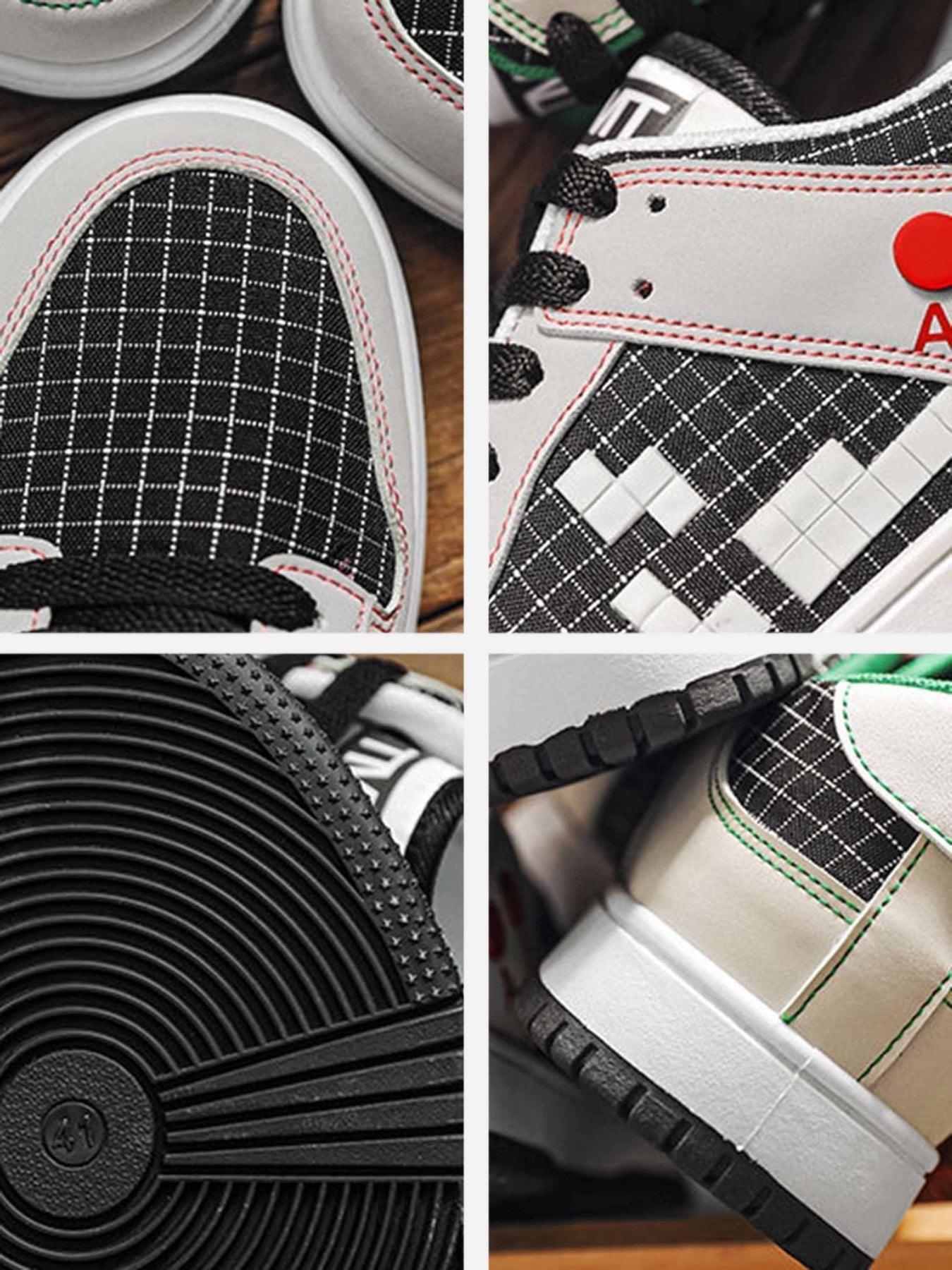Step into the retro-futuristic vibe with these captivating kicks that blend digital nostalgia with urban flair. The bold black grid pattern interlaces seamlessly with vibrant green accents, while the striking red details pop with a nod to classic gaming culture. Designed for those who dare to redefine streetwear fashion, these sneakers offer a snug fit across sizes 39 to 44, ensuring comfort without compromising style. Whether you’re pairing them with y2k outfits or adding a unique twist to your everyday look, these shoes are your ticket to making every step a part of your story. Slide into these and redefine your outfit inspo today.