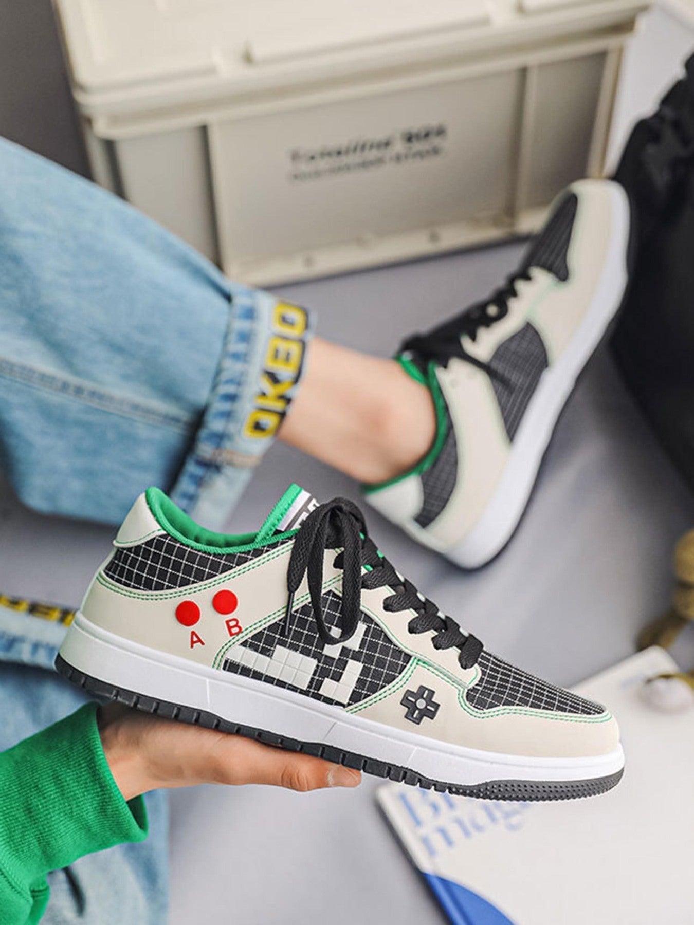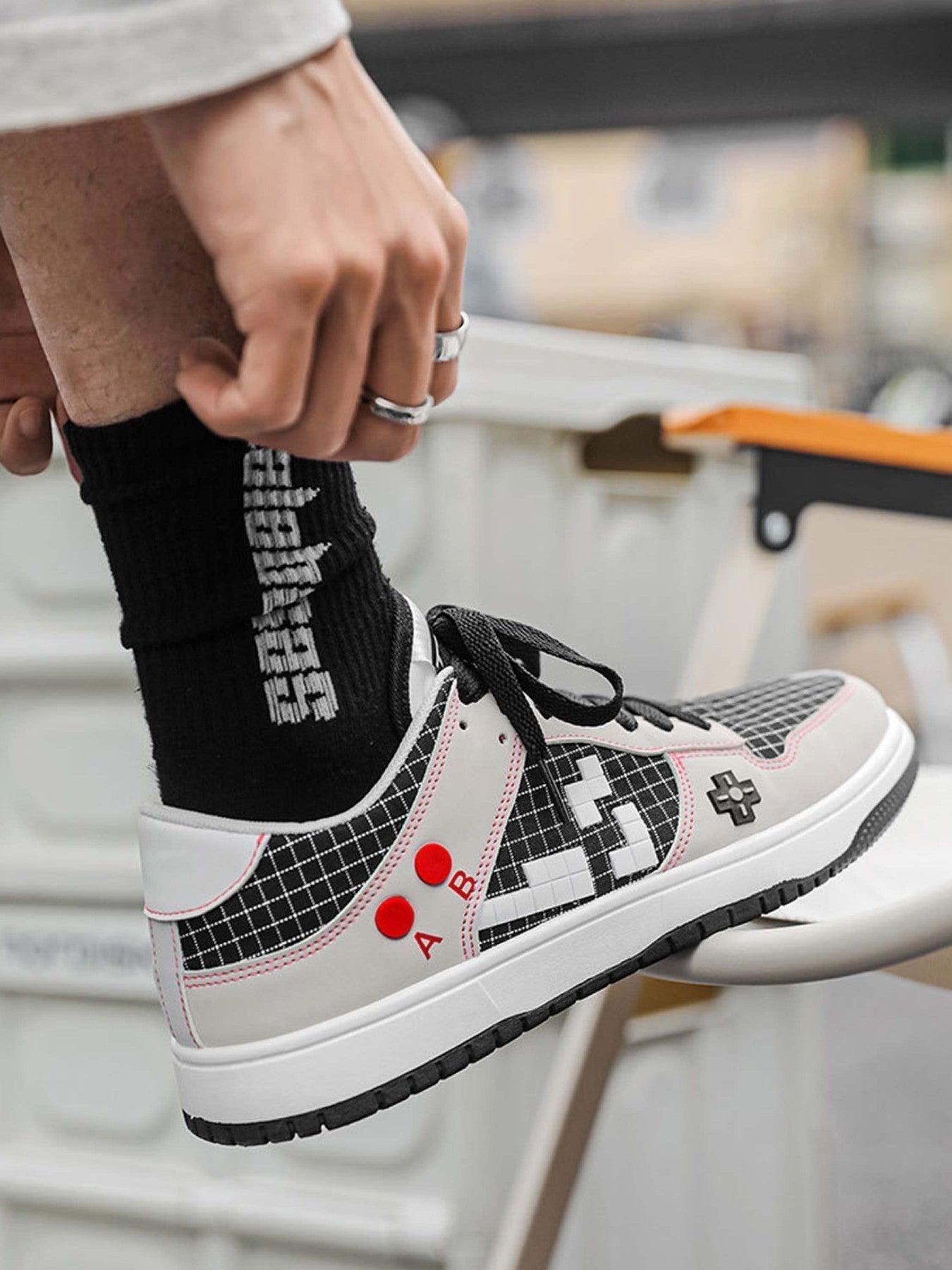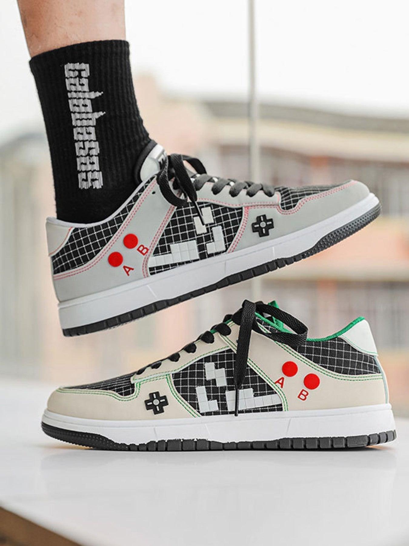 Step into the retro-futuristic vibe with these captivating kicks that blend digital nostalgia with urban flair. The bold black grid pattern interlaces seamlessly with vibrant green accents, while the striking red details pop with a nod to classic gaming culture. Designed for those who dare to redefine streetwear fashion, these sneakers offer a snug fit across sizes 39 to 44, ensuring comfort without compromising style. Whether you’re pairing them with y2k outfits or adding a unique twist to your everyday look, these shoes are your ticket to making every step a part of your story. Slide into these and redefine your outfit inspo today.
