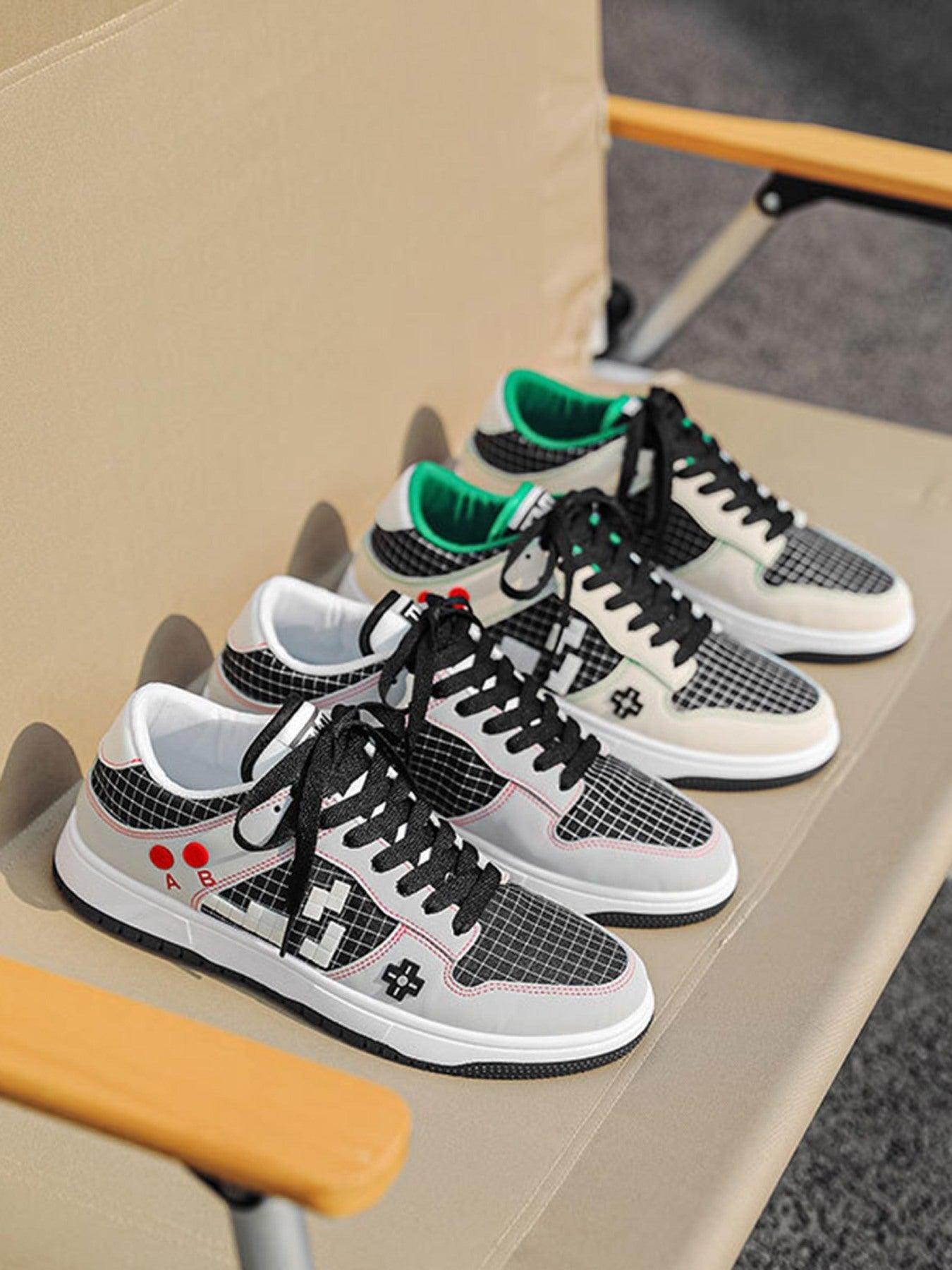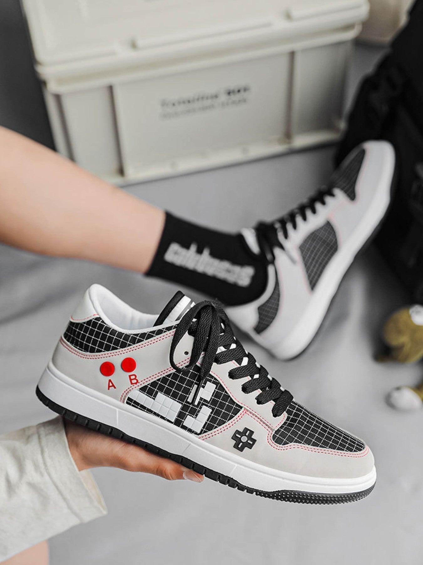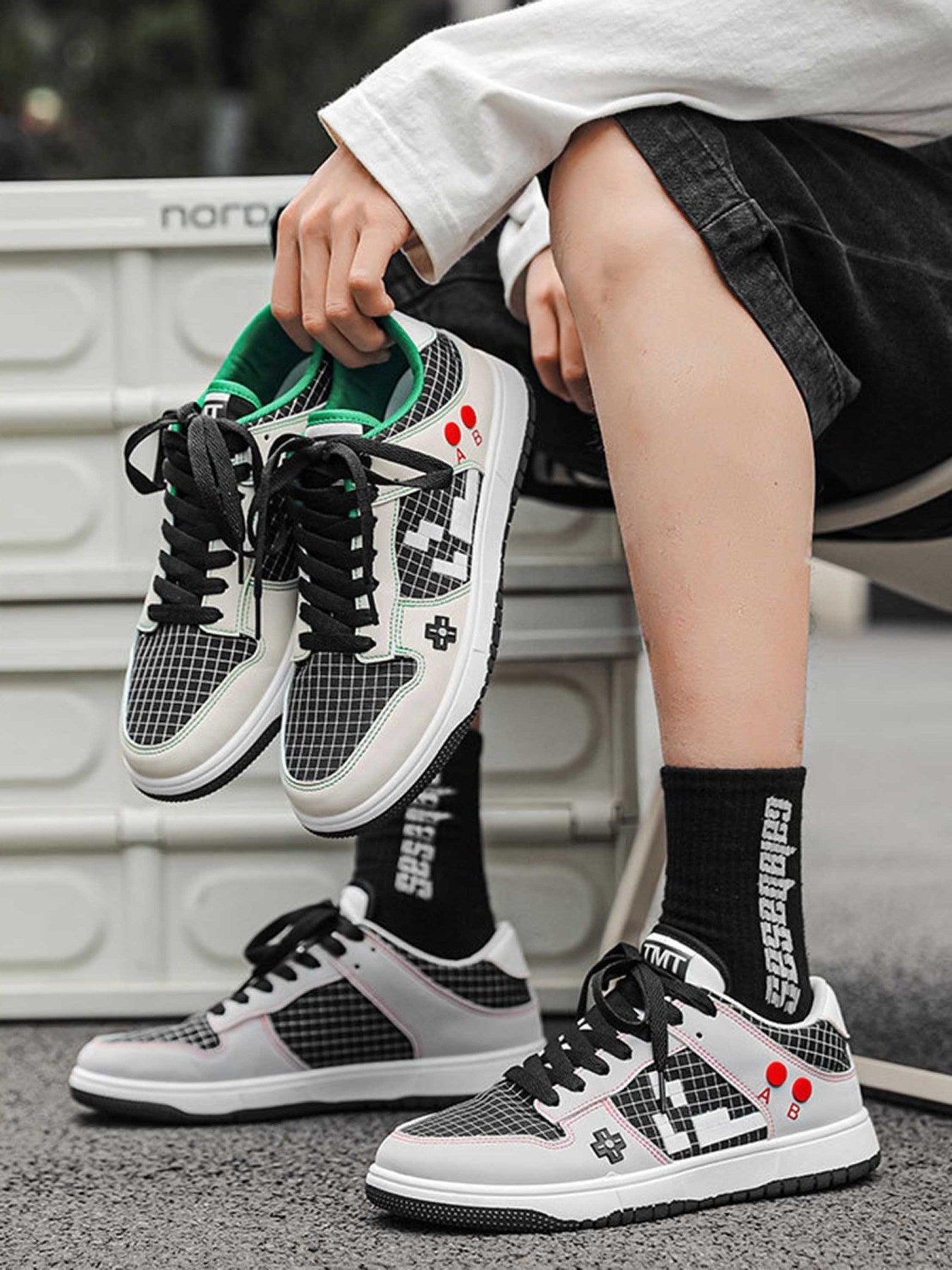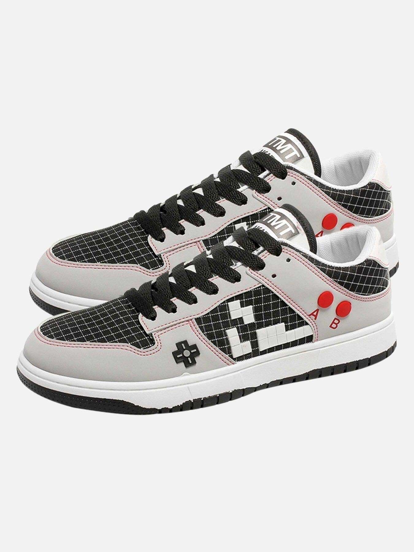 Step into the retro-futuristic vibe with these captivating kicks that blend digital nostalgia with urban flair. The bold black grid pattern interlaces seamlessly with vibrant green accents, while the striking red details pop with a nod to classic gaming culture. Designed for those who dare to redefine streetwear fashion, these sneakers offer a snug fit across sizes 39 to 44, ensuring comfort without compromising style. Whether you’re pairing them with y2k outfits or adding a unique twist to your everyday look, these shoes are your ticket to making every step a part of your story. Slide into these and redefine your outfit inspo today.