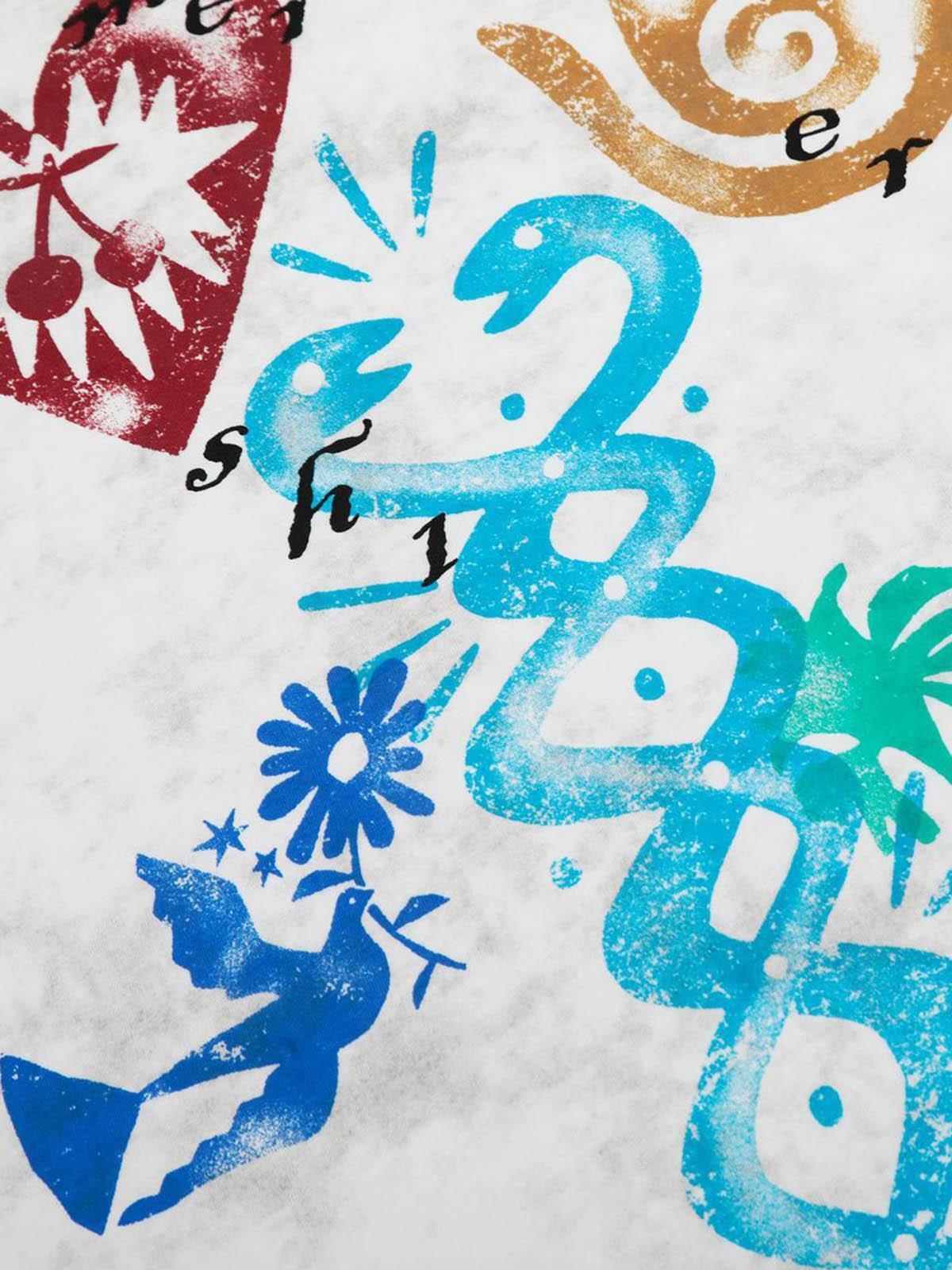 Unleash your inner artist with this bold graphic tee, where vibrant symbols collide in a kaleidoscope of summer vibes. The striking mix of colorful motifs, including hearts, hands, and nature-inspired graphics, pops against the crisp white fabric, creating a statement piece that’s perfect for any urban adventure. Designed for comfort and style, this tee offers a relaxed fit available in M, L, and XL, making it a versatile addition to your summer outfit rotation. Pair it with distressed jeans or shorts for an effortlessly cool look that turns heads. Embrace the energy and let your style speak volumes.