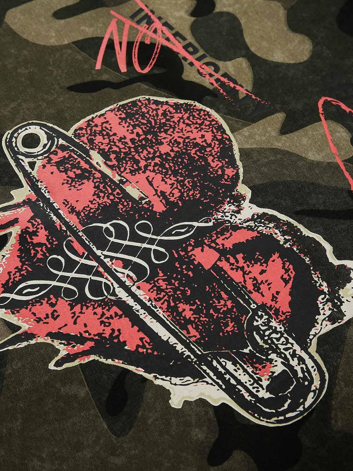 Break the mold with this rugged camouflage hoodie, merging bold streetwear fashion with a rebellious edge. The striking graphic of a bleeding heart and barbed wire bursts in vivid red against the muted green camo backdrop, creating a raw and daring look. Crafted for comfort and style, the relaxed fit ensures you move with ease, whether you’re rocking a size M for a snug feel or opting for a 2XL for that oversized vibe. Pair it with distressed jeans or cargo pants for a killer y2k outfit that screams attitude. Ready to redefine your wardrobe? This piece is your ticket.
