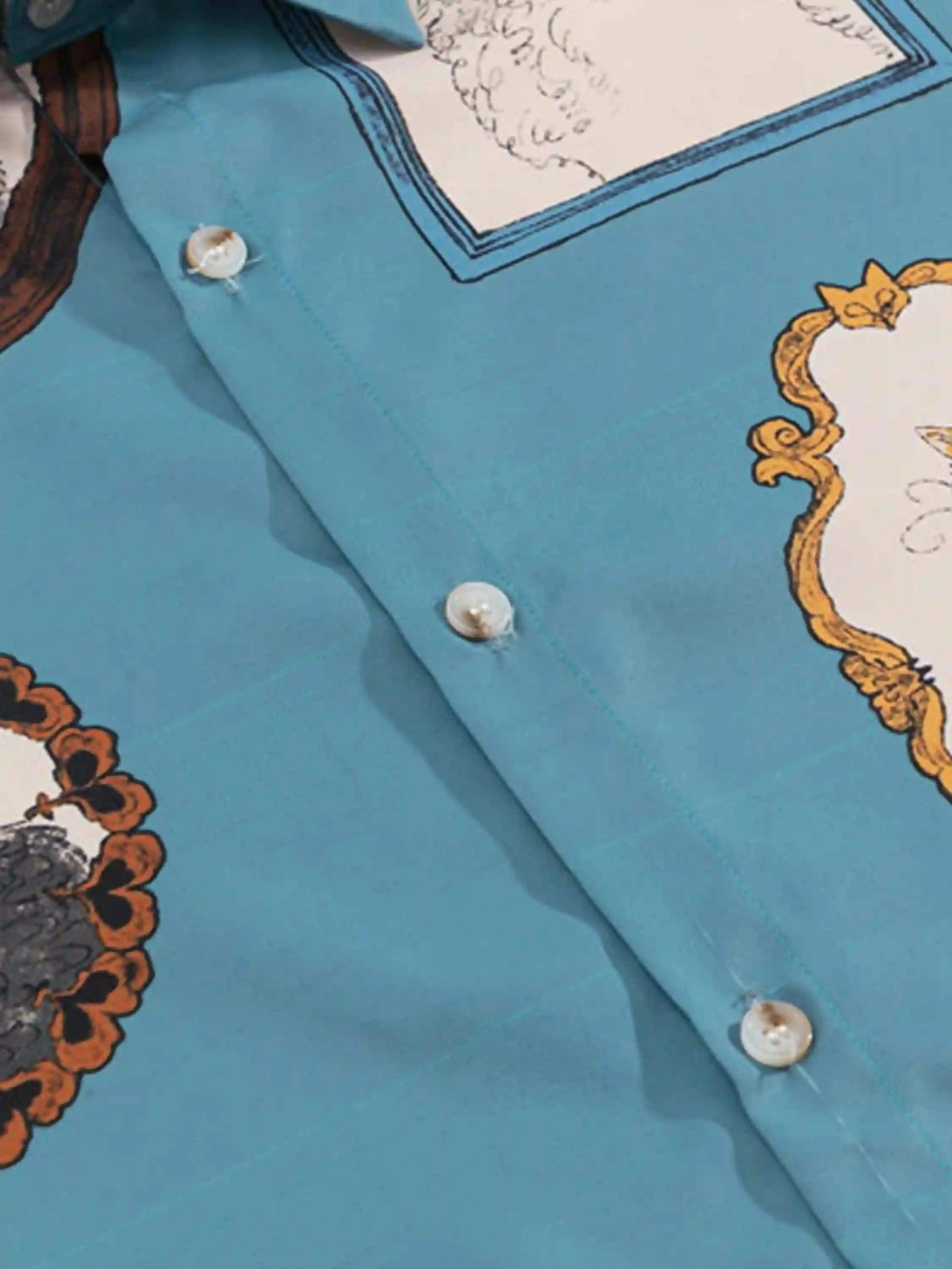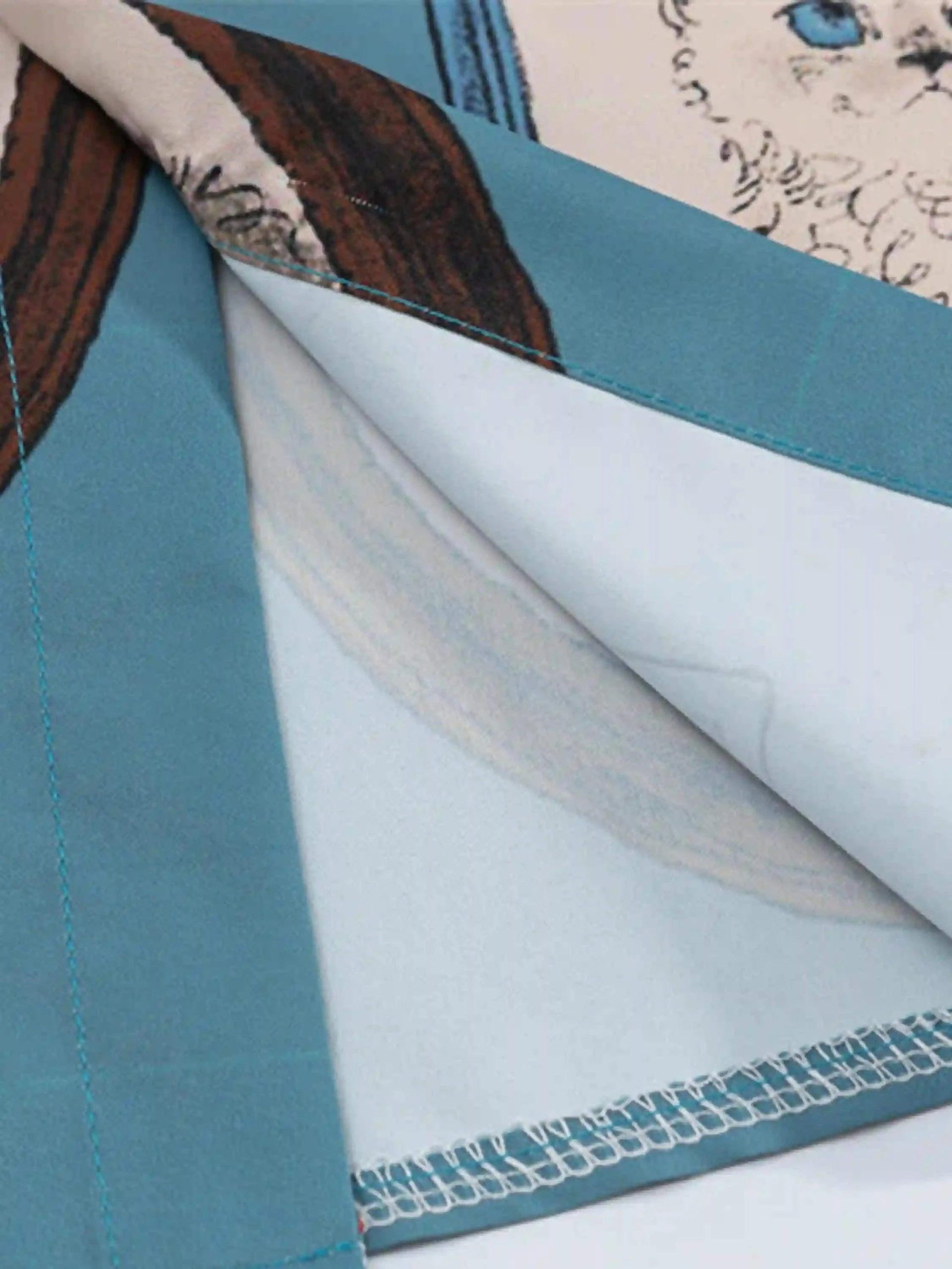 Embrace your playful side with this bold short-sleeve shirt, featuring an eye-catching array of illustrated feline portraits set against a rich blue backdrop. The smooth texture and relaxed fit make it perfect for layering over your favorite streetwear essentials, whether you’re rocking it in medium, large, or extra-large. The intricate cat illustrations bring a quirky twist to any outfit, making it a standout piece for those who love to push the boundaries of streetwear fashion. Pair it with your go-to black jeans for an effortlessly cool look that’s ready to turn heads. Slip into this unique design and let your wardrobe reflect your fearless style.