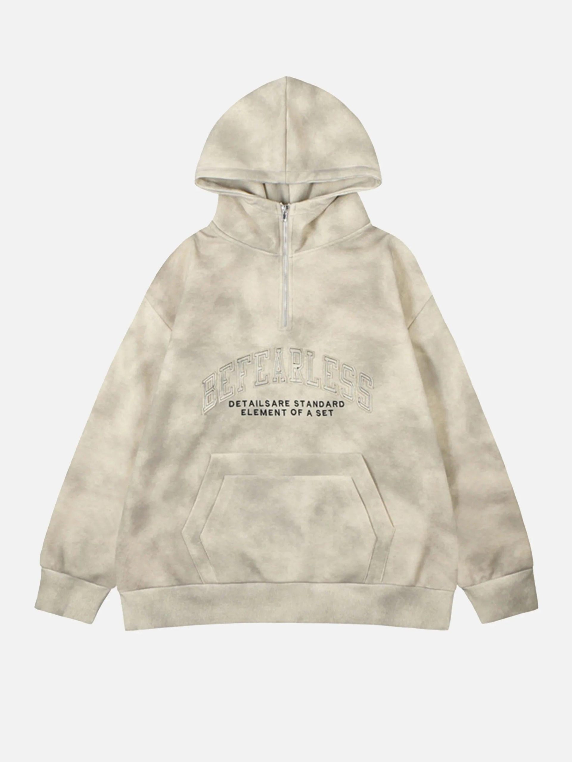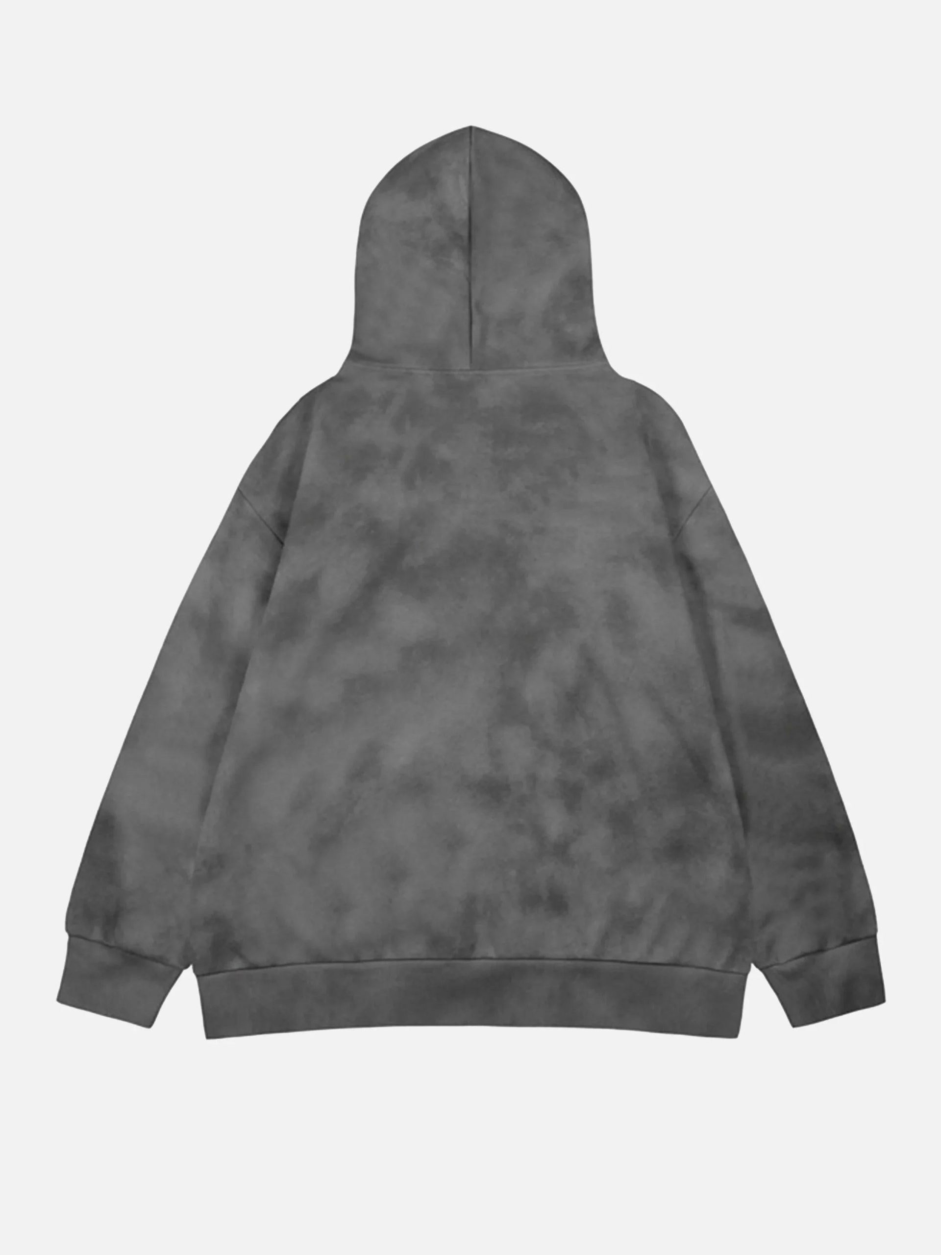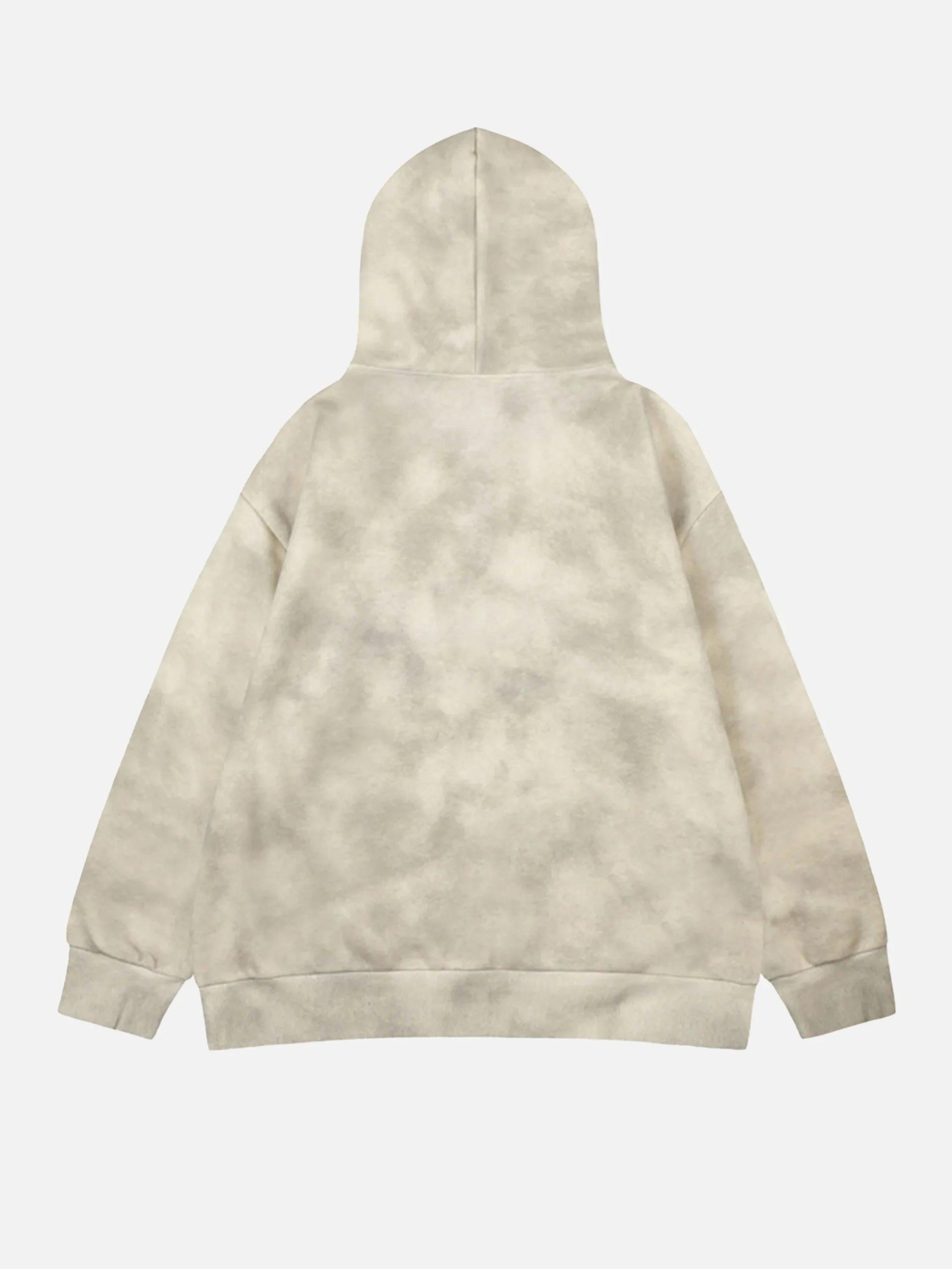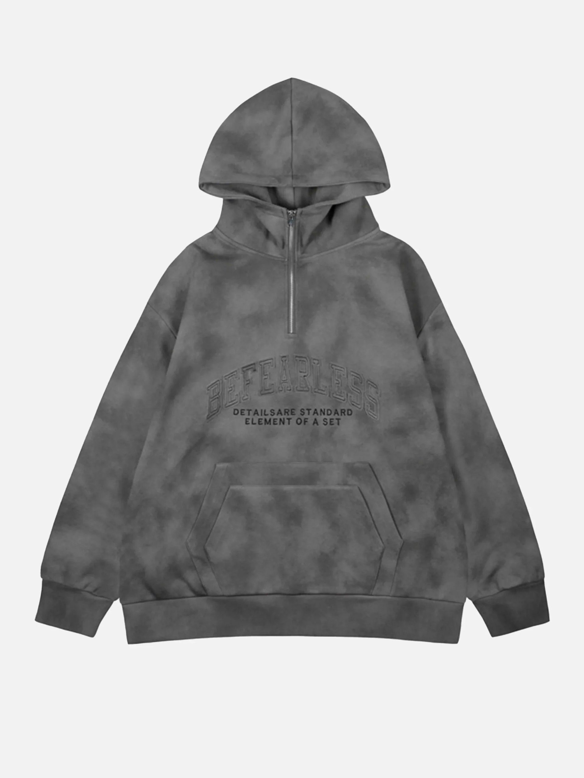 Embrace the power of urban edge with this tie-dye hoodie, where the smoky gray hue meets bold embossed lettering to redefine streetwear fashion. The half-zip design and kangaroo pocket add functionality without sacrificing style, making it a versatile piece for any y2k-inspired outfit. Available in sizes S to XL, this hoodie’s relaxed fit ensures comfort and confidence, whether you’re layering up in the city or keeping it casual. Pair it with your favorite sneakers and let your vibe speak volumes.