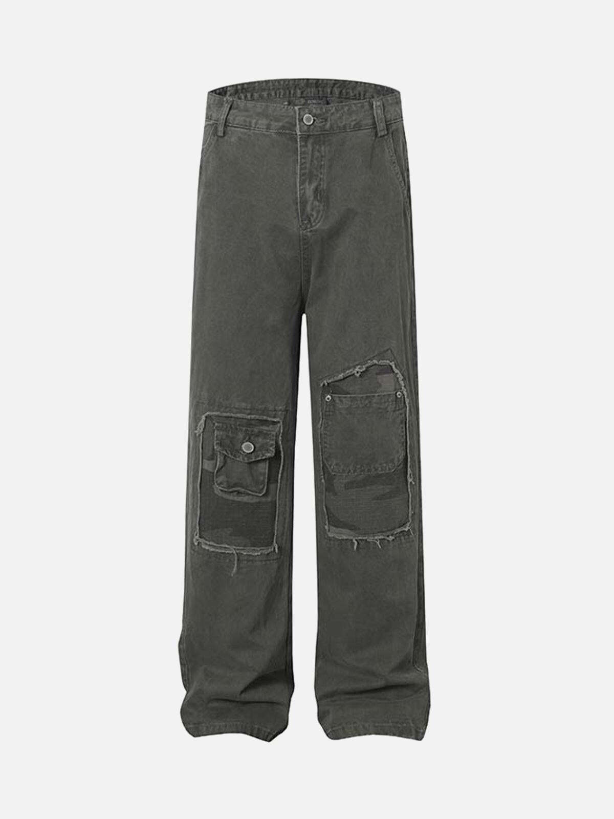 Defy convention with these rugged, dark gray cargo pants that blend utility and style effortlessly. The distressed patchwork and roomy pockets evoke a bold, urban vibe, making them perfect for those who thrive on streetwear fashion’s cutting edge. These pants offer a relaxed fit that moves with you, available in sizes from S to XL, ensuring a comfortable yet edgy look for any adventure. Pair them with your favorite graphic tee for the ultimate y2k outfit inspo. Grab yours now and redefine your street-style game.