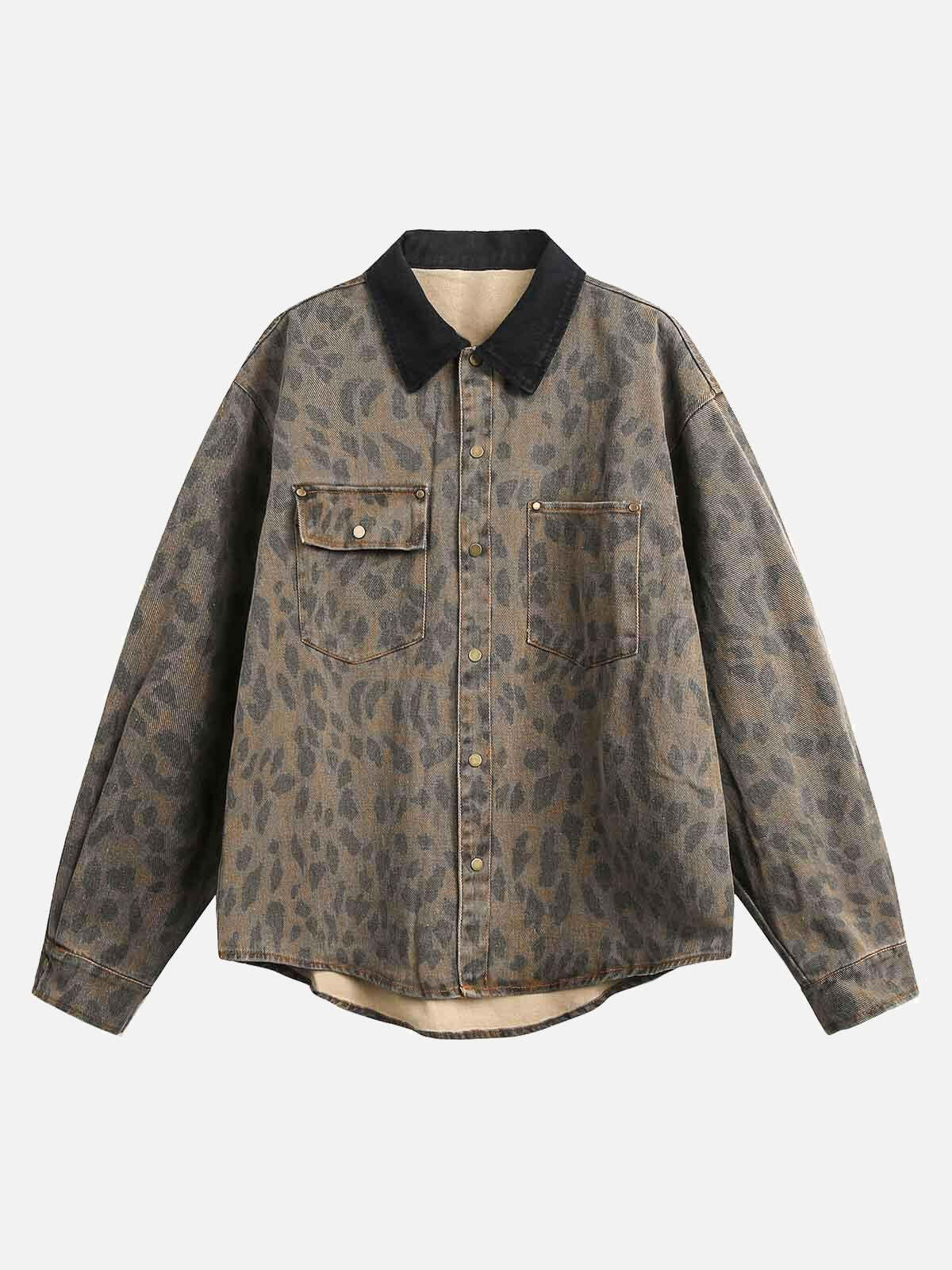 Step into the urban jungle with this fierce leopard print jacket that redefines streetwear fashion. The bold pattern is complemented by a sleek black collar, offering a striking contrast that exudes confidence and attitude. Available in sizes S to XL, its relaxed fit ensures comfort and versatility, perfect for layering over your favorite y2k outfits. The textured fabric adds dimension and depth, making it a standout piece in any wardrobe. Pair it with distressed jeans for a rugged look or over a sleek dress for unexpected edge. Own the streets and let your style roar.