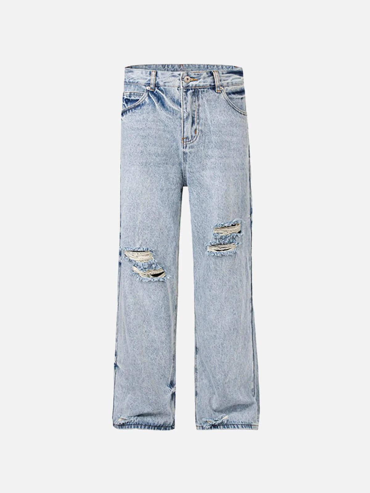 Break boundaries with these distressed blue jeans, designed for those who live life on the edge and embrace the raw energy of streetwear fashion. The light wash denim, with its perfectly placed rips and rugged texture, speaks to the rebel in you, offering a casual yet bold look that’s versatile for any urban adventure. Available in sizes S to XXL, these jeans offer a relaxed fit that pairs effortlessly with your favorite oversized hoodie or sleek leather jacket. Slide into these jeans and let them become the centerpiece for countless outfit ideas, whether you’re headed downtown or just chilling with friends. Grab your size and redefine your Y2K outfit inspo today.