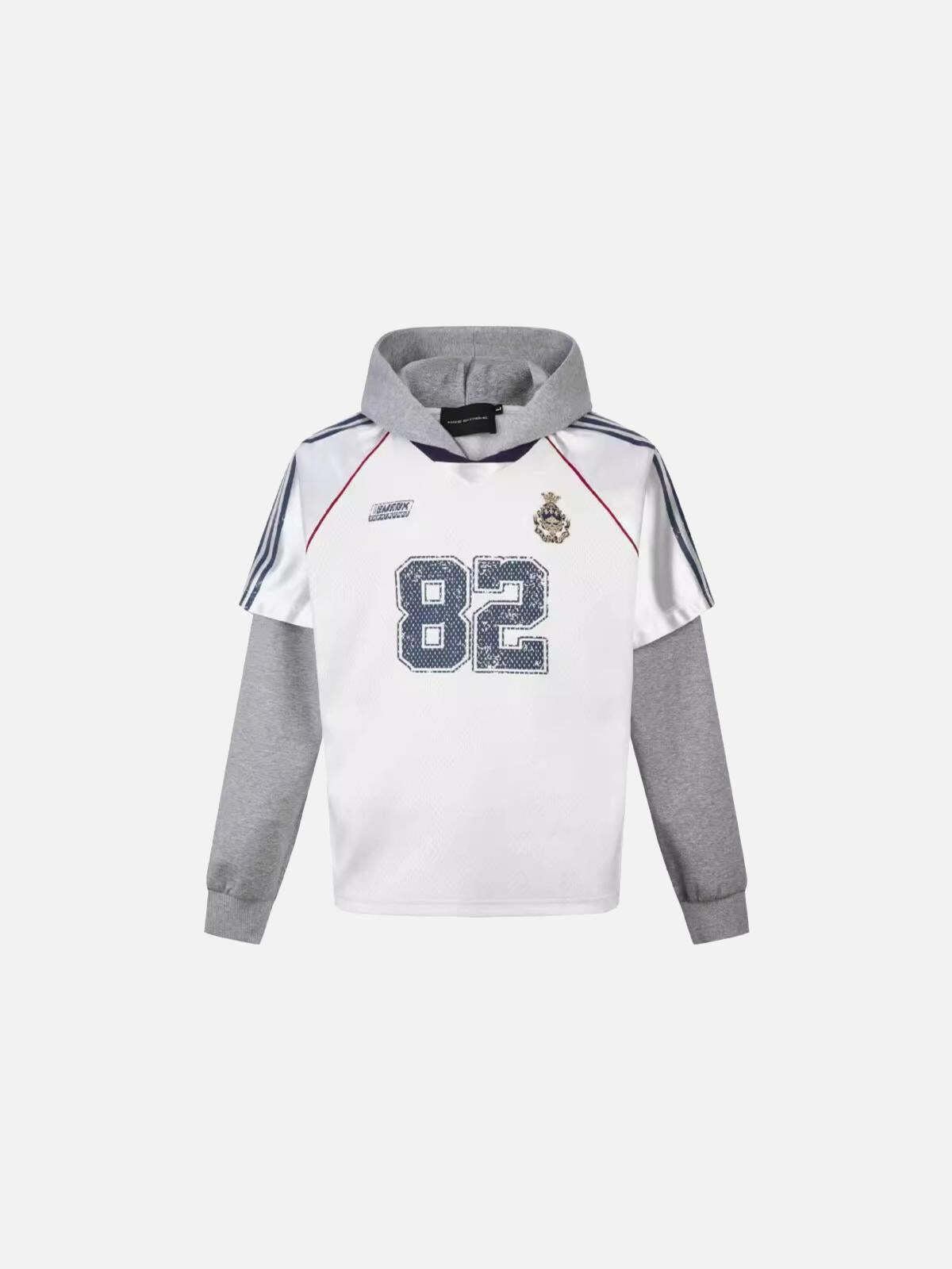 Channel the heart of urban streetwear with this bold hoodie, a fusion of sporty charisma and modern flair. The striking combination of crisp white and contrasting gray sleeves creates a dynamic look, while the textured ’82’ emblem adds a touch of retro flair that nods to the y2k era. With its relaxed fit, available in sizes M to XXL, you’ll move through city streets effortlessly, whether in classic black or vibrant red. Perfect for layering over tees or under jackets, this piece is your go-to for standout outfit ideas. Grab yours and redefine streetwear fashion.