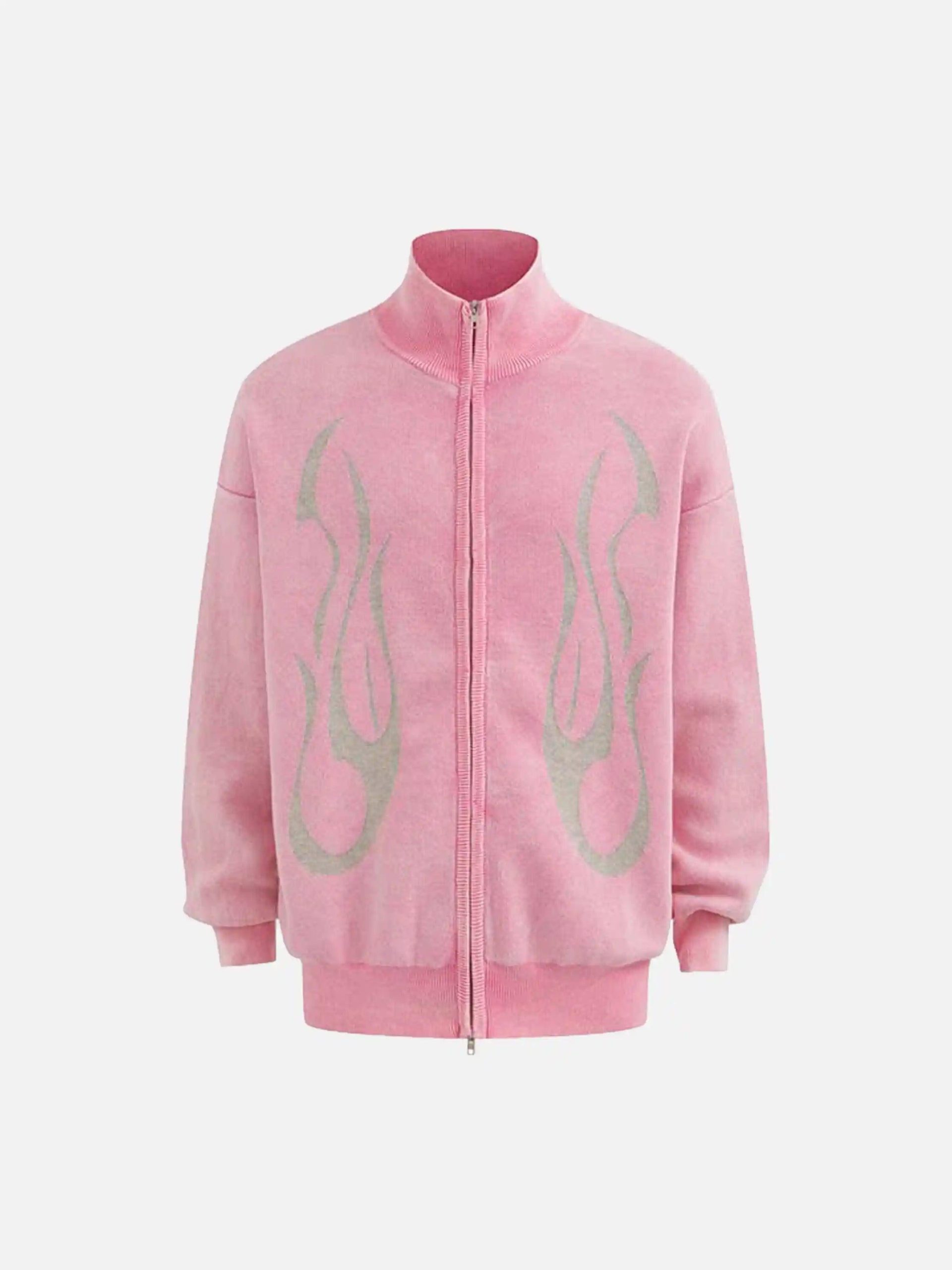 Unleash your inner fire with this bold, flame-adorned zip-up that redefines streetwear fashion with its daring edge. The striking flame graphics blaze across a textured black backdrop, creating a fierce contrast that demands attention. Available in versatile sizes M, L, and XL, this piece ensures a perfect fit for every bold soul. The high collar and relaxed fit provide both comfort and style, making it an essential addition to your collection. Whether you’re hitting the streets or creating outfit inspo for your next adventure, this jacket is your go-to. Slip into this statement piece and let your style ignite.