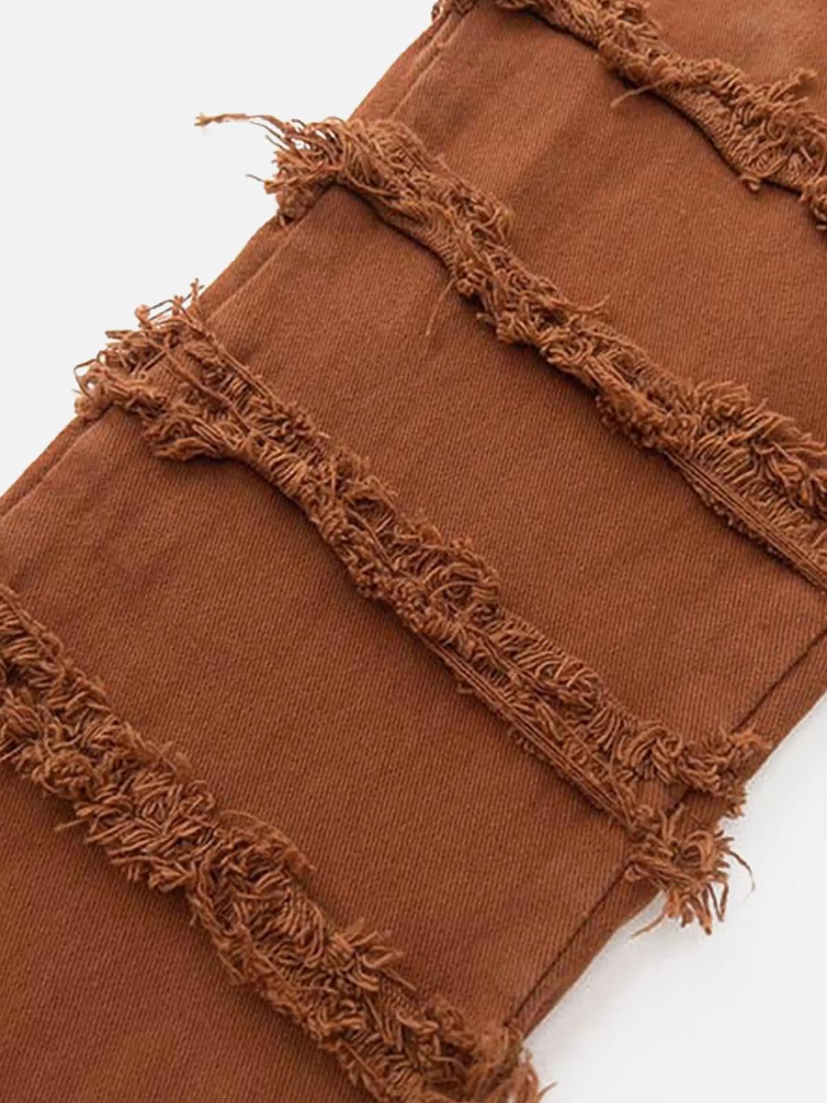Break the mold with these bold, textured pants, featuring a rugged fringe detail that screams urban edge. Whether you’re vibing with the rich tones of brown or sticking to classic black, these pants deliver a punch of character to any look. Available in sizes from S to XXL, their tailored fit and distinctive design make them a versatile choice for any streetwear enthusiast. Pair them with a sleek tee or layer with a vintage jacket for ultimate outfit inspo. Embrace your individuality and let these pants be the highlight of your y2k outfits.