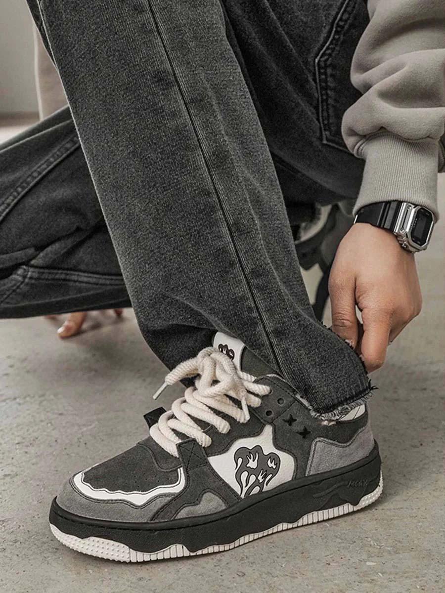 Dare to step out with an edge in these bold sneakers that redefine streetwear fashion with their dynamic design and urban flair. The striking gray suede overlays mingle with cream accents, creating a textured masterpiece that catches every eye. Padded for comfort, these kicks offer a cushioned fit that’s perfect for any scene, from the sidewalk to the skate park. Available in a range of sizes from 36 to 47, they’re designed to fit your lifestyle with ease. Pair them with your favorite Y2K outfits for a throwback vibe or mix them into modern ensemble ideas. Lace up and let your feet do the talking.