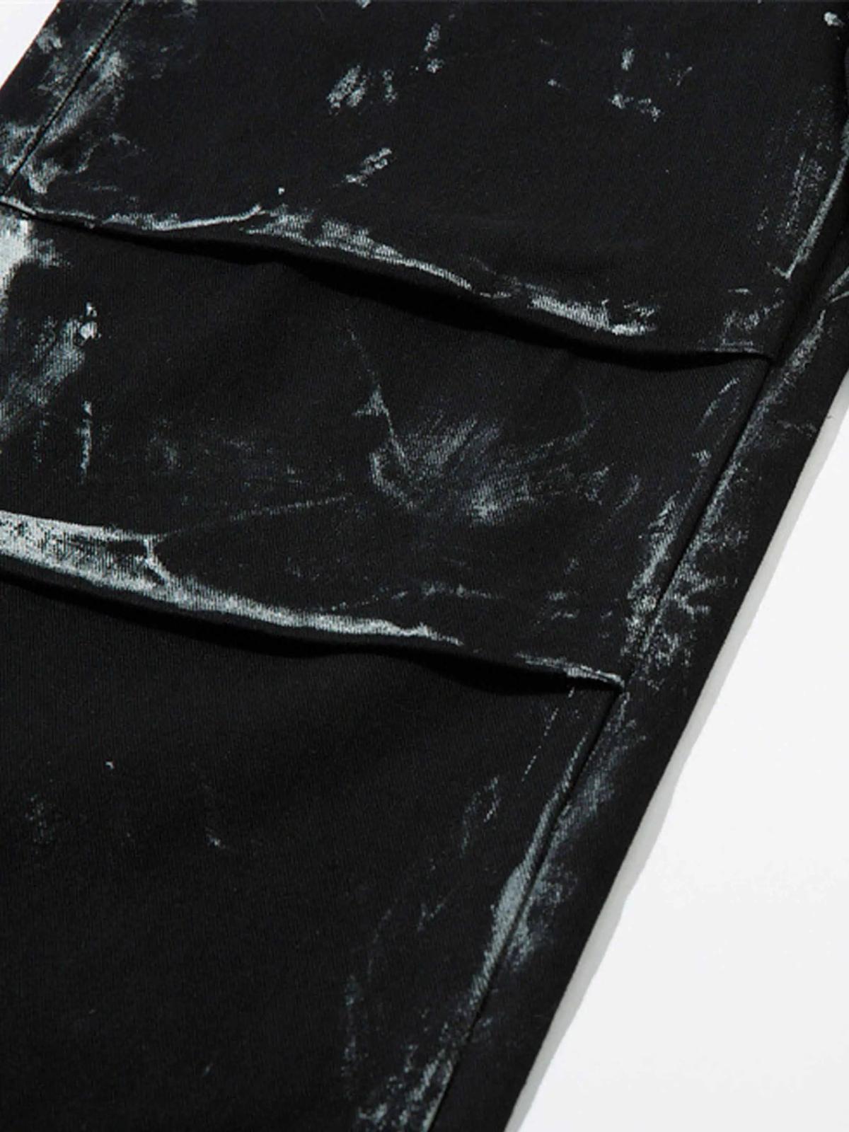 Embrace the gritty vibe of the streets with these striking black pants, where raw texture meets bold design. The distressed white paint splatter effect adds an edgy, artistic flair to your outfit ideas, perfect for those who dare to stand out. Constructed for the ultimate urban fit, these pants offer a relaxed silhouette available in sizes M, L, XL, and XLL. Pair them with a sleek hoodie or a vintage tee for effortless y2k outfits that turn heads. Dive into the realm of streetwear fashion and redefine your style with every step you take.