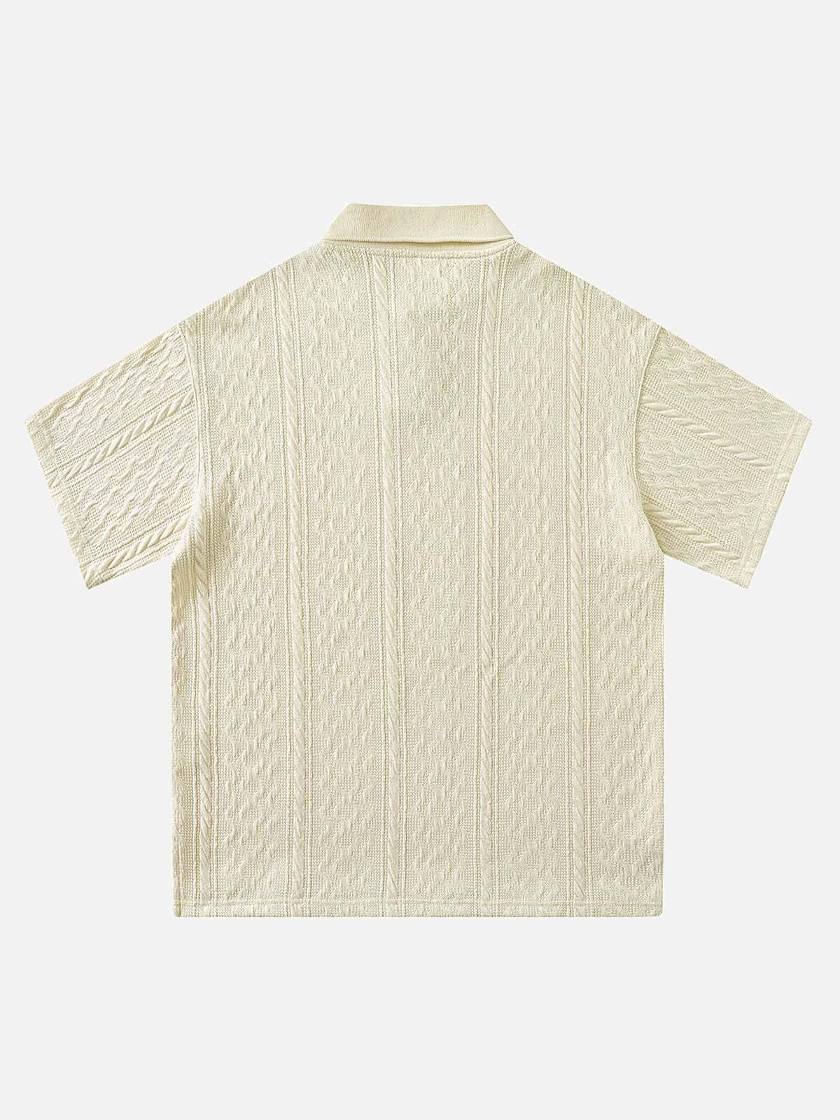 Break the mold with a textured masterpiece that blends streetwear fashion with a nod to iconic Y2K vibes. This apricot-hued polo showcases an intricate knit pattern, perfectly offset by a bold, artistic graphic that speaks volumes. Designed for those who dare to stand out, its relaxed fit offers comfort across sizes S to XL, making it versatile for any urban adventure. Whether you’re hitting the city streets or crafting new outfit ideas, this piece is your canvas. Elevate your style game with an effortlessly cool look that’s all about making your mark.