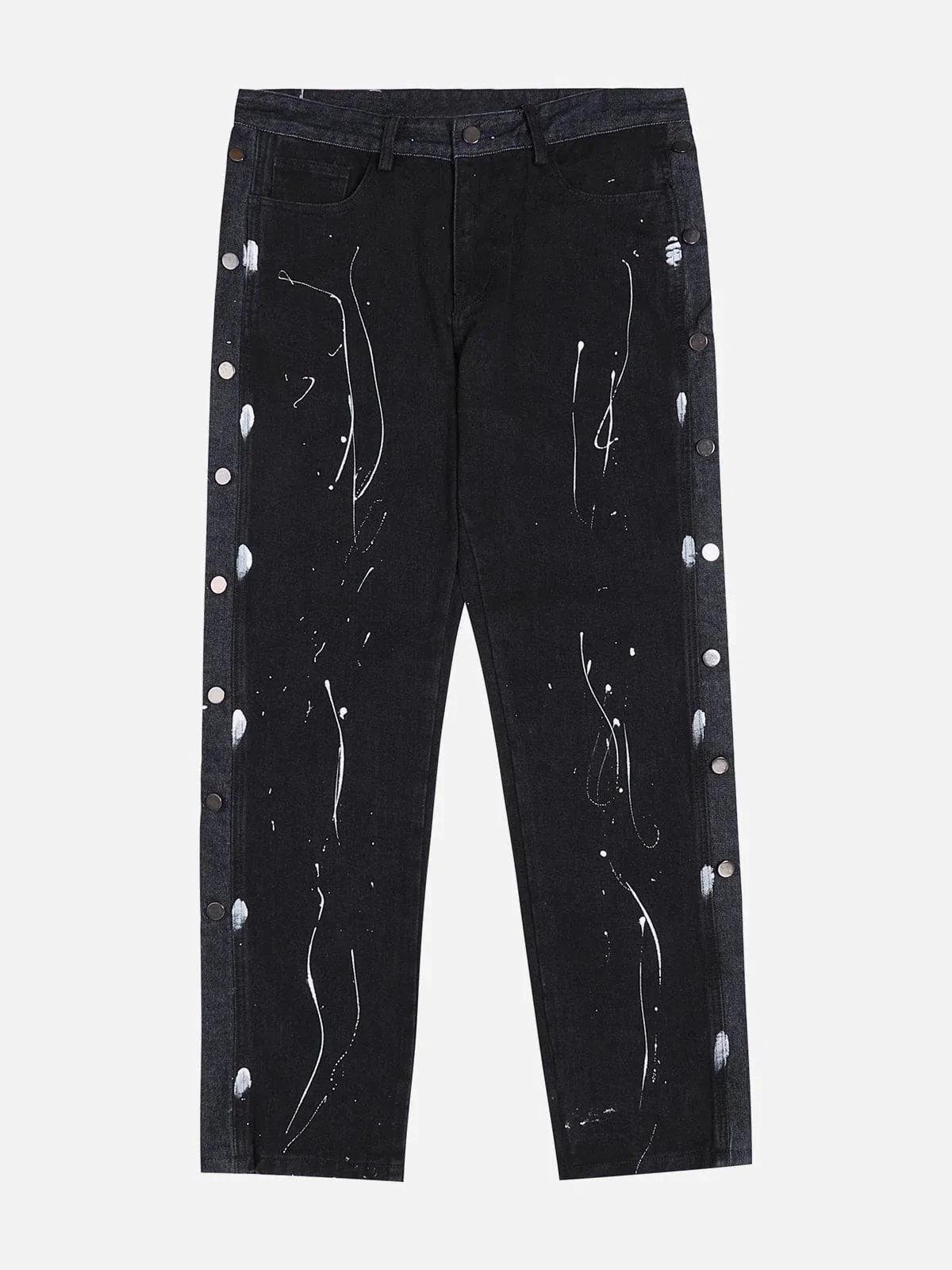 Dive into the urban scene with these black jeans, splattered with paint for an edgy, artistic vibe that screams individuality. These jeans offer a relaxed fit, perfectly balancing comfort and style, while the subtle distressing adds a rugged touch. With sizes ranging from 28 to 36, they ensure a perfect fit for every body type. Pair them with your favorite oversized hoodie for a laid-back look or a crisp white tee for a clean, streetwear fashion statement. Elevate your wardrobe with this bold piece and let your style do the talking.