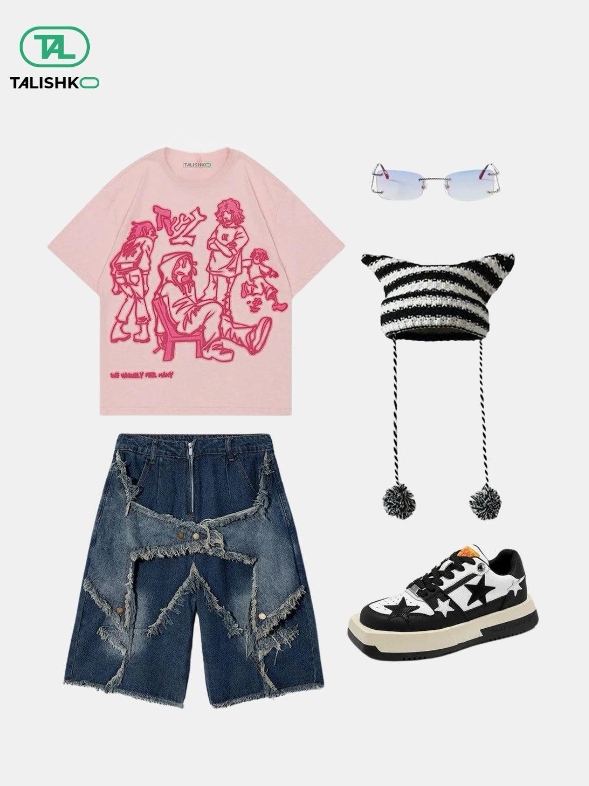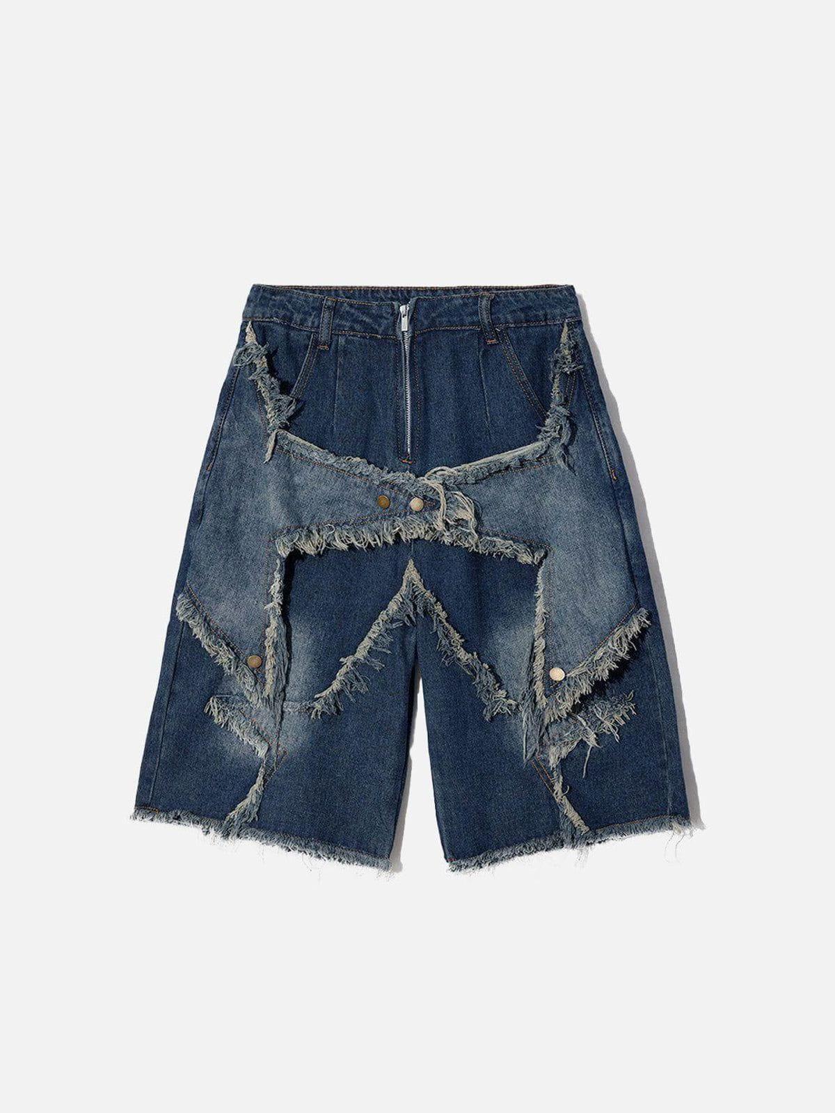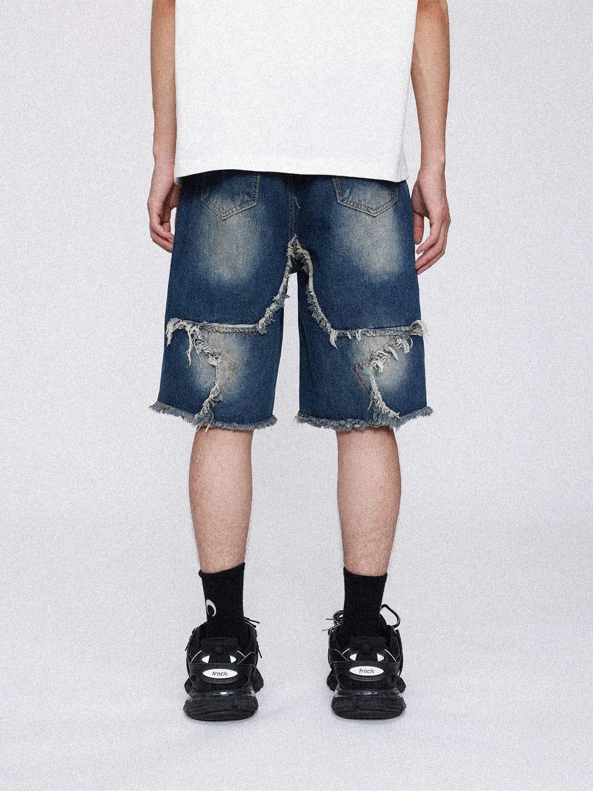 Step into the urban jungle with these bold denim shorts, where rugged distressing meets cutting-edge design, creating a raw and powerful aesthetic. The deep indigo hue is perfectly balanced with frayed edges and intricate stitch detailing, giving you that effortlessly cool vibe. Tailored in a one-size fit, these shorts are your ultimate summer style companion, blending comfort with a rebellious edge. Pair them with your favorite kicks and a simple tee for a look that’s all about confidence and authenticity. Embrace the streetwear revolution and redefine your summer fashion game.