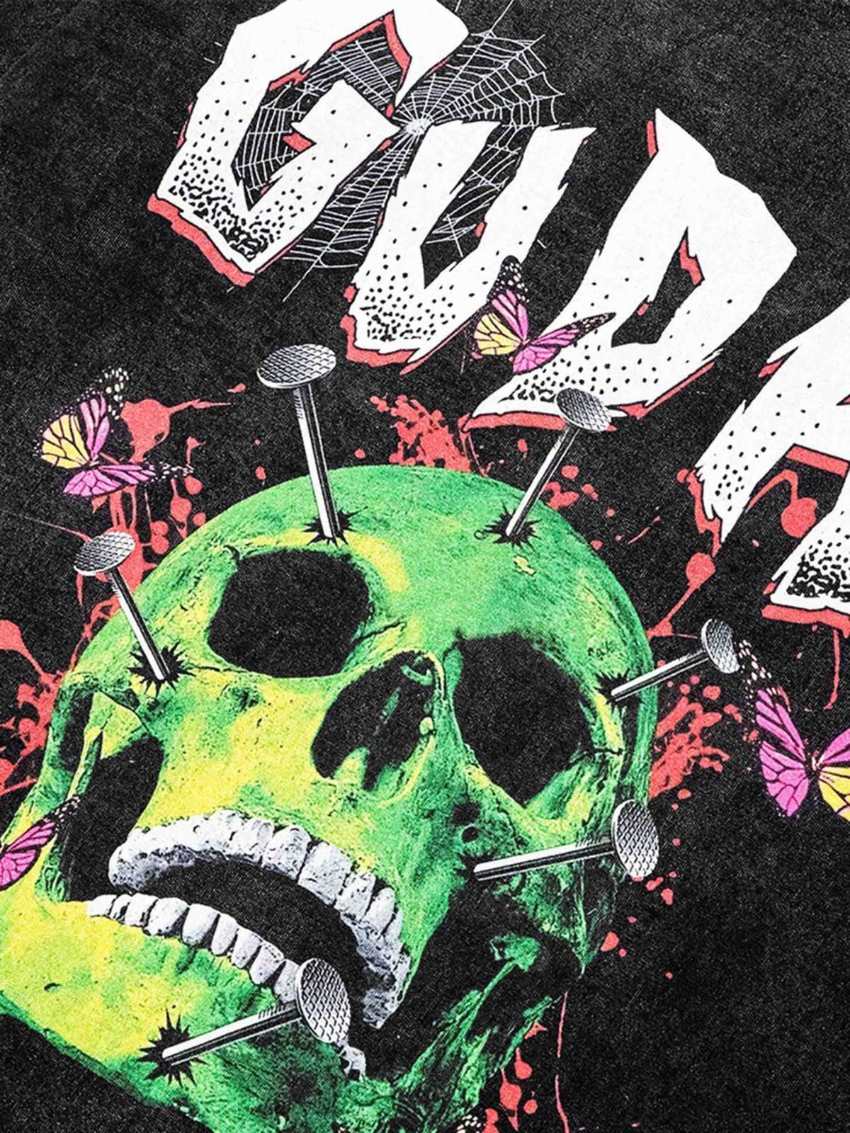 Break boundaries with this audacious tee, where a vibrant neon skull and butterfly design collide against the edgy black backdrop, creating a striking visual impact. The textured fabric offers an ultra-comfortable fit, perfect for those urban adventures or laid-back summer outings. Available in versatile sizes from S to 2XL, it effortlessly adapts to your style, ensuring you stay ahead in the streetwear game. Pair it with your favorite ripped jeans or shorts, and let your look redefine summer fashion. Grab yours now and make every day a canvas for bold expression.