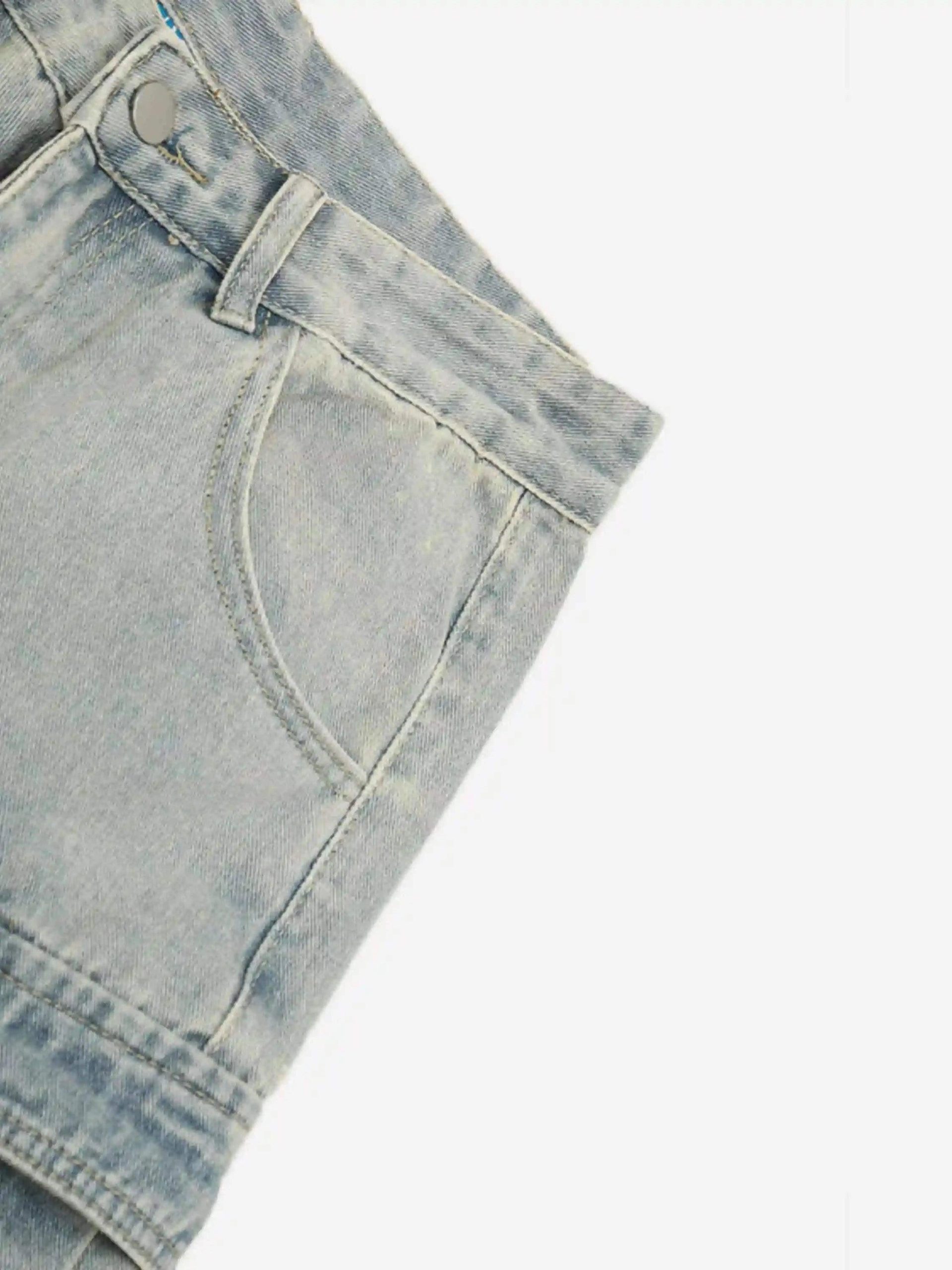 Concert Outfit Vintage Washed Loose Wide-Leg Denim Jorts