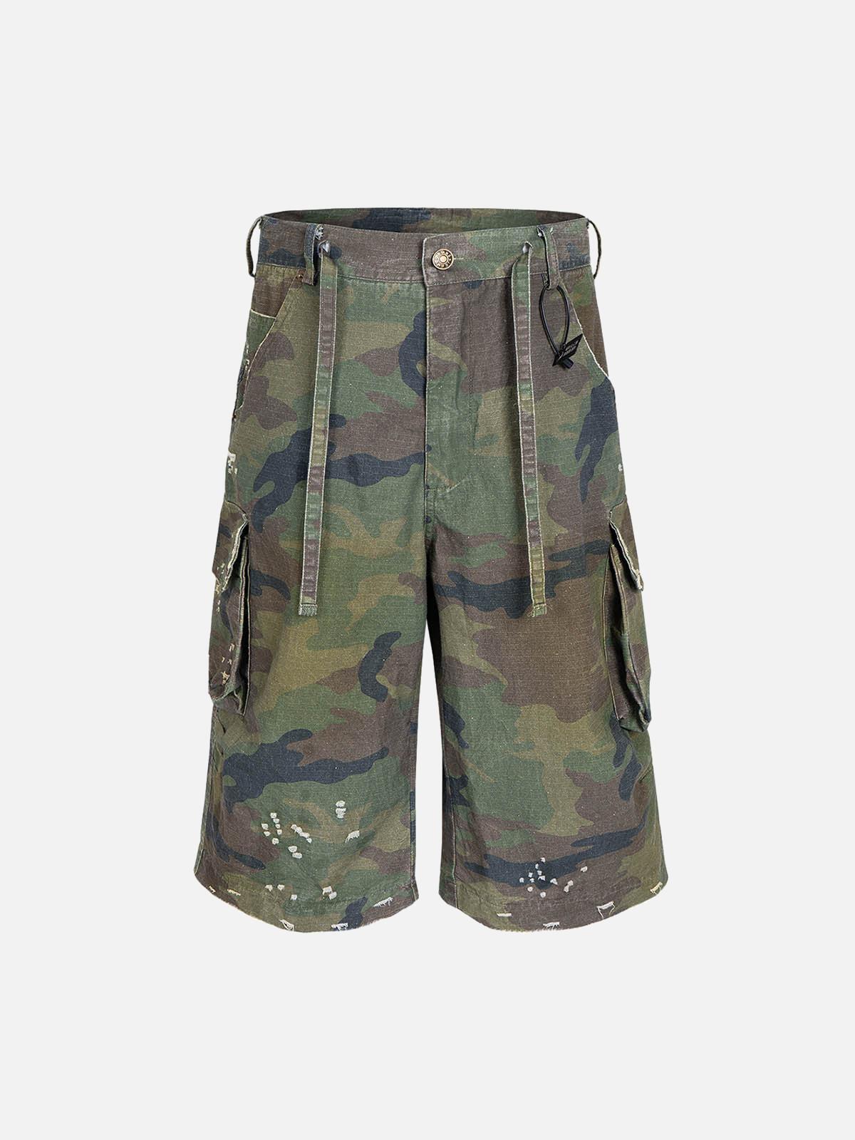 Stylish Concert Outfit: Washed Camouflage Drawstring Cargo Shorts for Your Next Event