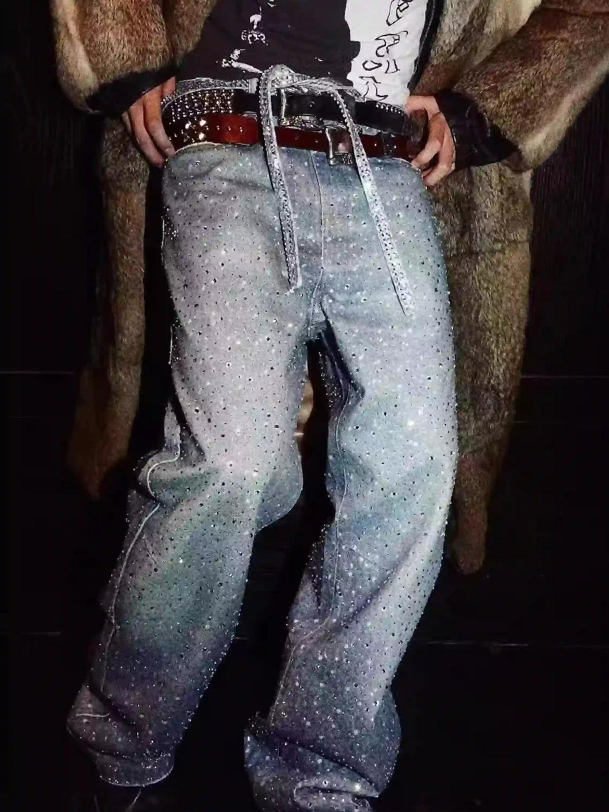 Break the mold with these daring wide-leg jeans that blend vintage vibes and modern flair. The unique speckled blue wash effortlessly captures the essence of y2k fashion, while the relaxed fit ensures all-day comfort and style. Whether you’re rocking them in a casual small or a bold extra-large, these jeans are the perfect canvas for your streetwear fashion experiments. Pair them with a cropped hoodie or your favorite oversized tee for outfit inspo that turns heads. Ready to redefine your look?