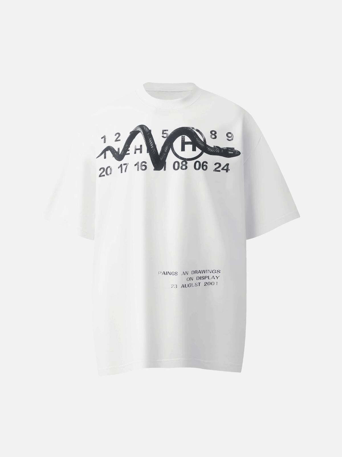 Embrace the urban edge with a tee that speaks volumes through its bold graphics and minimalist design. This oversized white canvas showcases striking black numerals and an abstract wave, creating a visual rhythm that adds depth to your summer style. Available in versatile sizes from S to XL, it’s perfect for layering or standing alone as a statement piece. Pair it with your favorite cargo pants or distressed jeans for an effortlessly cool look. Ready to redefine your summer fashion game?