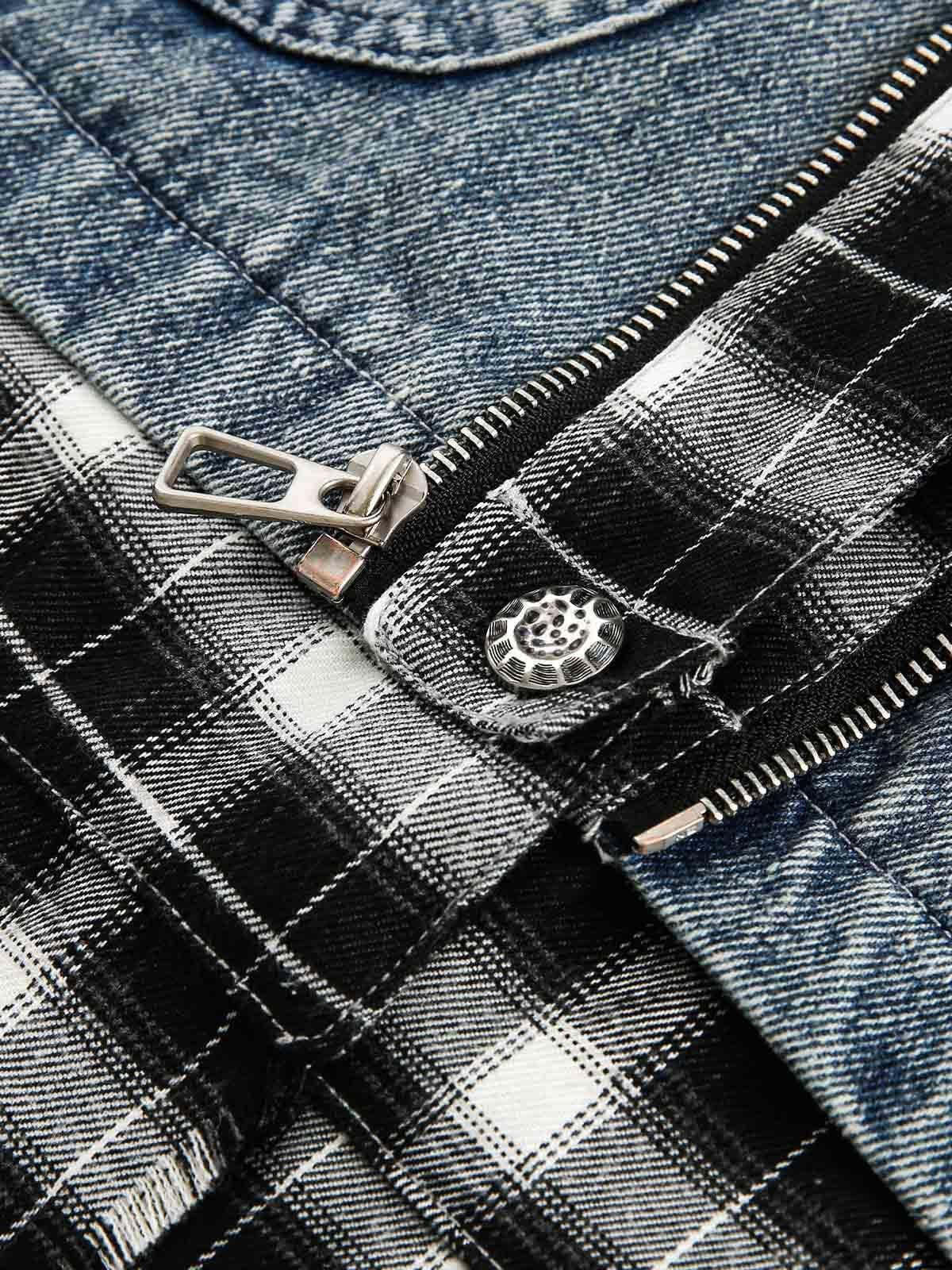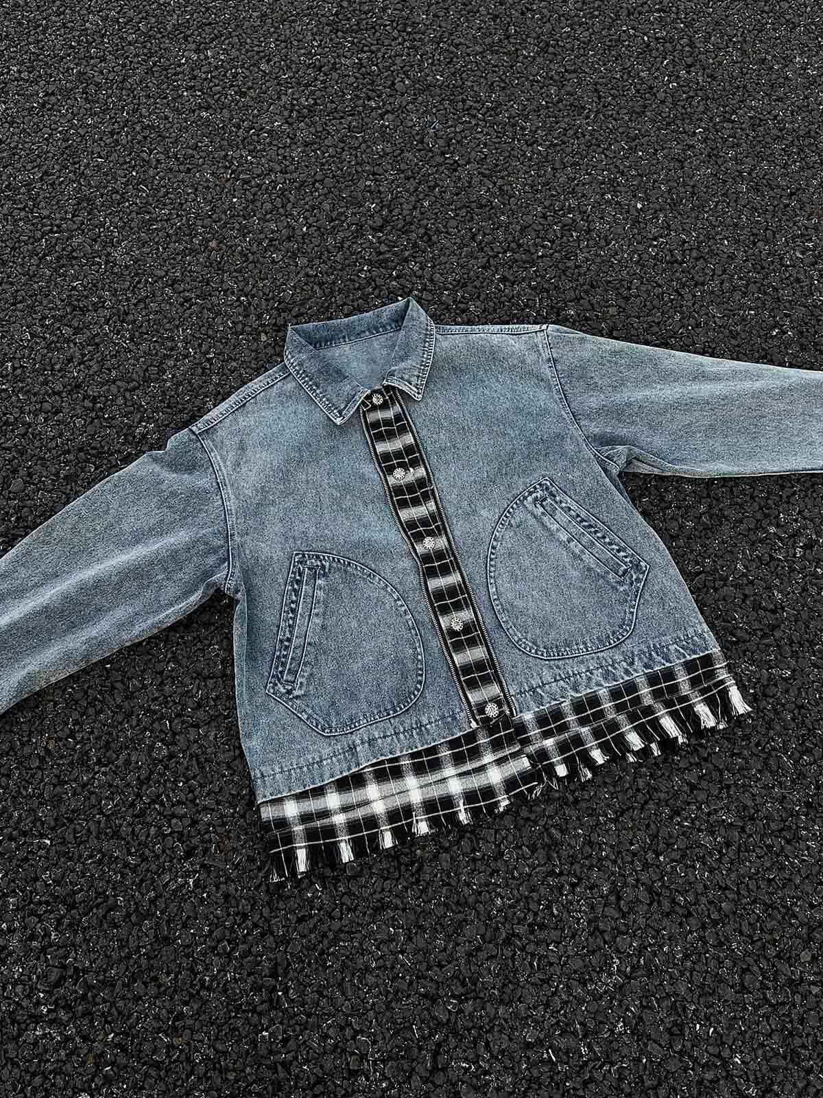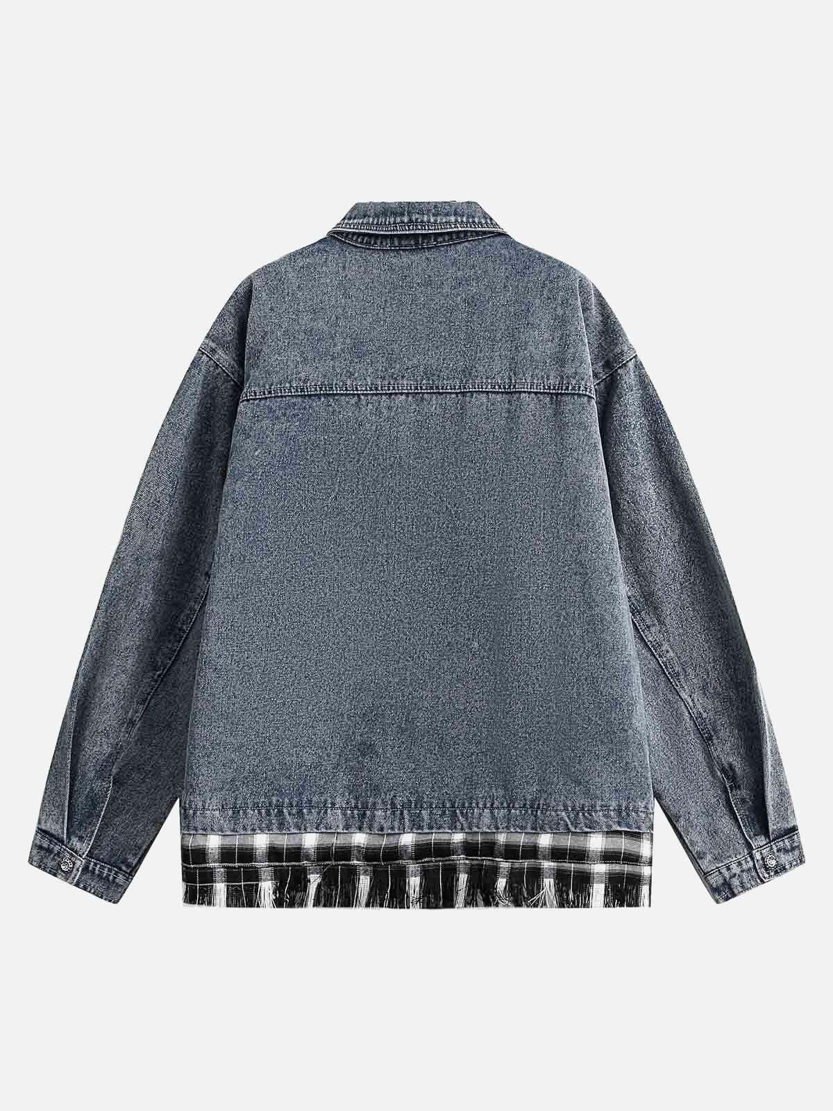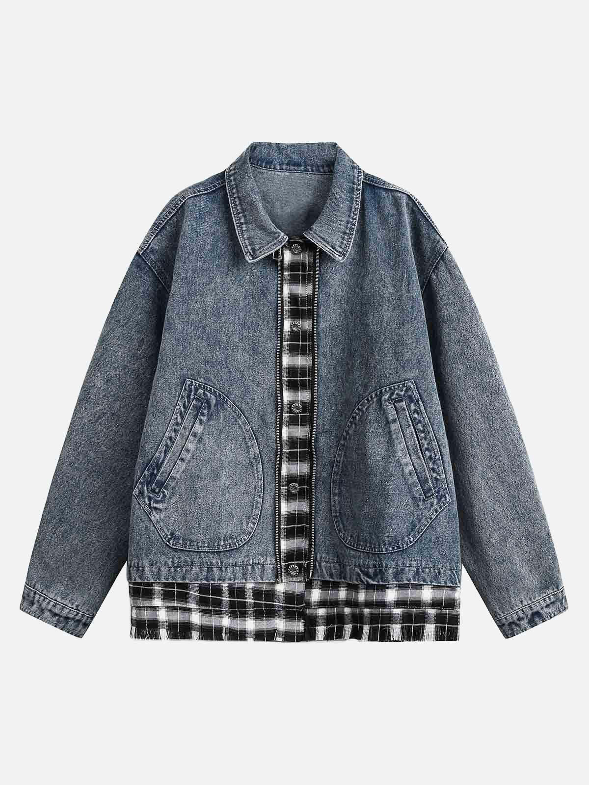 Revolutionize your streetwear fashion with this bold denim jacket, where vintage vibes meet modern flair in a seamless blend of textures. The rich blue denim is juxtaposed with a striking black and white plaid underlay, creating a captivating contrast that screams urban edge. With its relaxed fit, this jacket offers the perfect balance of comfort and style, making it an essential piece for those who dare to push boundaries. Available in sizes from S to XL, it effortlessly adapts to your silhouette, offering endless outfit inspo for any occasion. Pair it with your favorite Y2K-inspired pieces for a look that’s both nostalgic and fresh. Dive into the world of fearless fashion and redefine your style today.