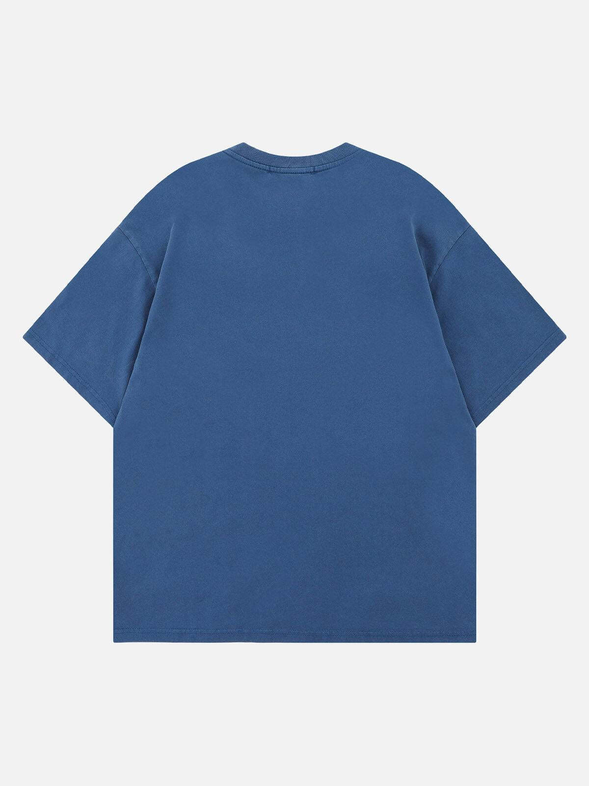 Bring the streets to life with a tee that speaks the language of bold urban vibes, featuring a striking array of abstract graphics that redefine casual cool. The rich blue hue offers a versatile canvas, while pops of red lettering add an edge, making it perfect for those who live loud and proud. Designed for all-day comfort, the relaxed fit ensures you stay effortlessly styled, whether you’re chilling in a small, medium, or taking command in large or extra-large. Pair it with your favorite cargos for a summer fashion look that stands out. Dive into a world where style meets attitude and make this your go-to summer outfit choice.