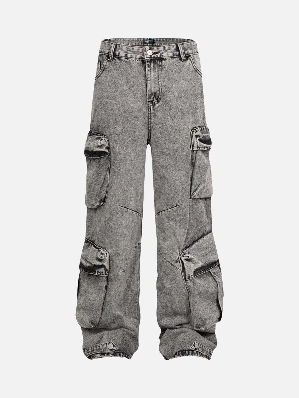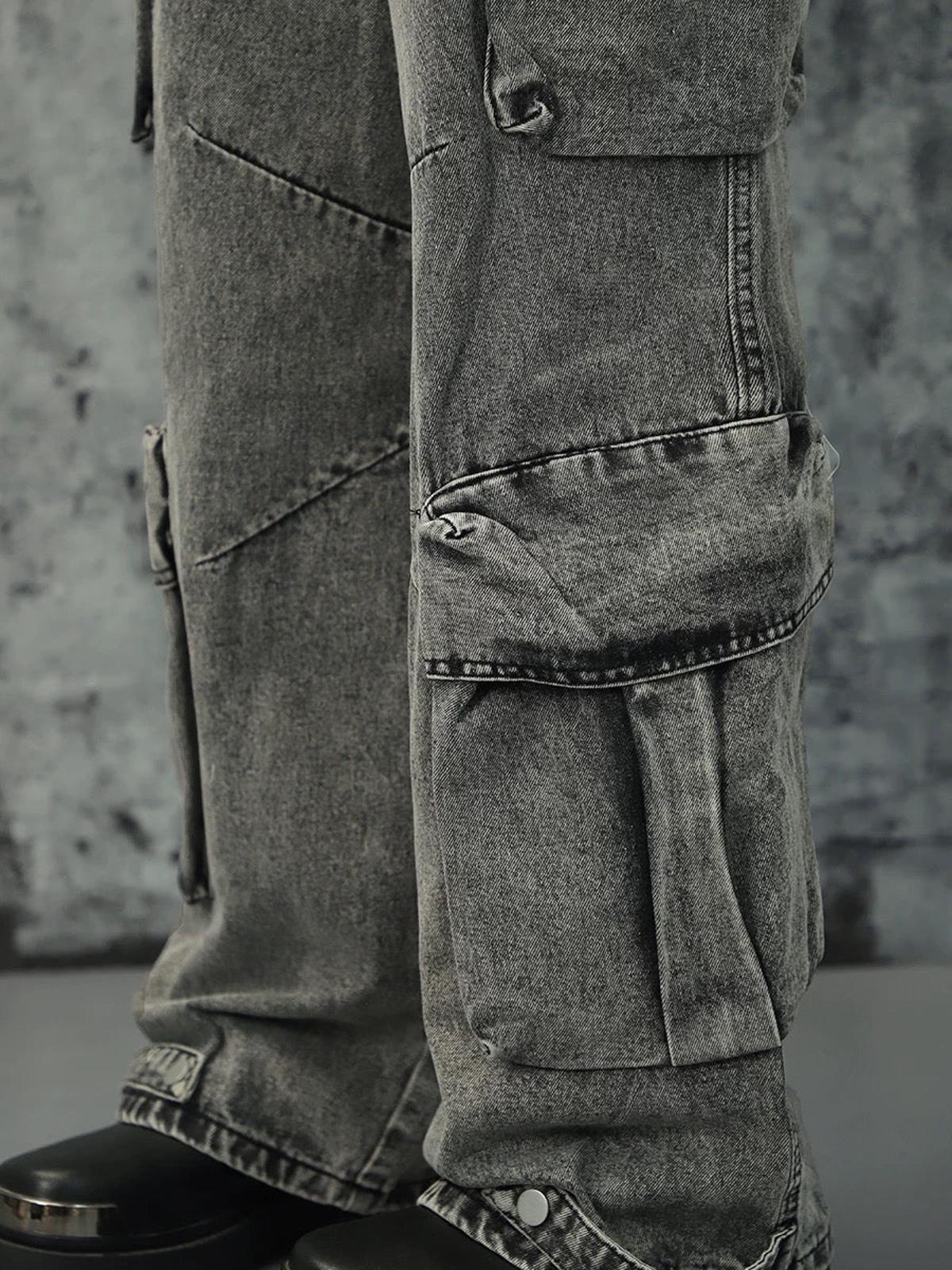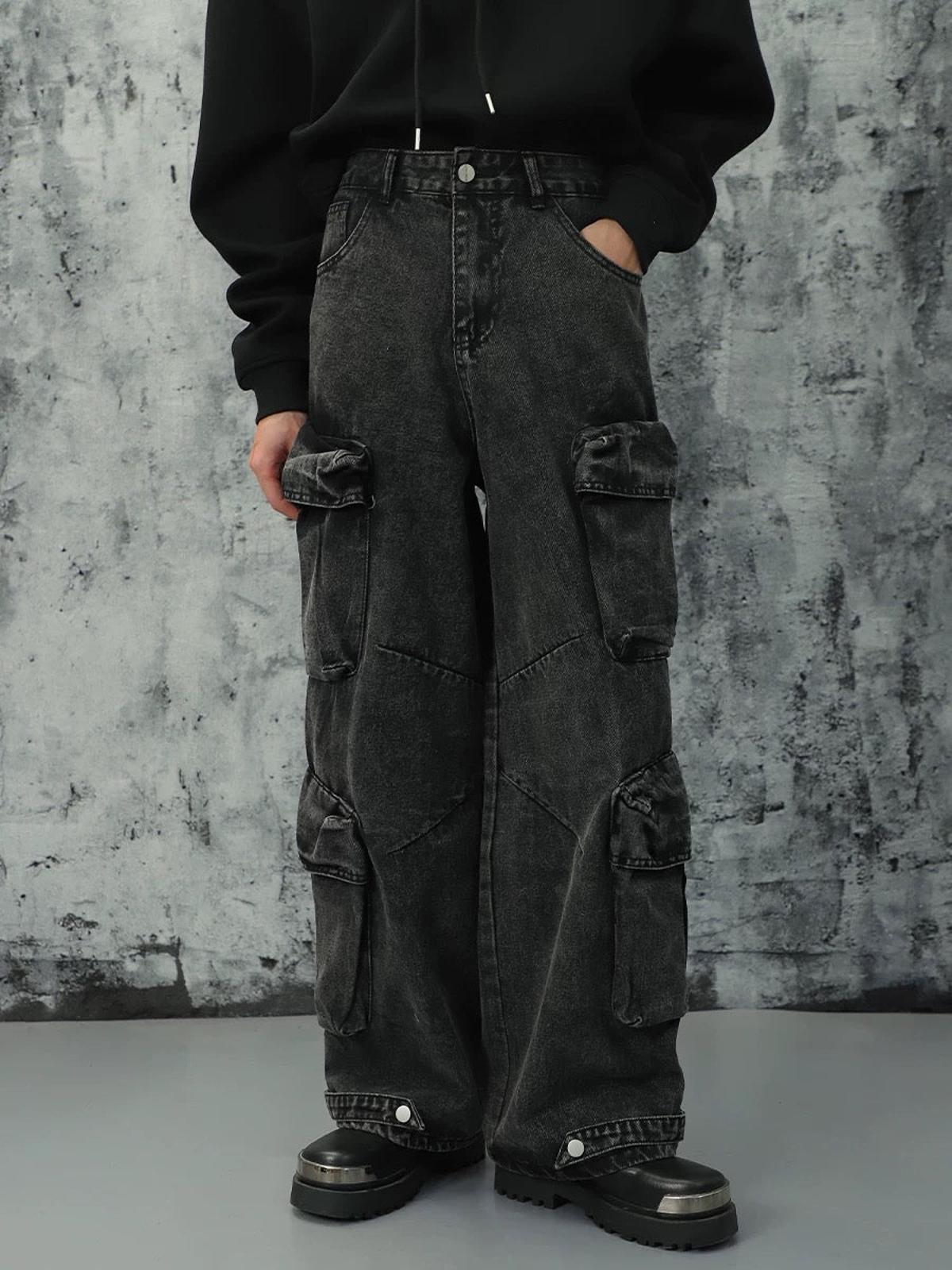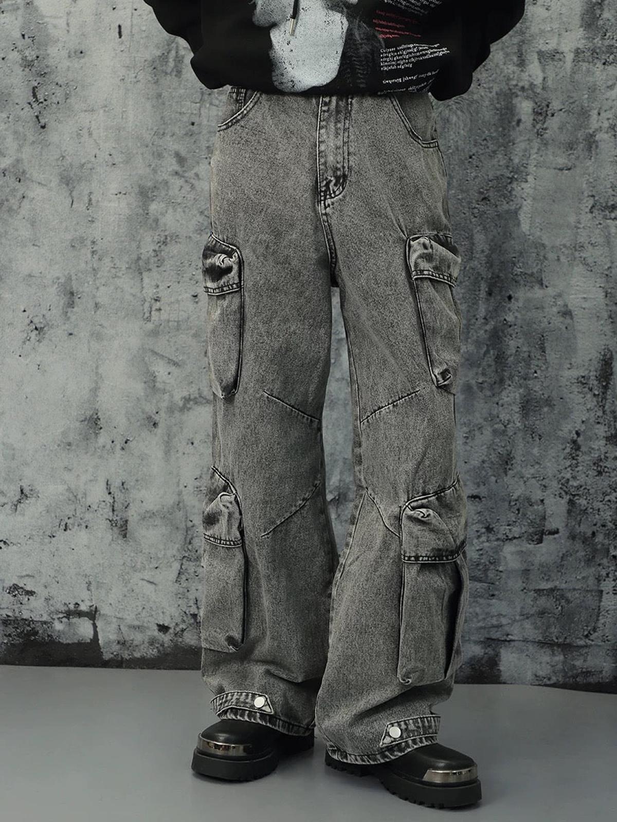 Stylish Concert Outfit: Washed Multi-pocket Cargo Jeans for Your Next Event