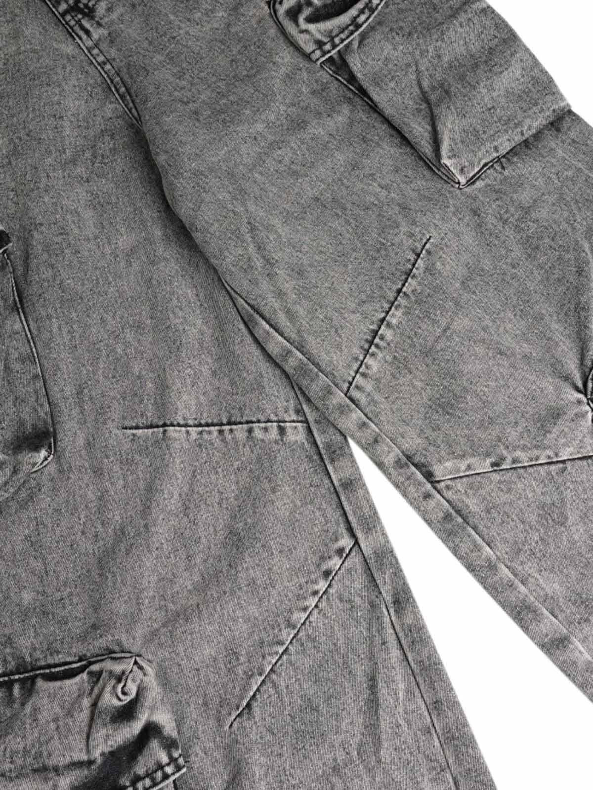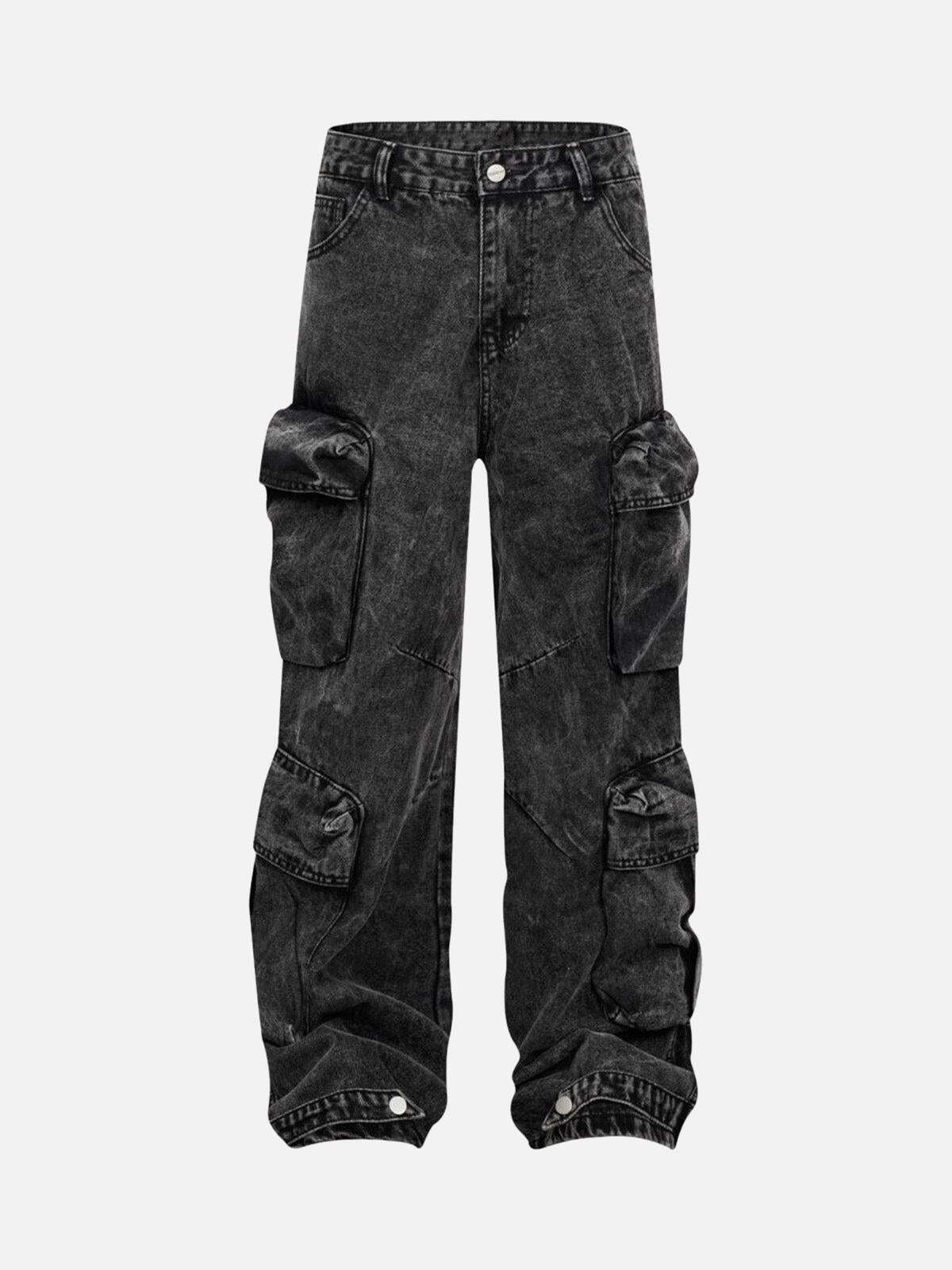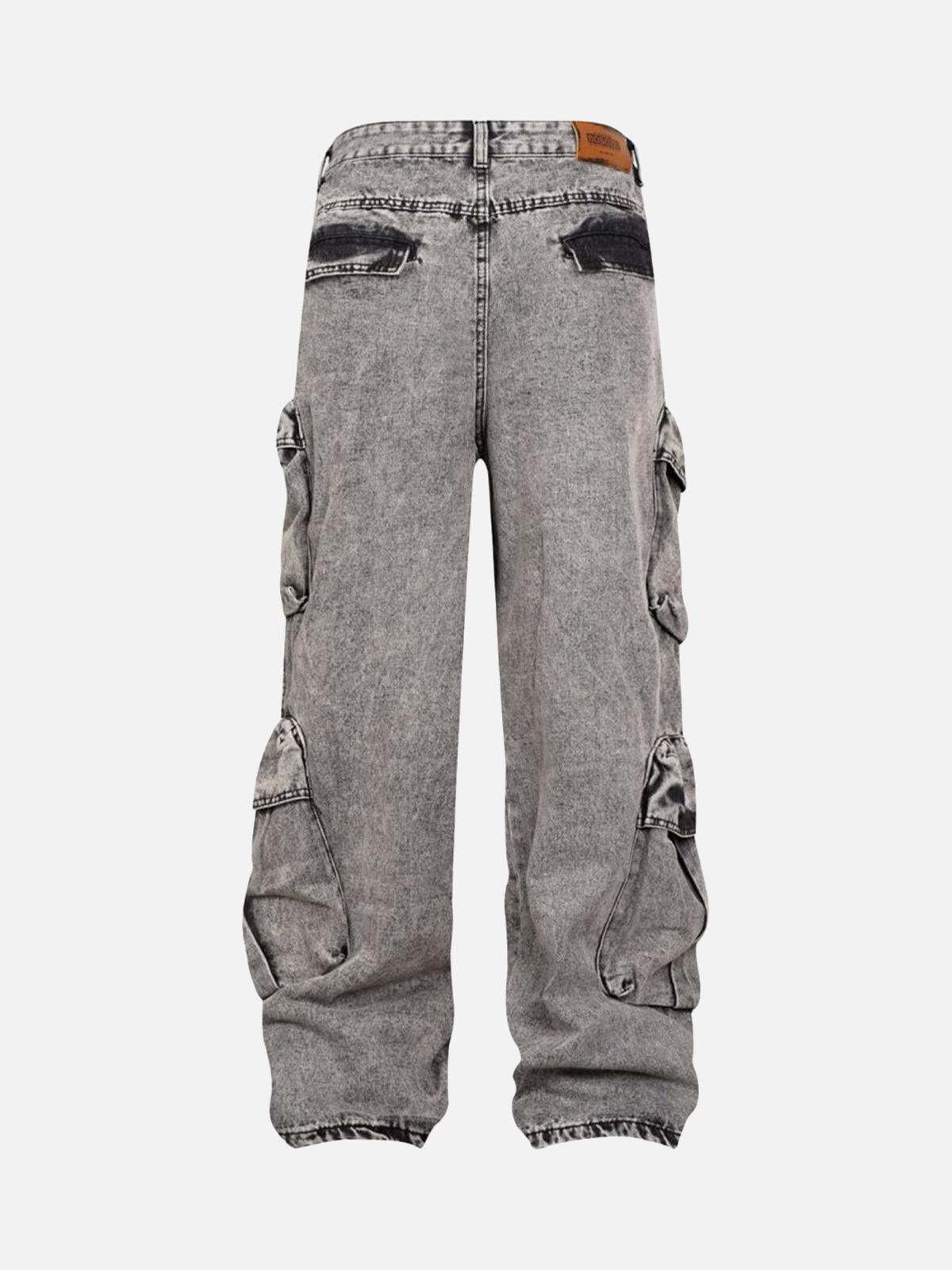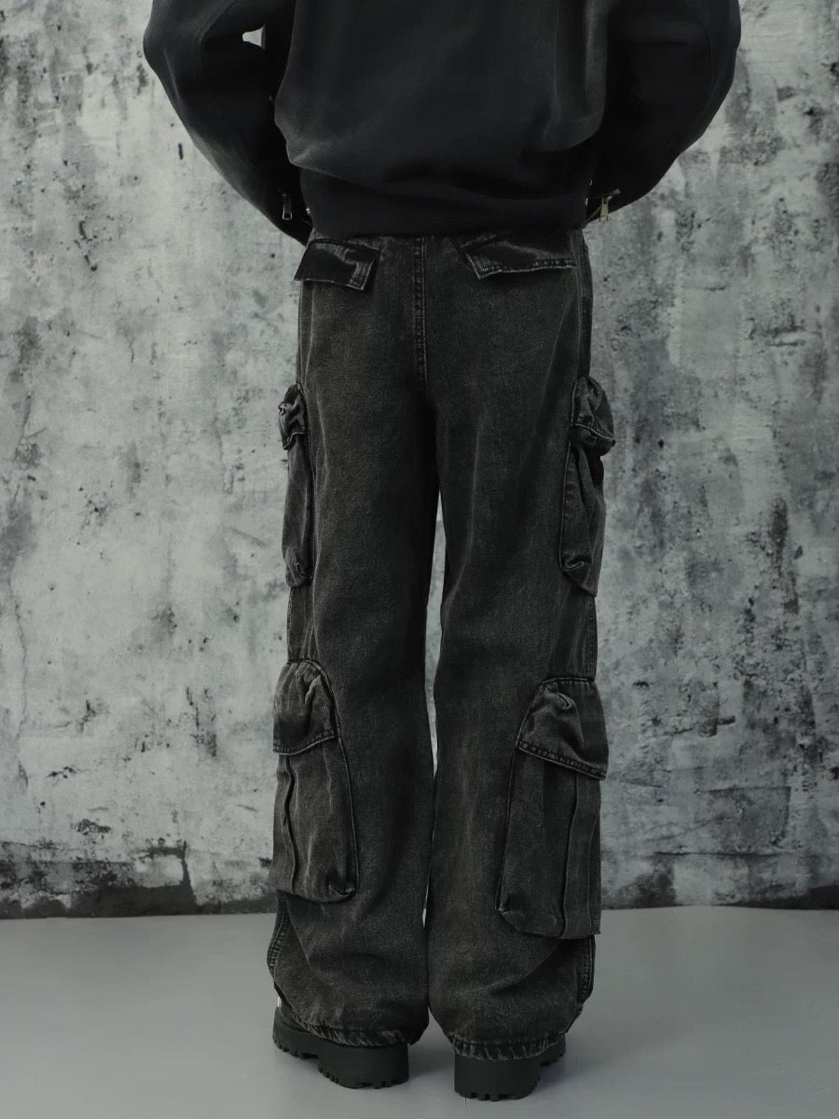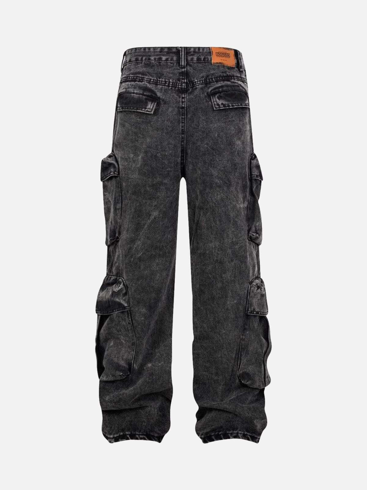 Stylish Concert Outfit: Washed Multi-pocket Cargo Jeans for Your Next Event