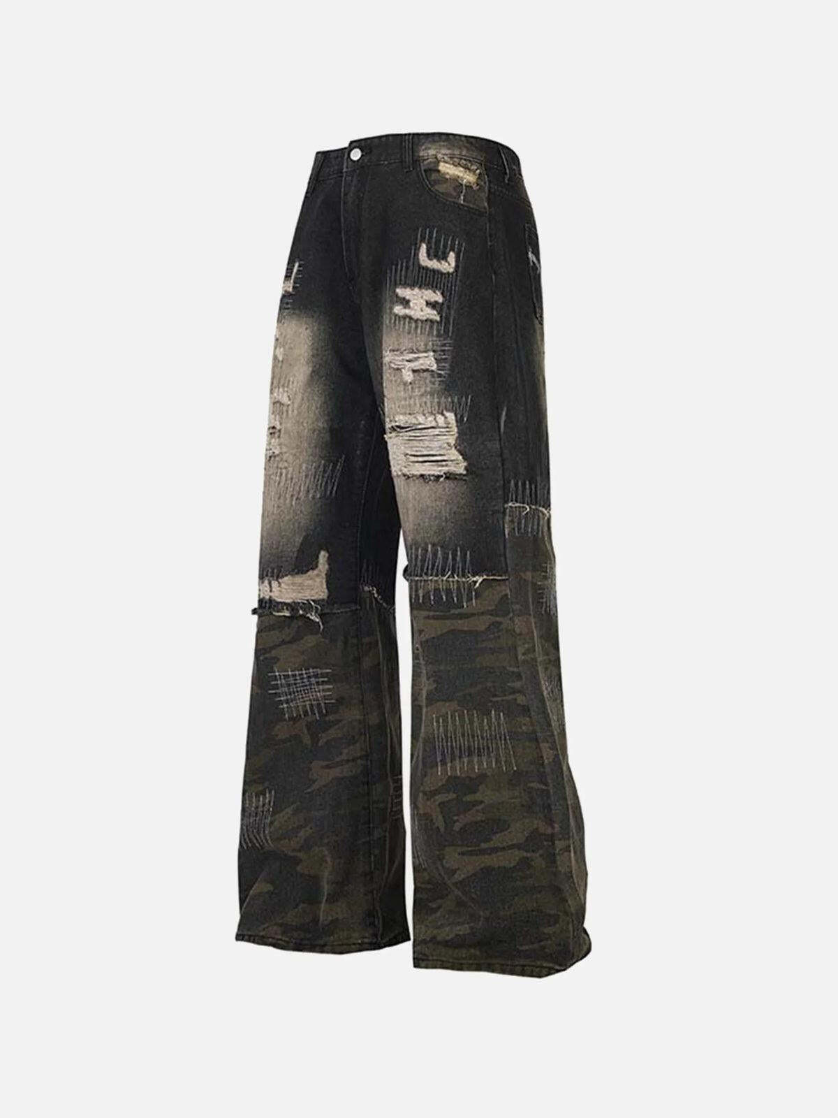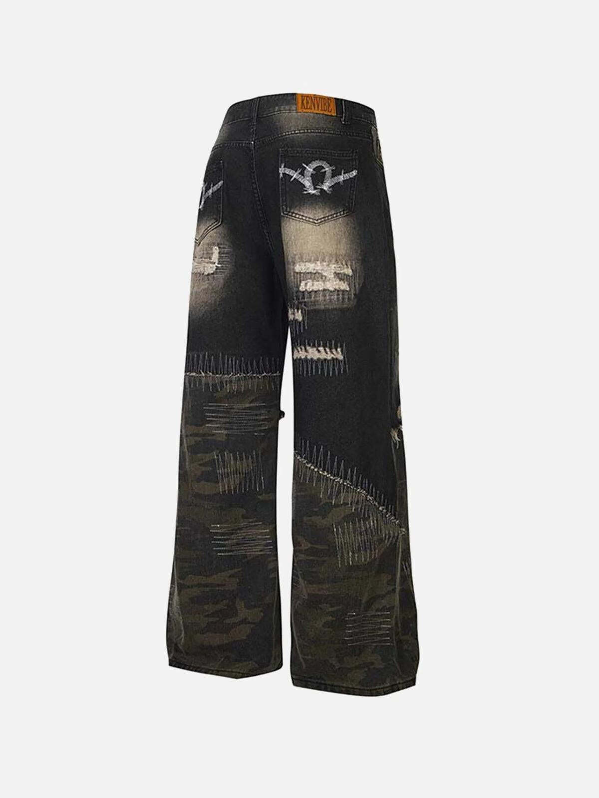 Revolutionize your streetwear game with these bold, black jeans that effortlessly blend distressed details and camo patchwork for a rugged yet stylish edge. The intricate stitch patterns and faded textures tell a story of urban grit, while the versatile fit offers comfort and flair in sizes ranging from S to XXL. Pair them with your favorite oversized tee or a sleek bomber jacket for endless outfit ideas that scream confidence. Walk the streets with attitude, and let these jeans be your go-to for authentic, unapologetic style.